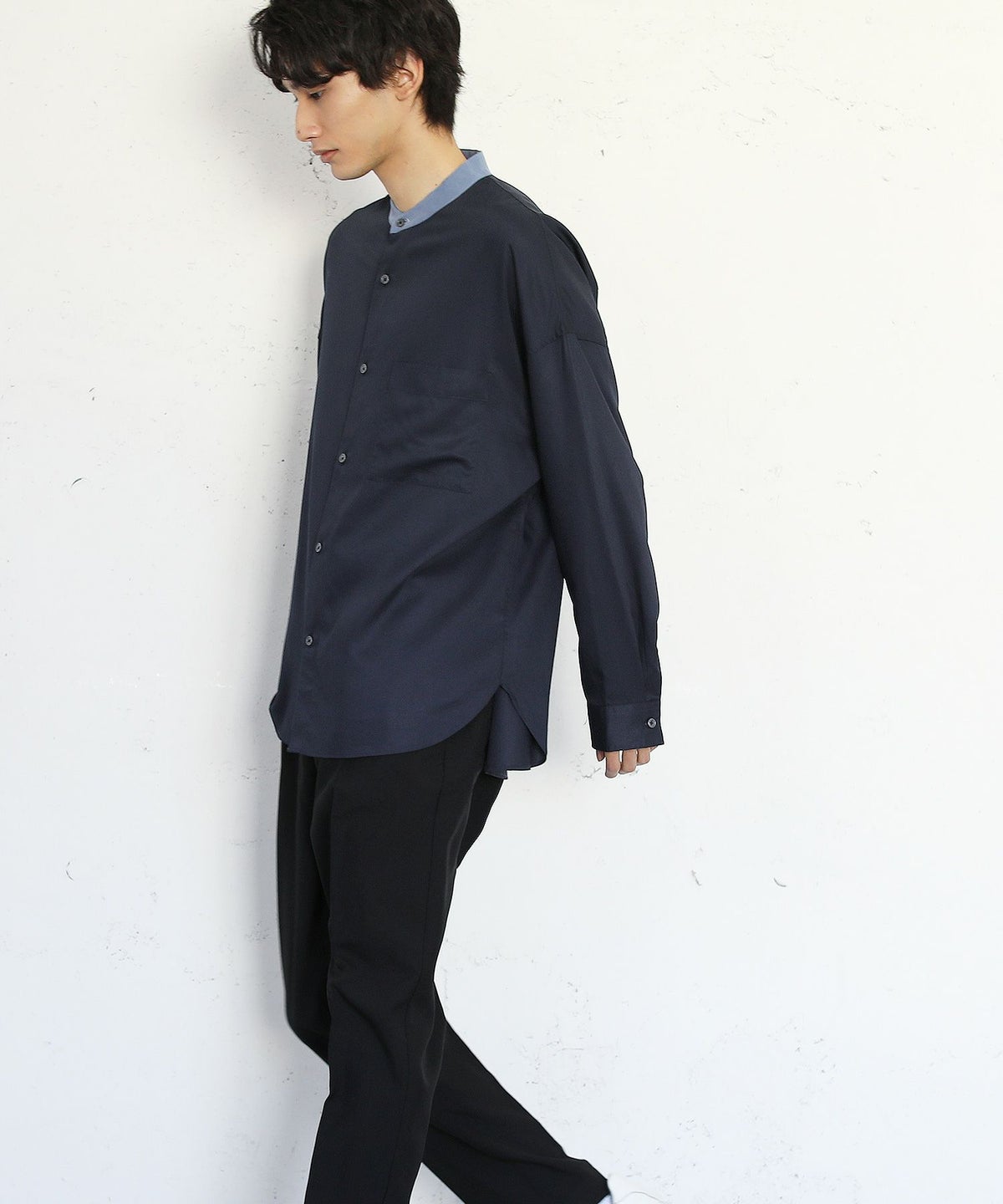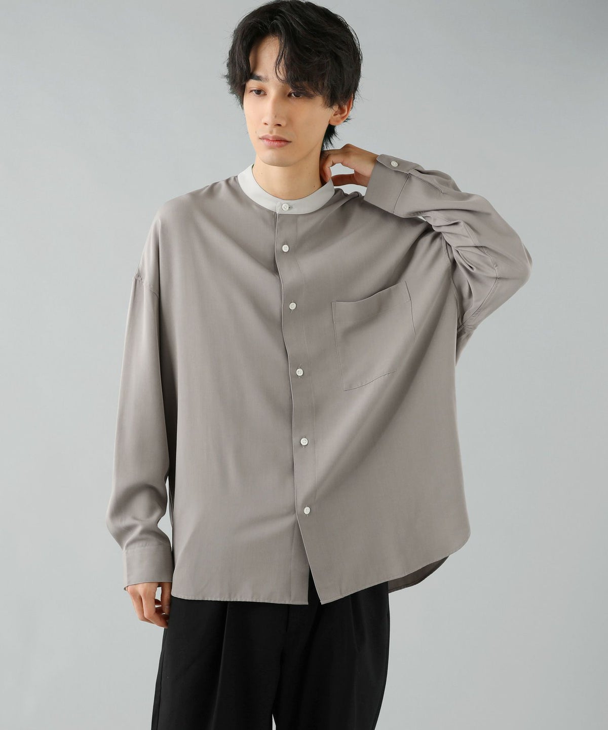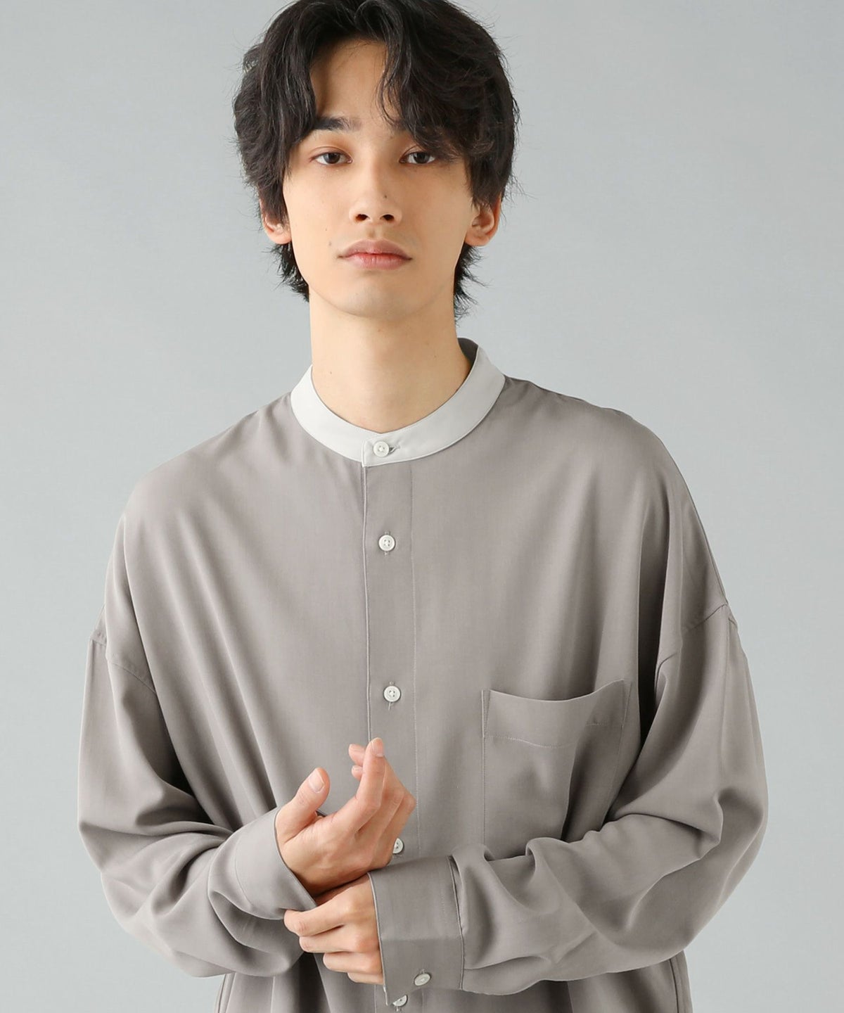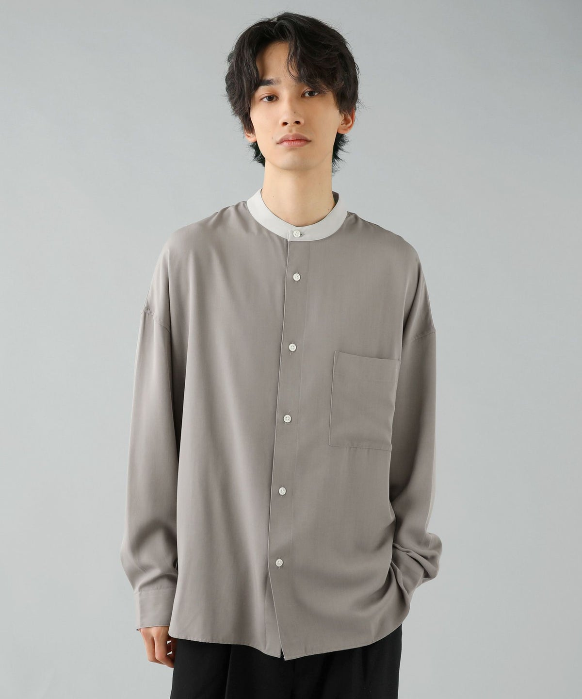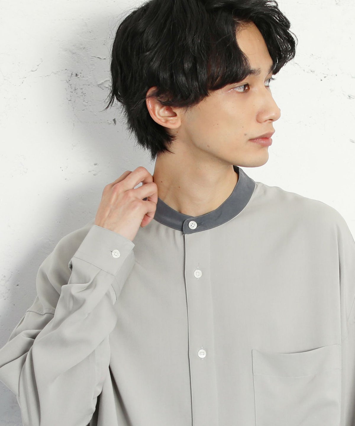 TRツイルクレリックバンドカラードロップショルダーシャツ
