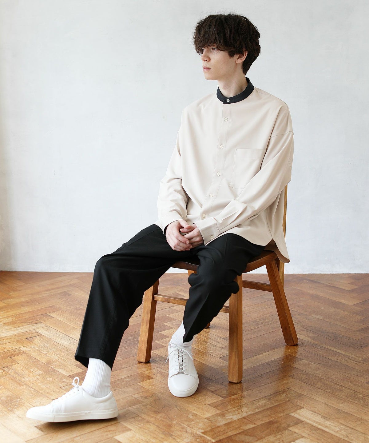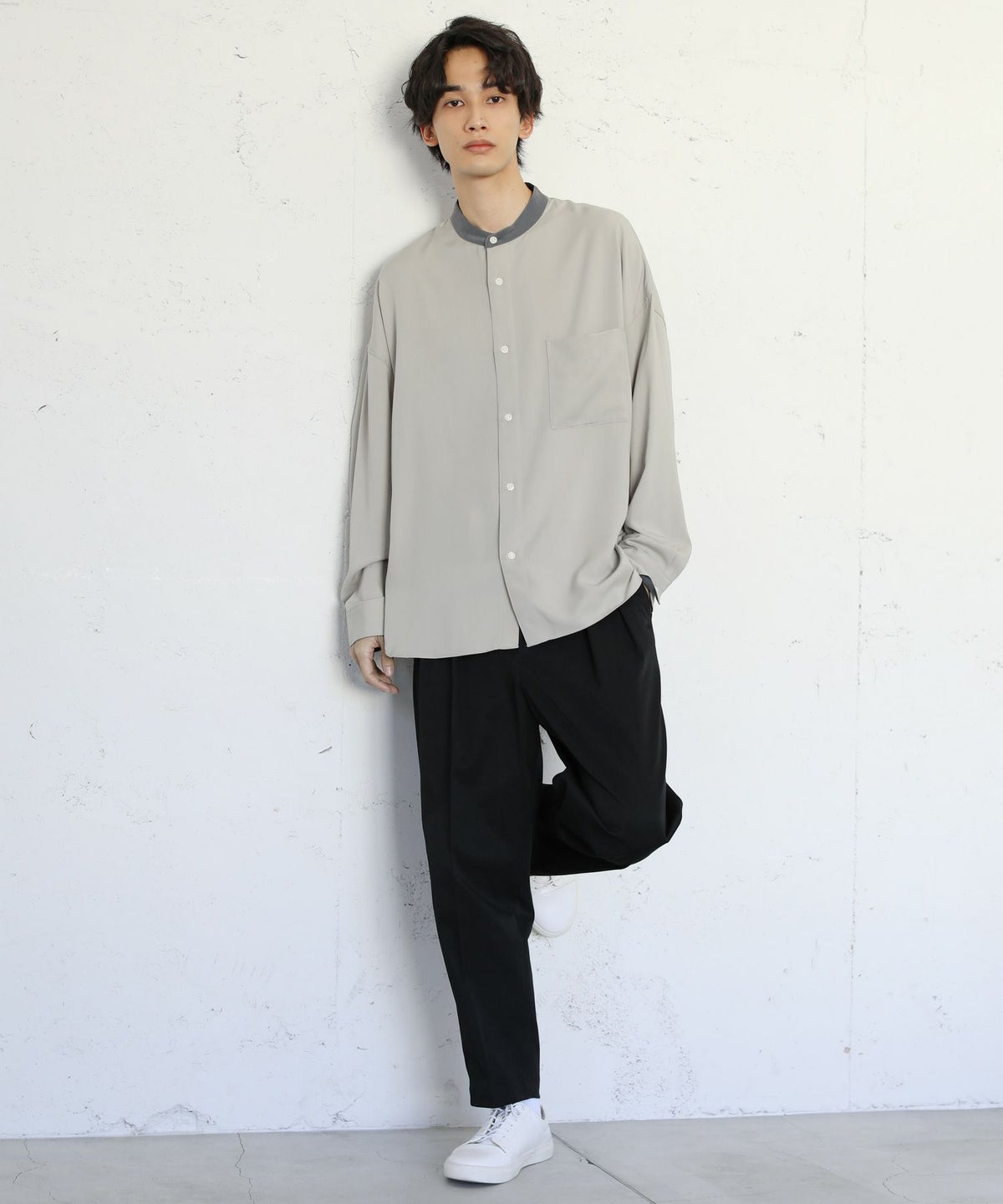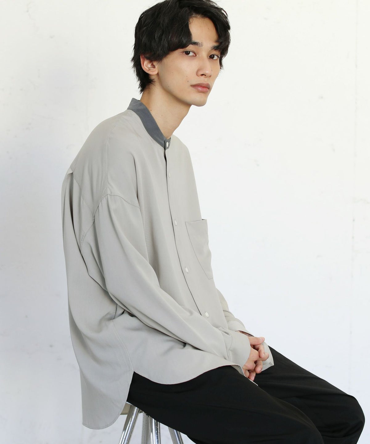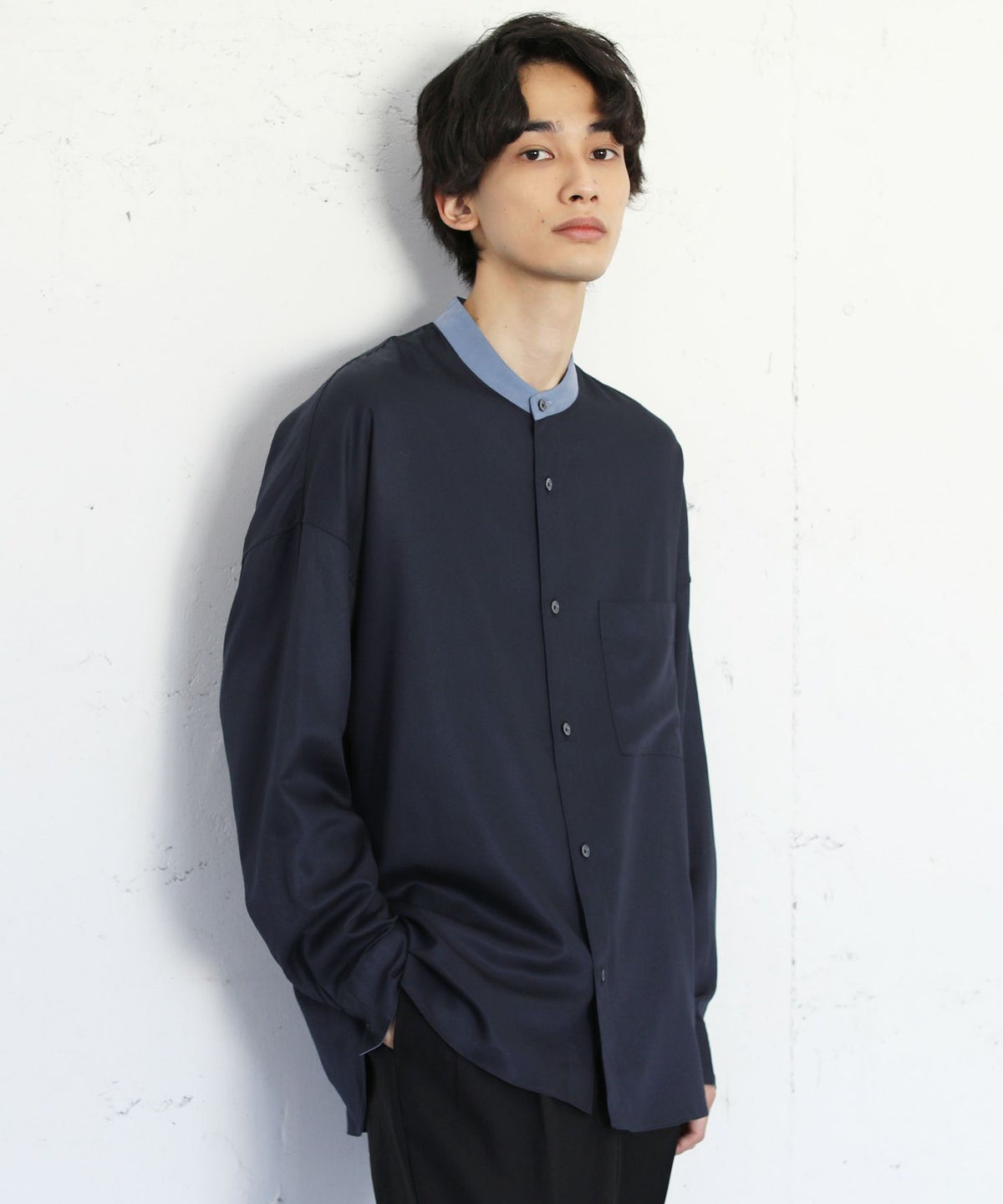 TRツイルクレリックバンドカラードロップショルダーシャツ