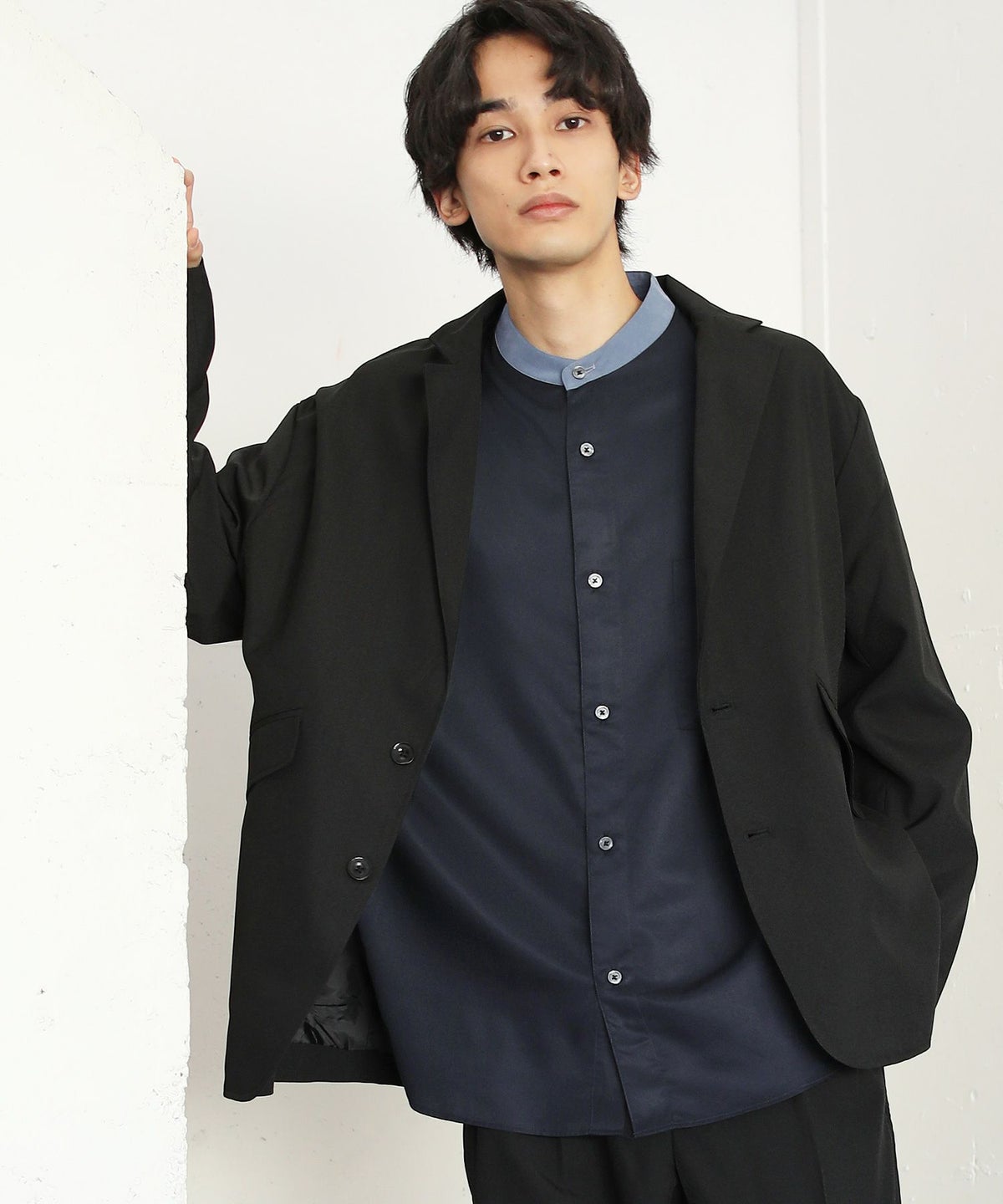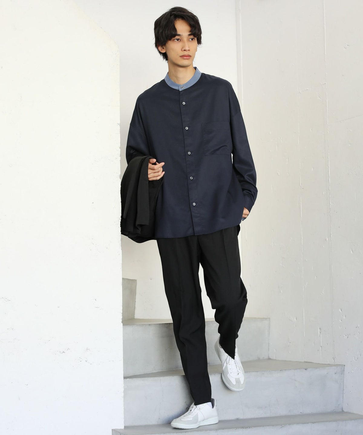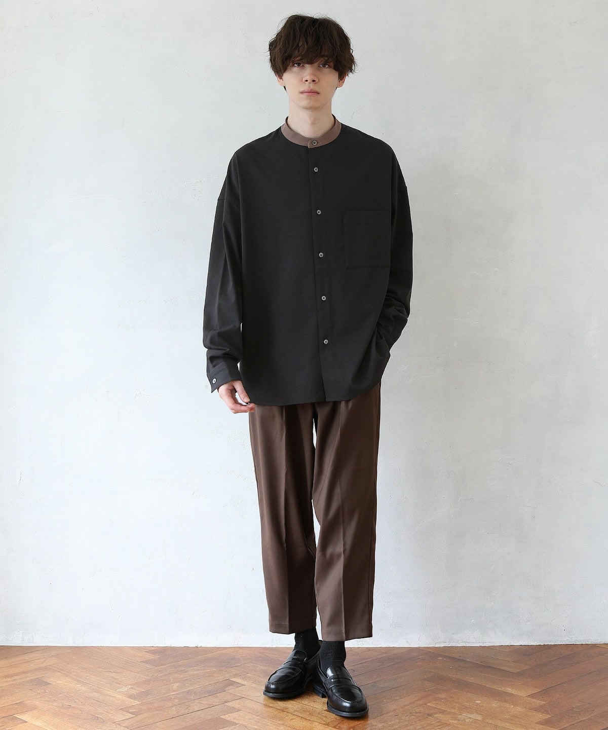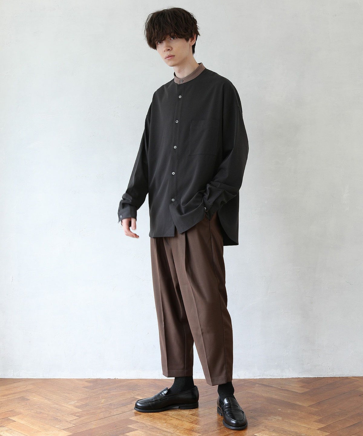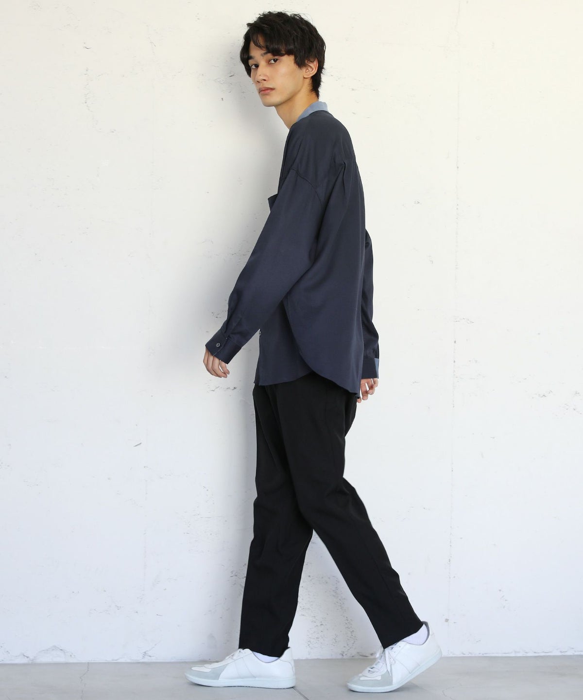 TRツイルクレリックバンドカラードロップショルダーシャツ
