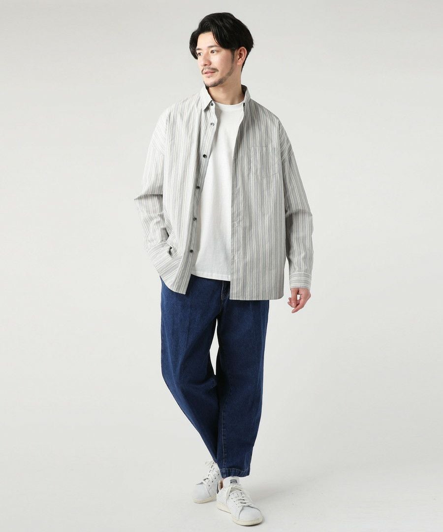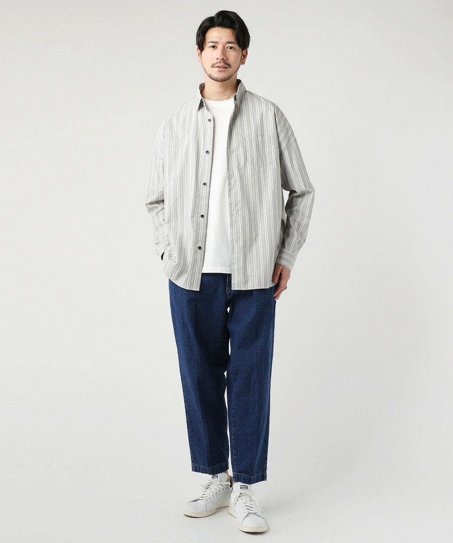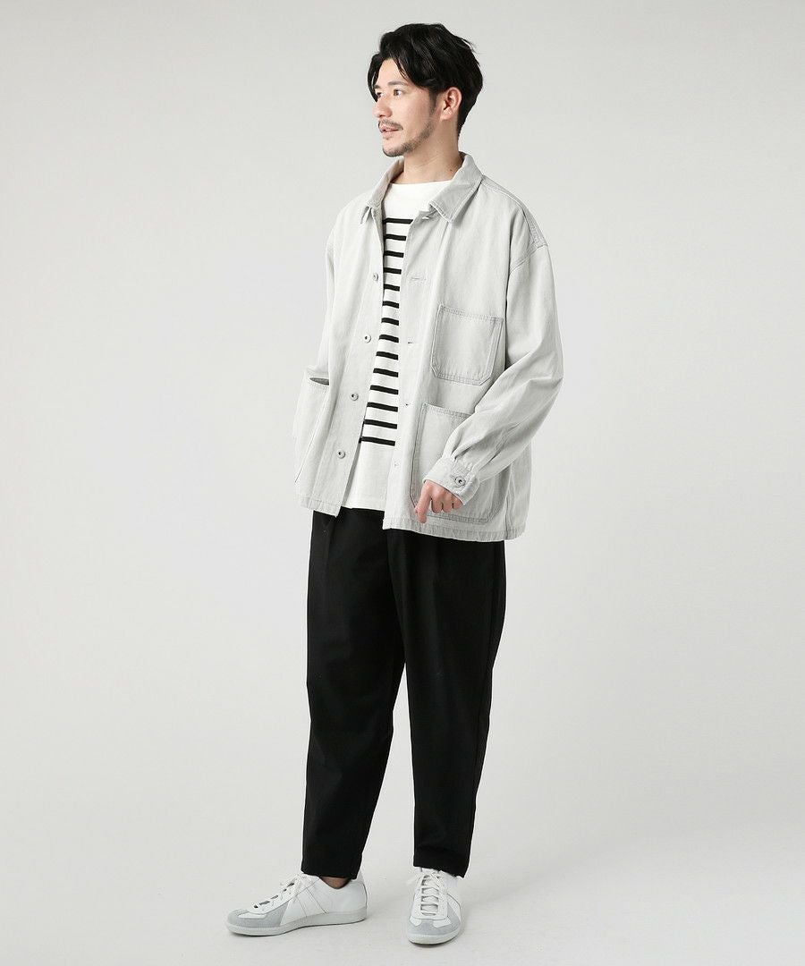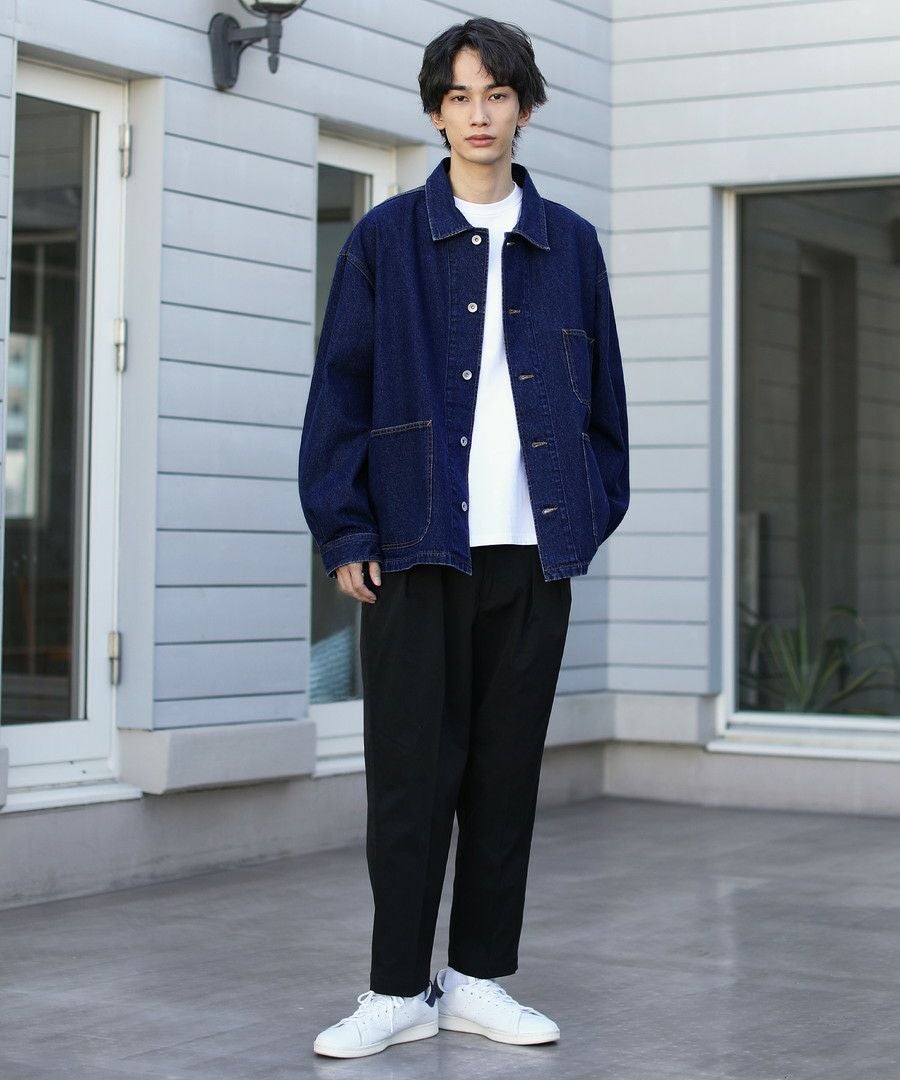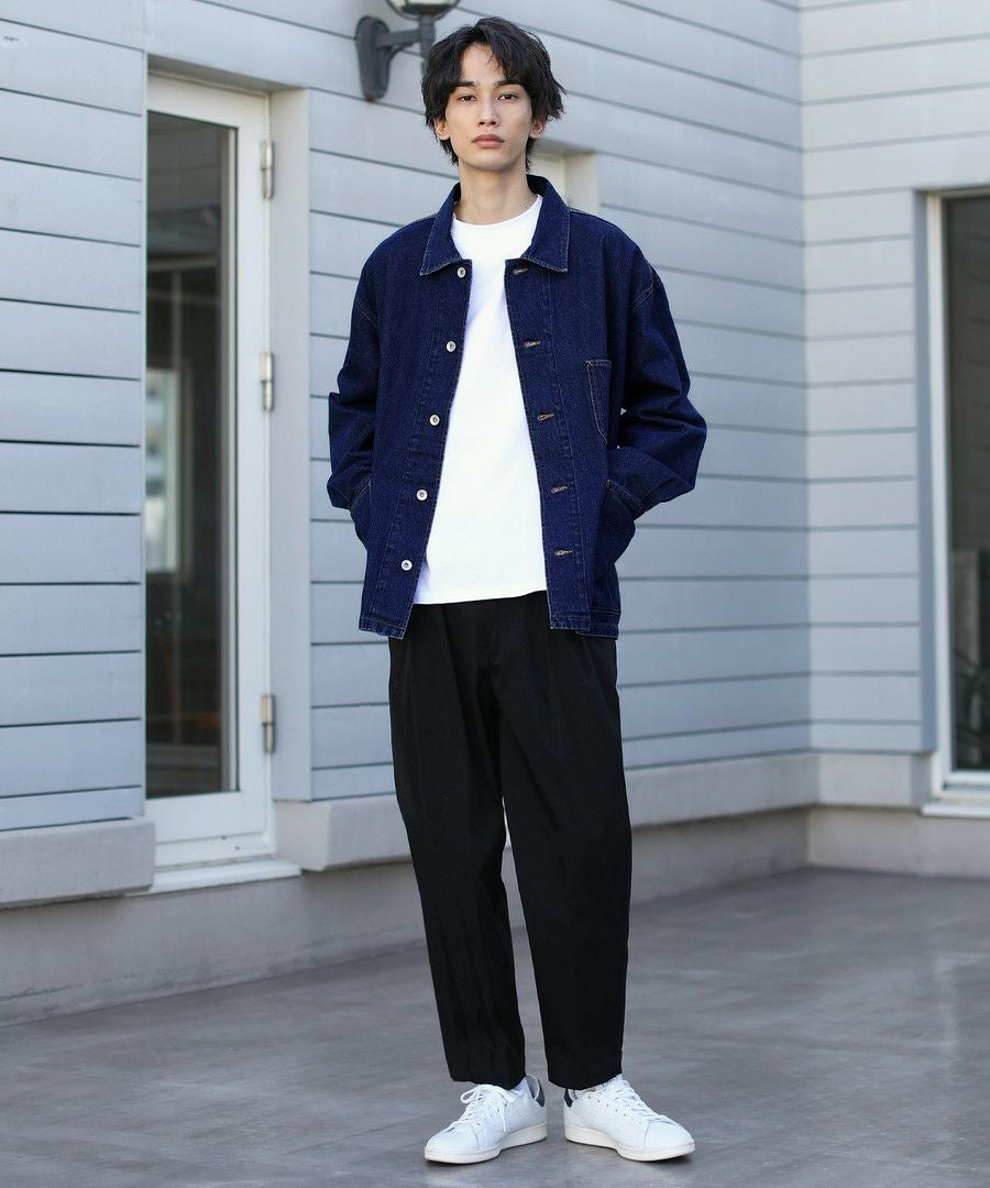 10oz デニムワイドテーパードアンクルカットスラックス