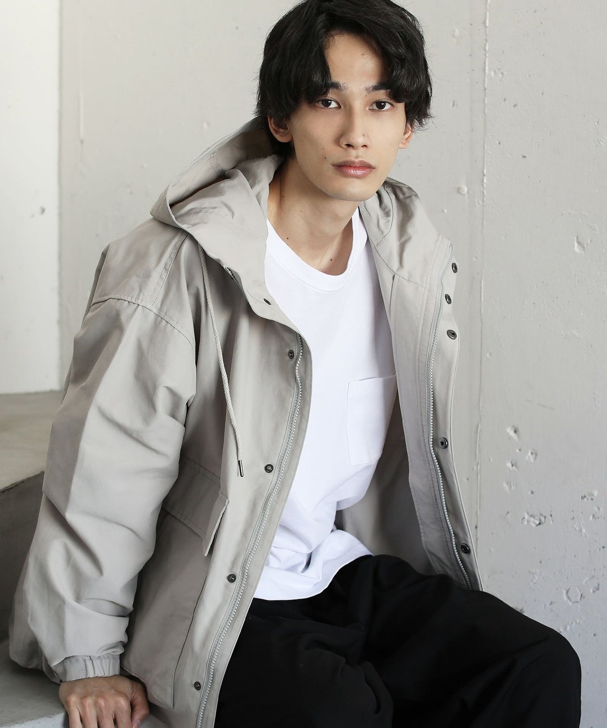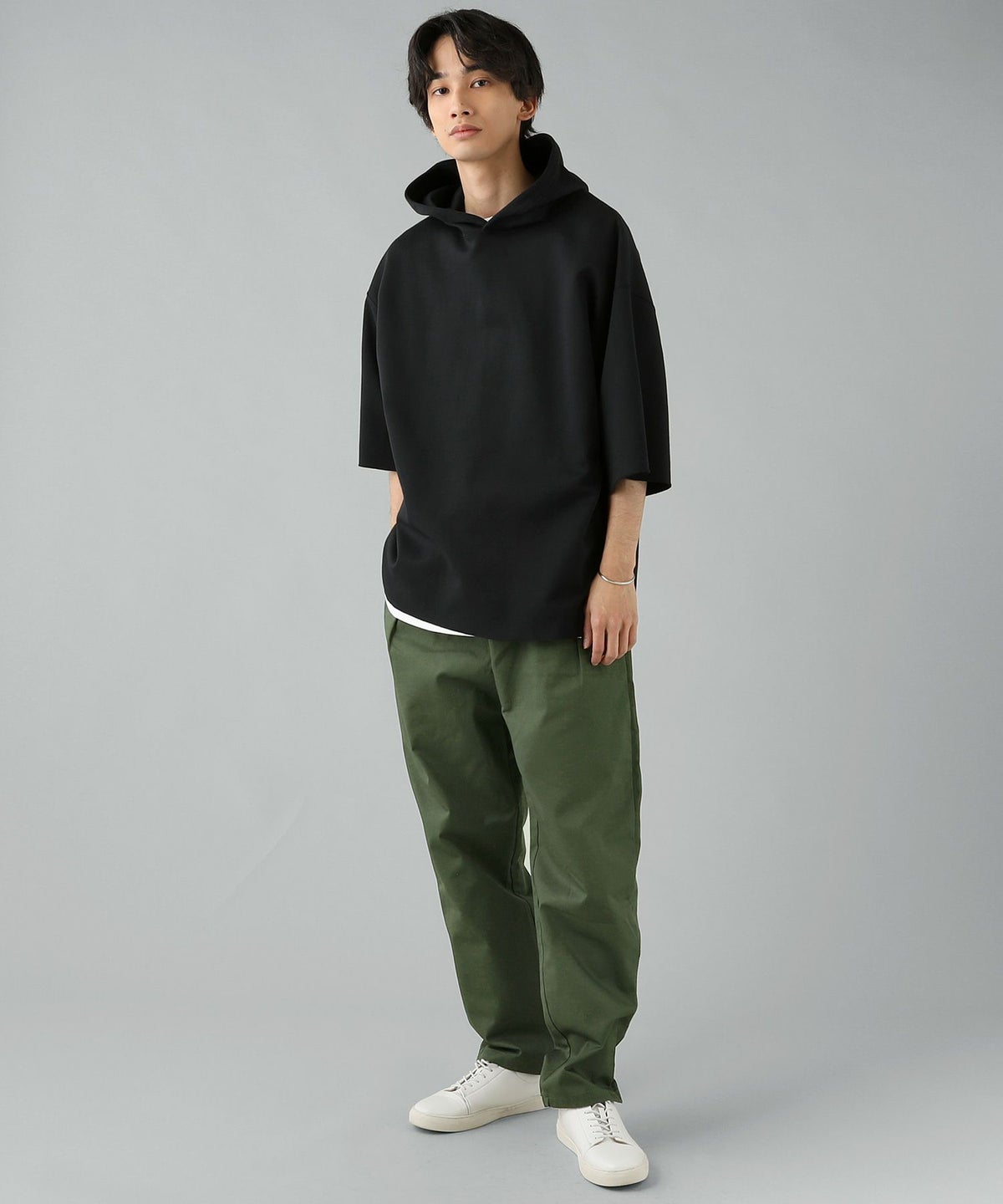 ダブルエアニットハーフスリーブプルパーカー