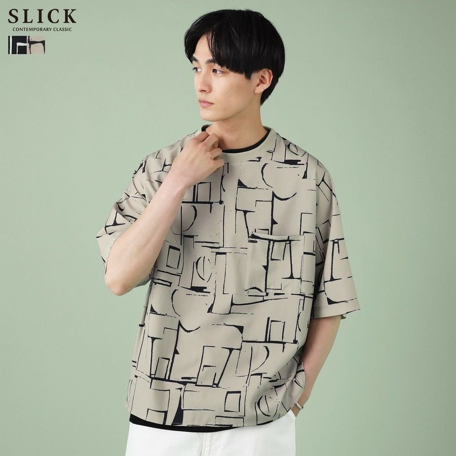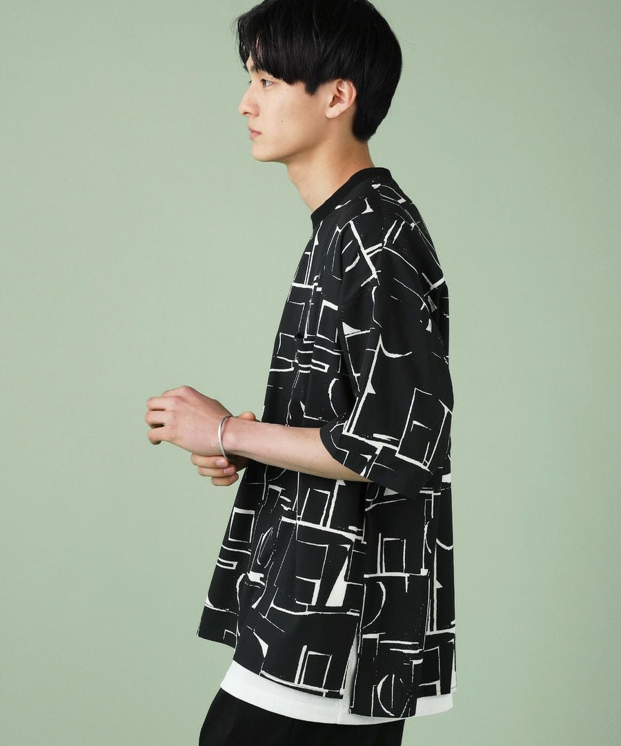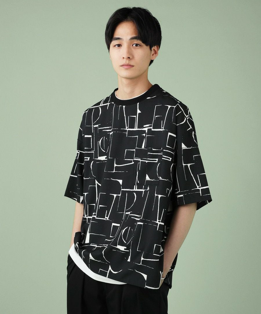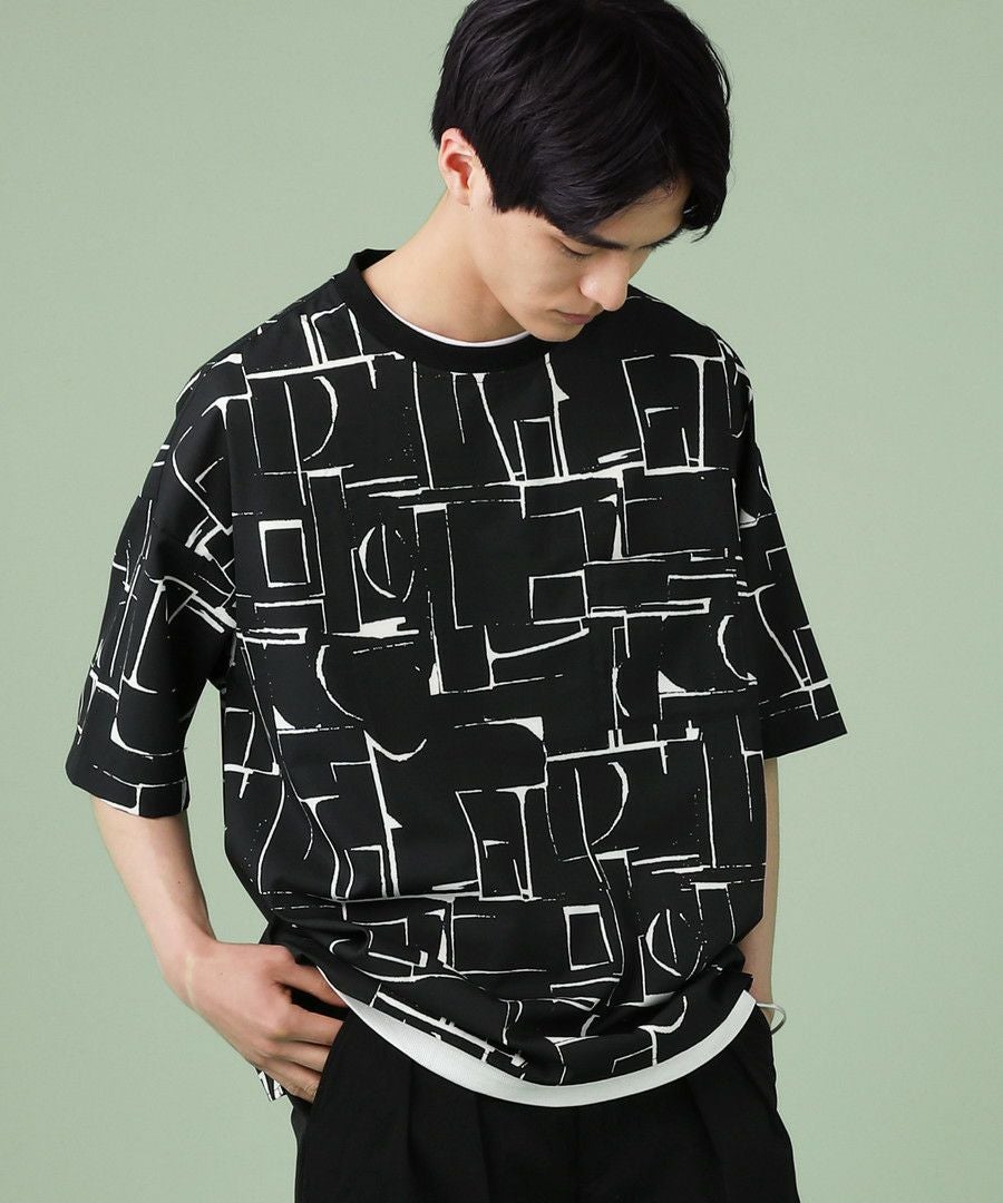 アブストラクト柄プリント半袖Tシャツ