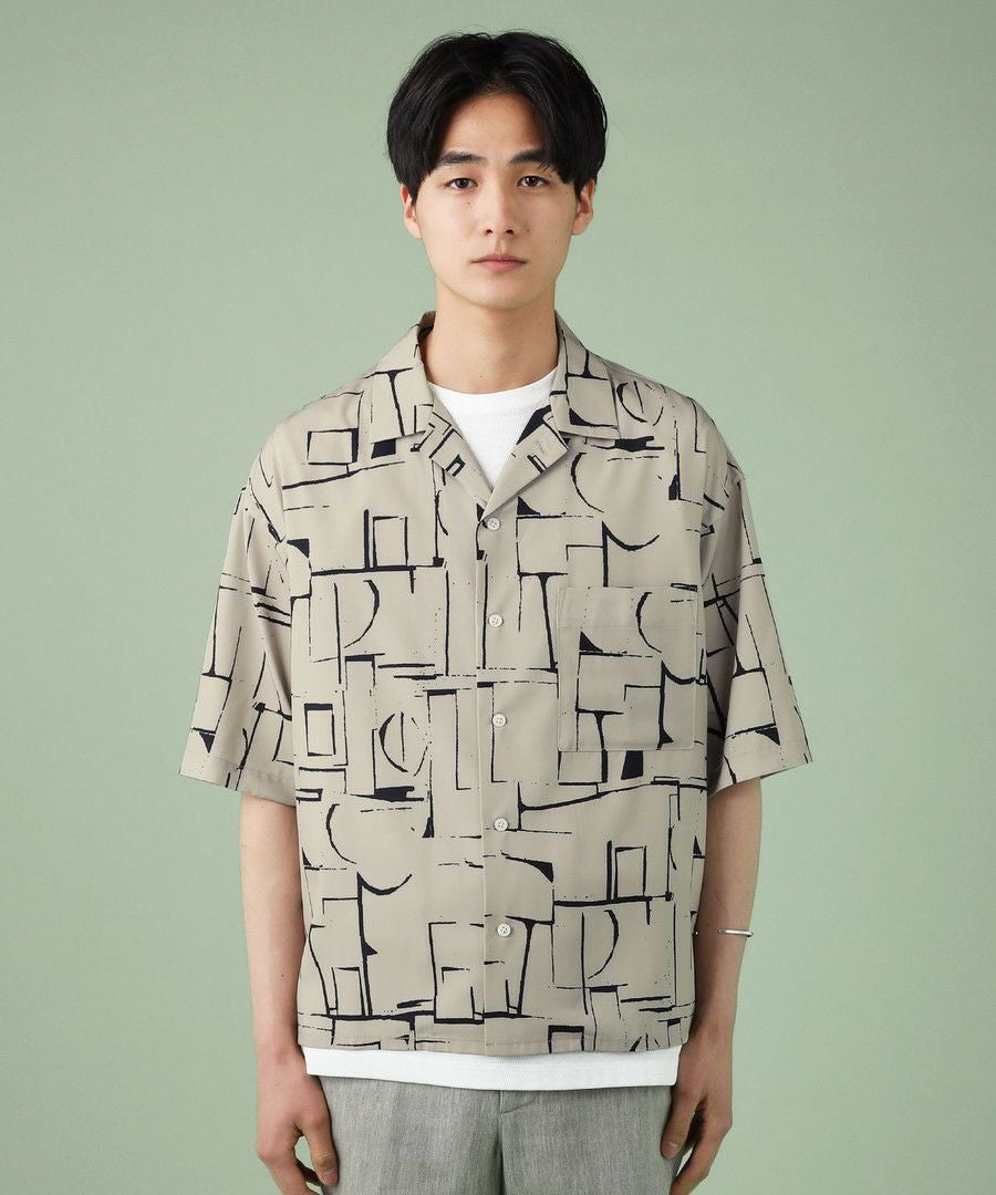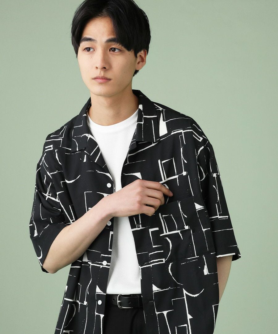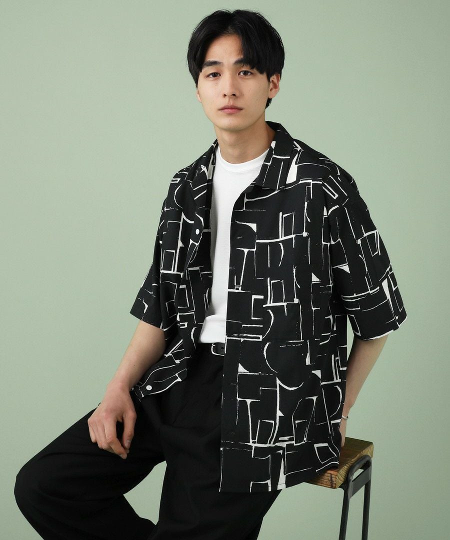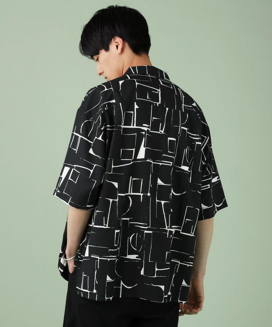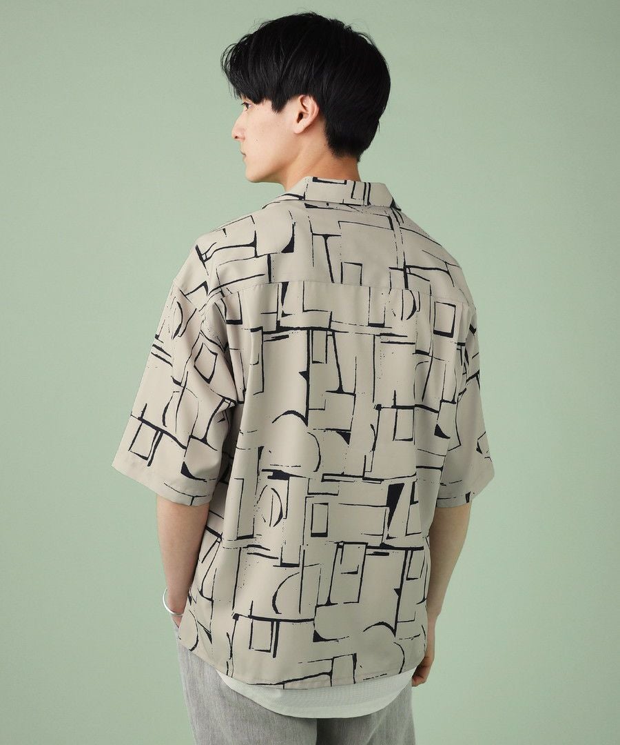 アブストラクト柄オープンカラーシャツ