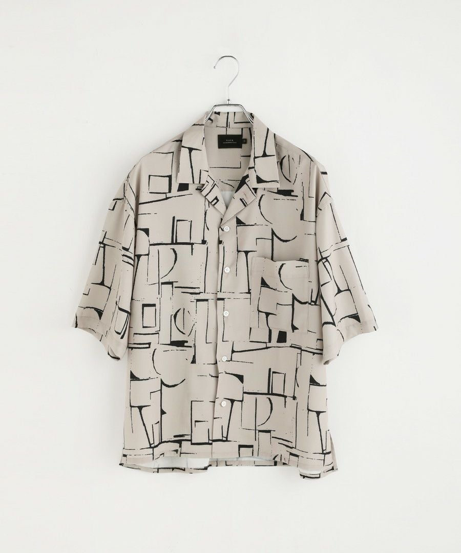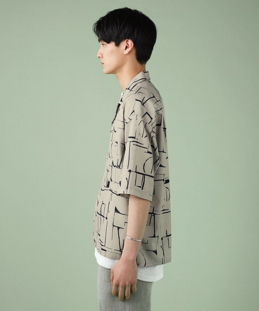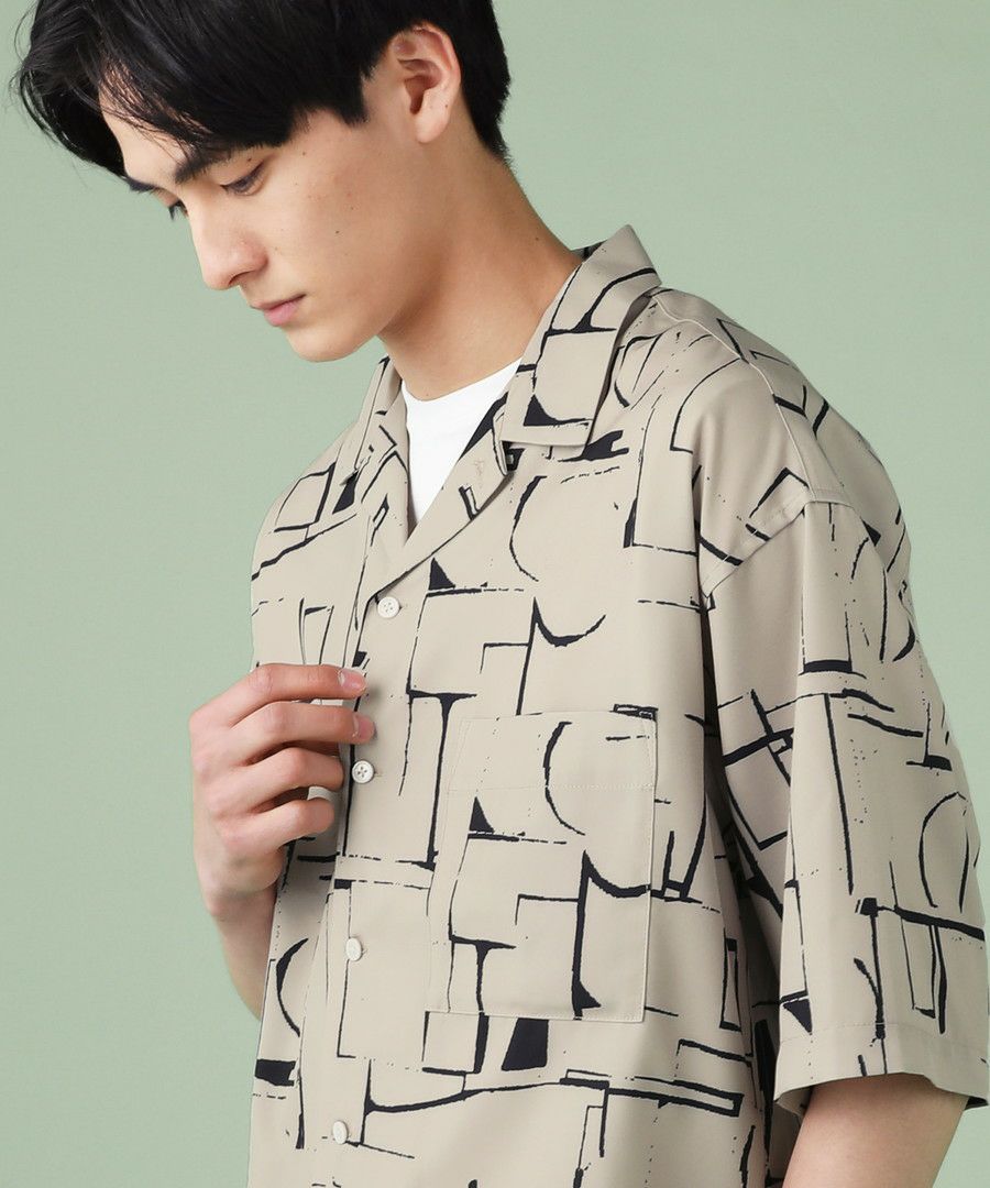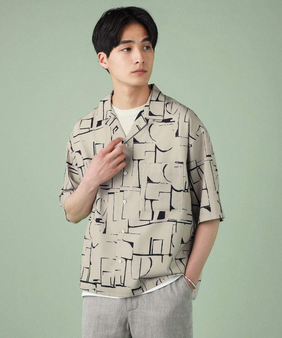 アブストラクト柄オープンカラーシャツ