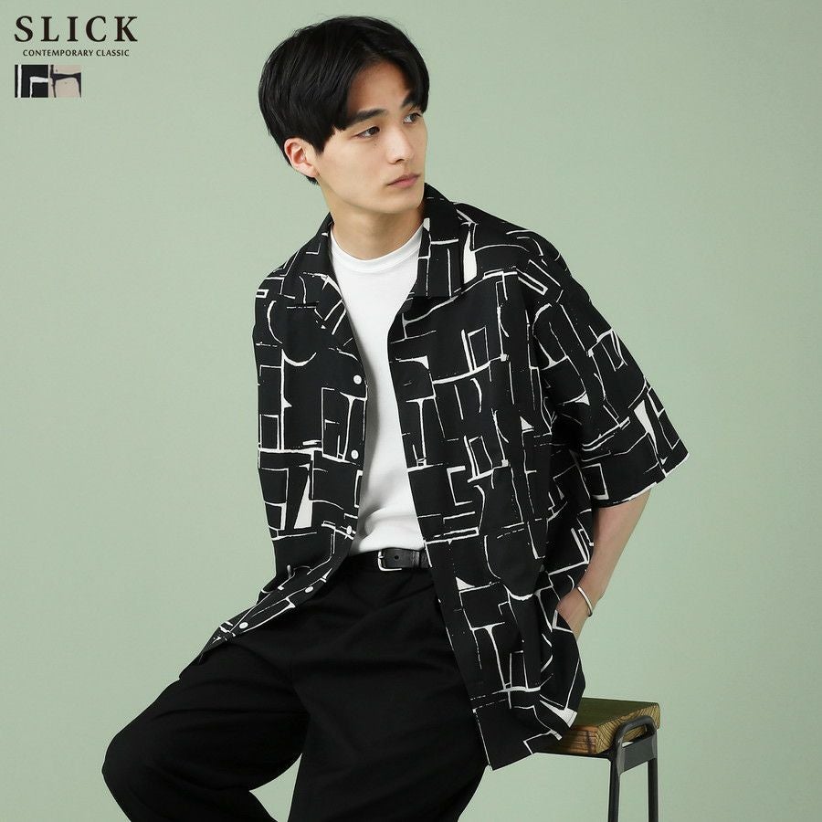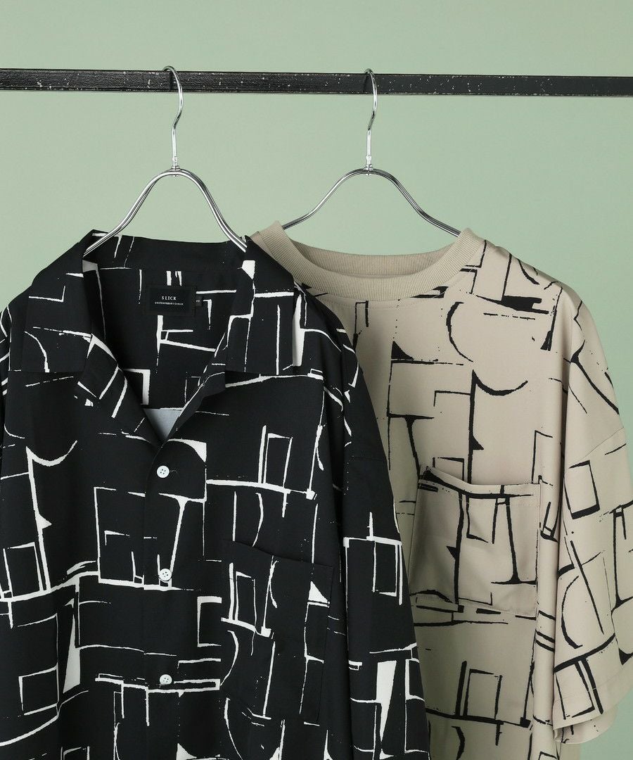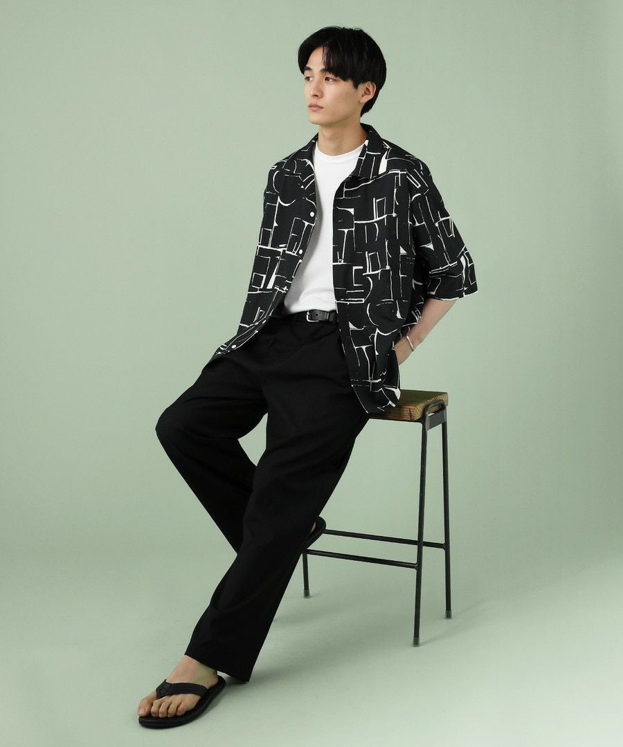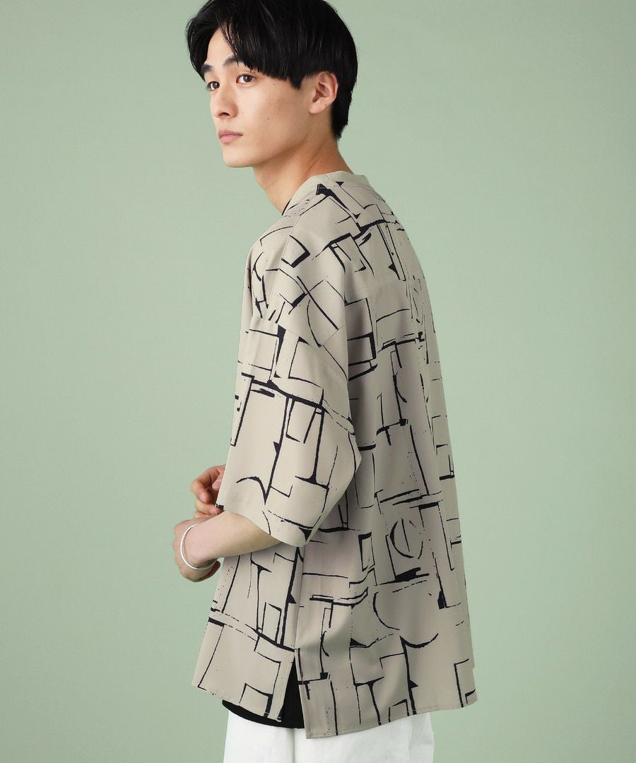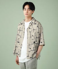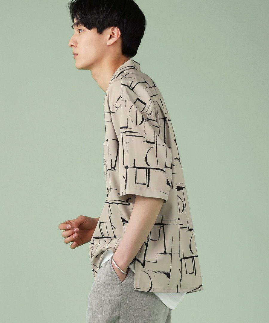 アブストラクト柄オープンカラーシャツ