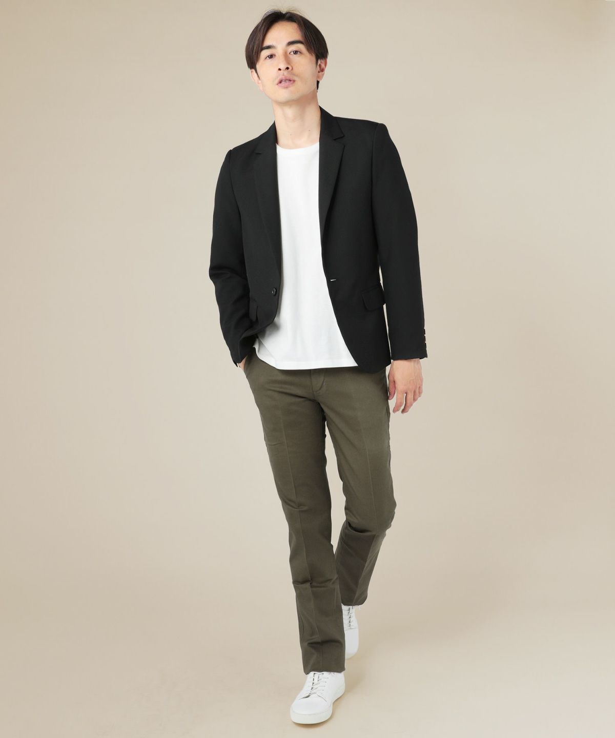 丈夫で破れにくいことから軍服や作業着に広く用いられてきた歴史がある生地『チノ』。密に織られた耐久性の高い綾織り生地です。伸縮性を生み出す素材であるポリウレタンを5%混紡したことで、優れたストレッチ性も兼ね備えました。肌触りはサラッとしていて柔らかく、生地表面に控えめな光沢感がある、大人っぽい素材です。