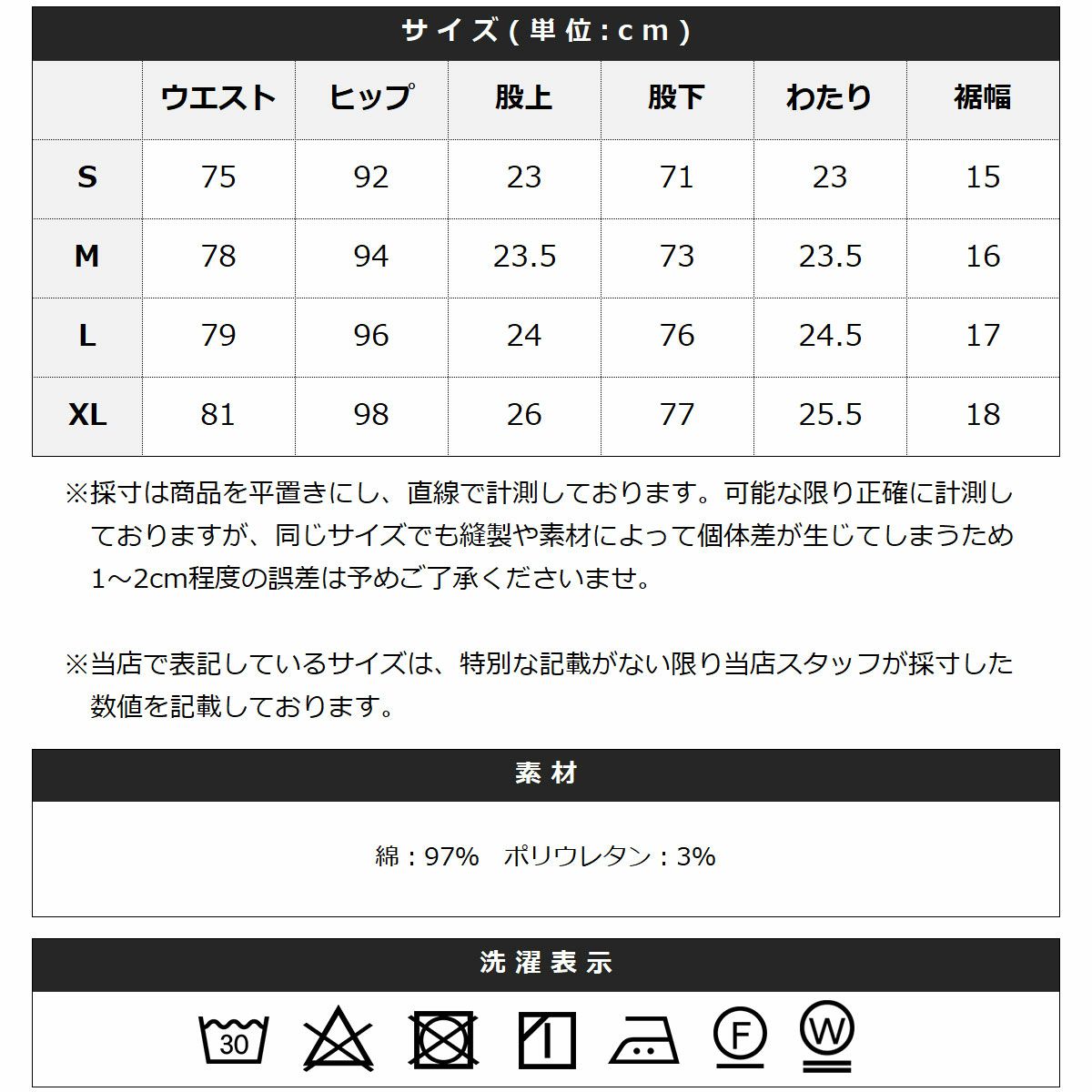 綿の混率が高いため、お洗濯後には縮みが発生いたします。穿くたびに再び伸びてはいきますが、縮みが気になる場合にもワンサイズアップがオススメです。