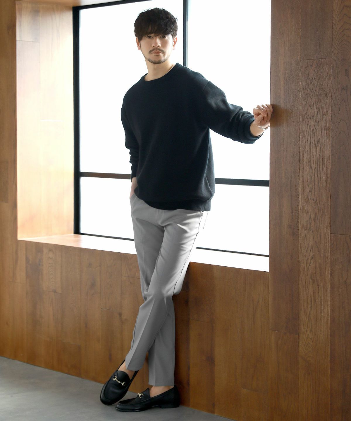ニット地は、編み目が目立たないミラノリブを採用しました。フラットな編み地なので、キレイめで上品な印象があります。