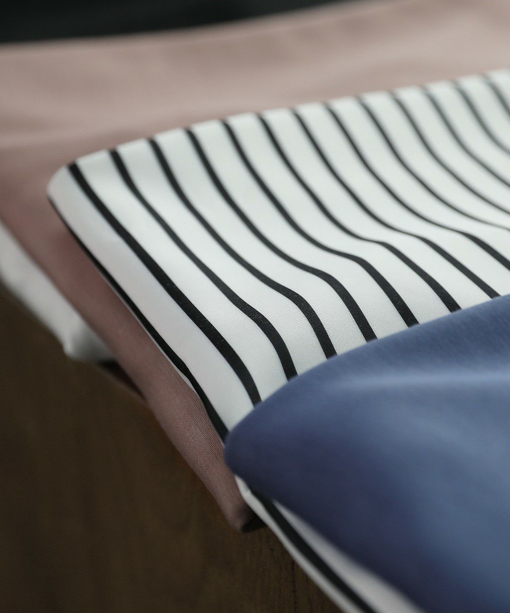 春らしいニュアンスカラーを取り揃えた無地のデザイン、大人見えしやすいボーダーデザイン、大胆な切り替えが目を引くスウィッチデザインを取り揃えており、カジュアルさの中に上品な雰囲気をプラスした着こなしを作り出します。