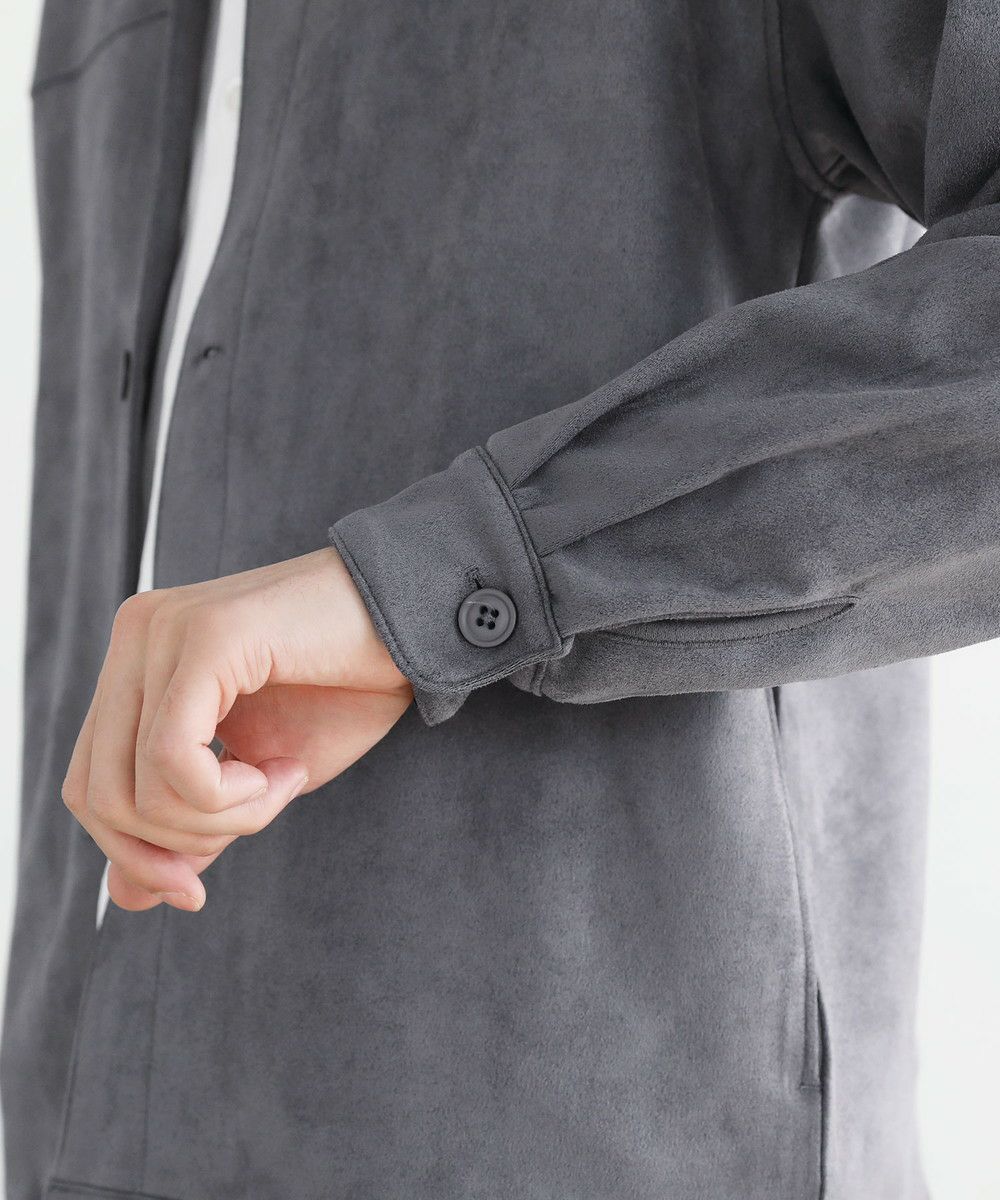 スウェード調の素材で仕立てた高級感のあるシャツジャケットです。