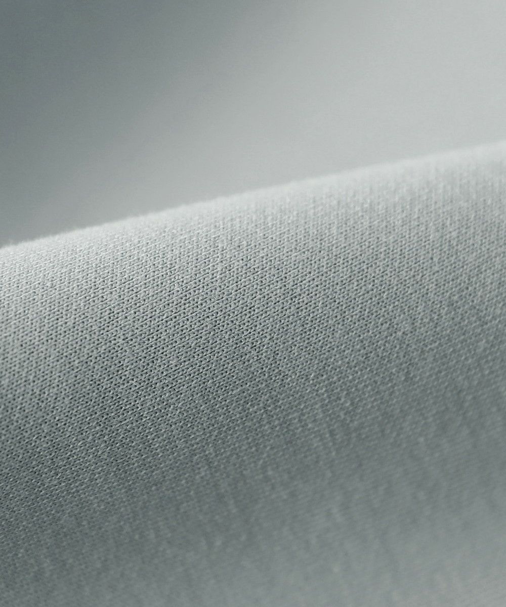 素材は空気を含んだようなふくらみと適度なハリ、艶感を持つハイポンチ生地を使用。生地の密度が高いため一般的なスウェットと比べてへたりにくく、着用時の脚のラインが美しくキマります。ポリエステルベースにレーヨン、ポリウレタン混紡の生地はストレッチ性も抜群。シワになりにくいのでホームケアも簡単です。