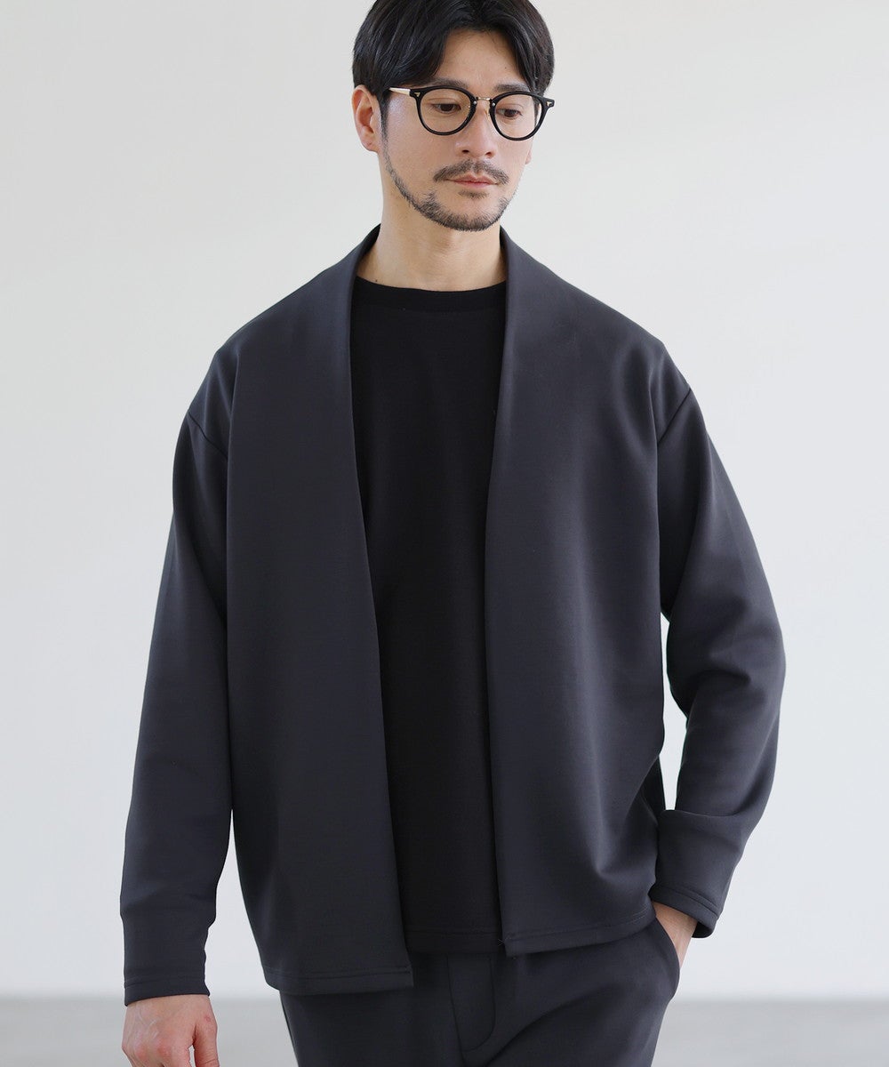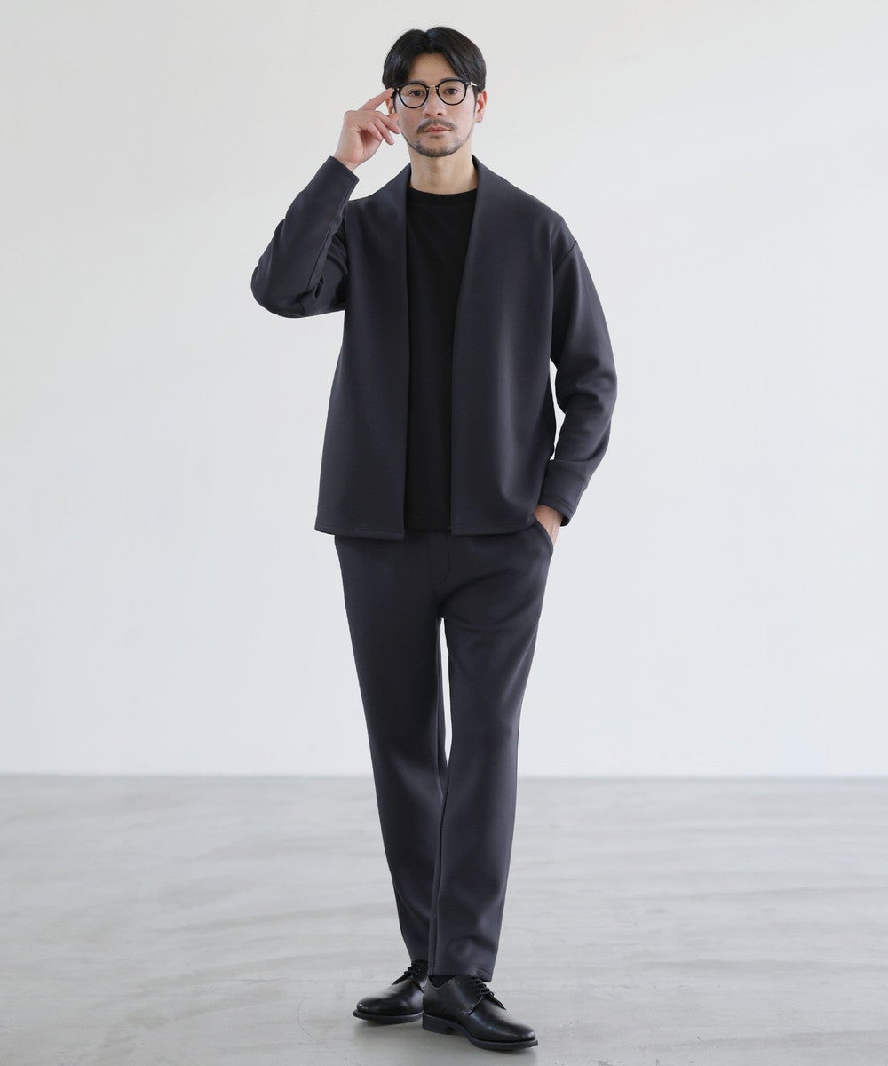 【セットアップ 2点セット】ピーチスキンポンチノーカラーカーディガン&テーパードパンツセットアップ