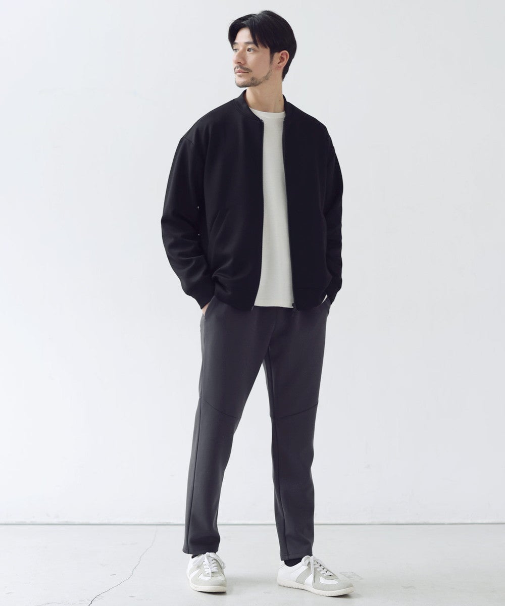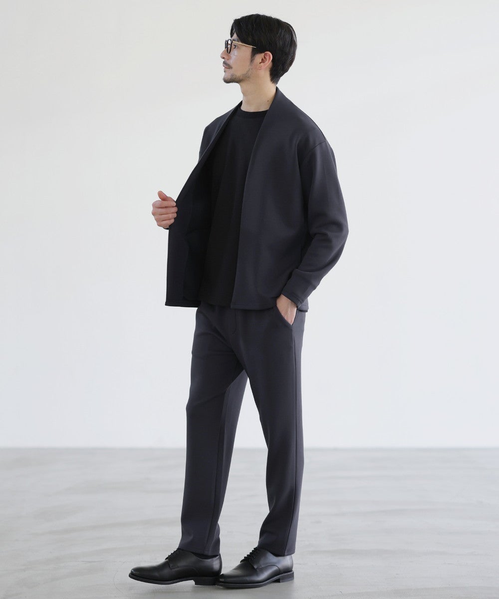 【セットアップ 2点セット】ダブルジャージーノーカラーorテーラードジャケット &イージーテーパードパンツ セットアップ