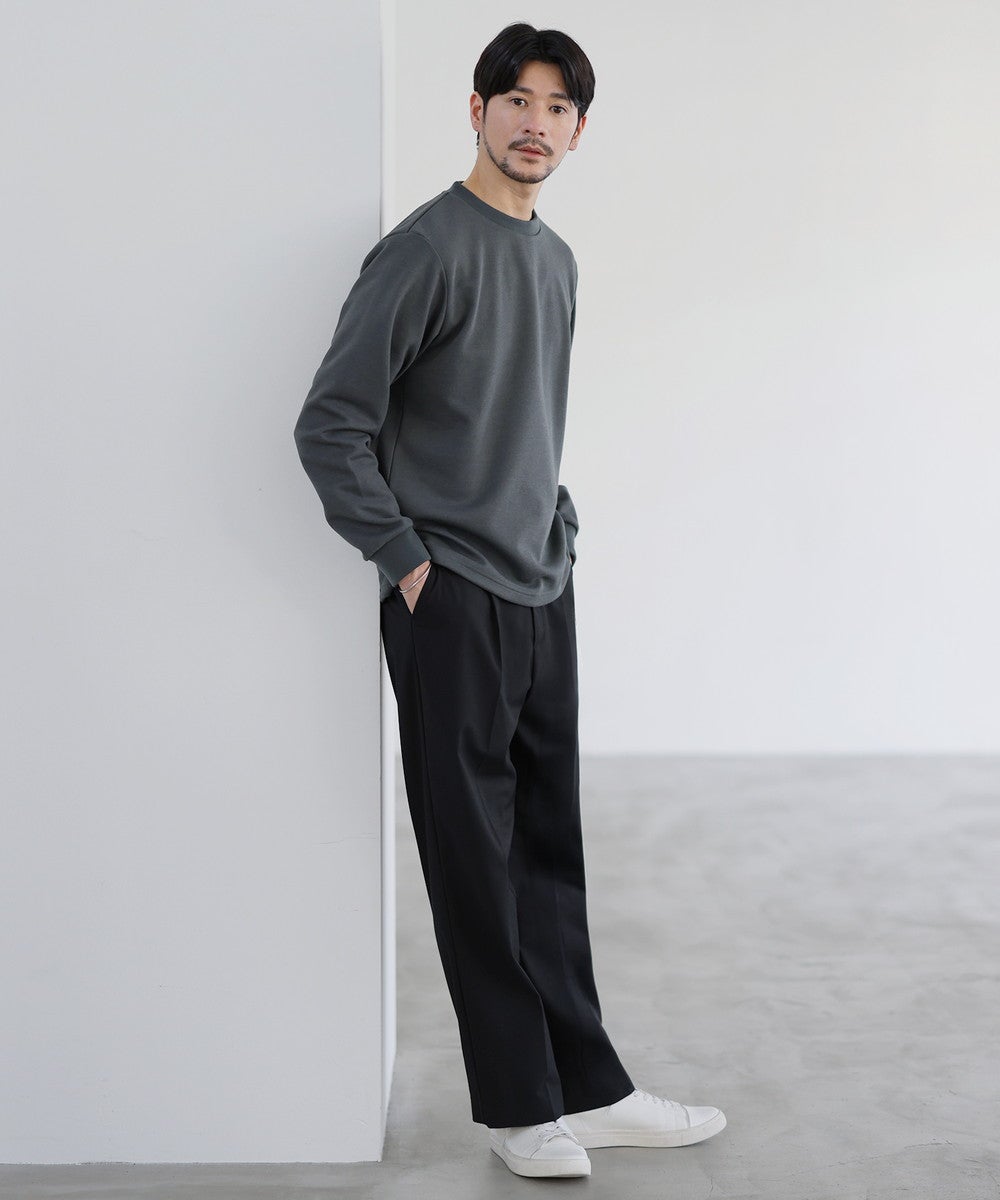 防シワ・ストレッチ/セミワイドシルエットワンタックセンタープレススラックス