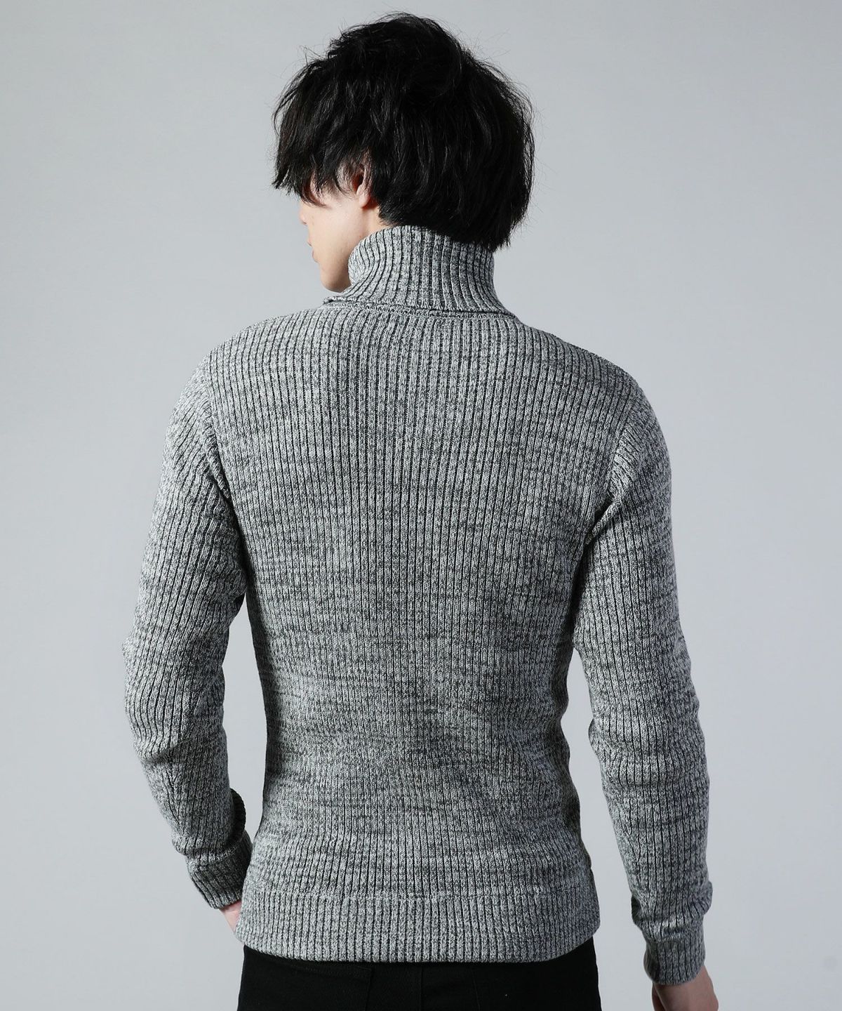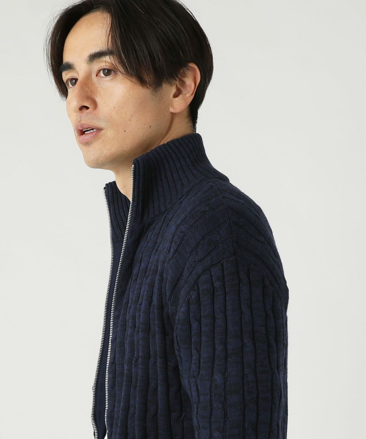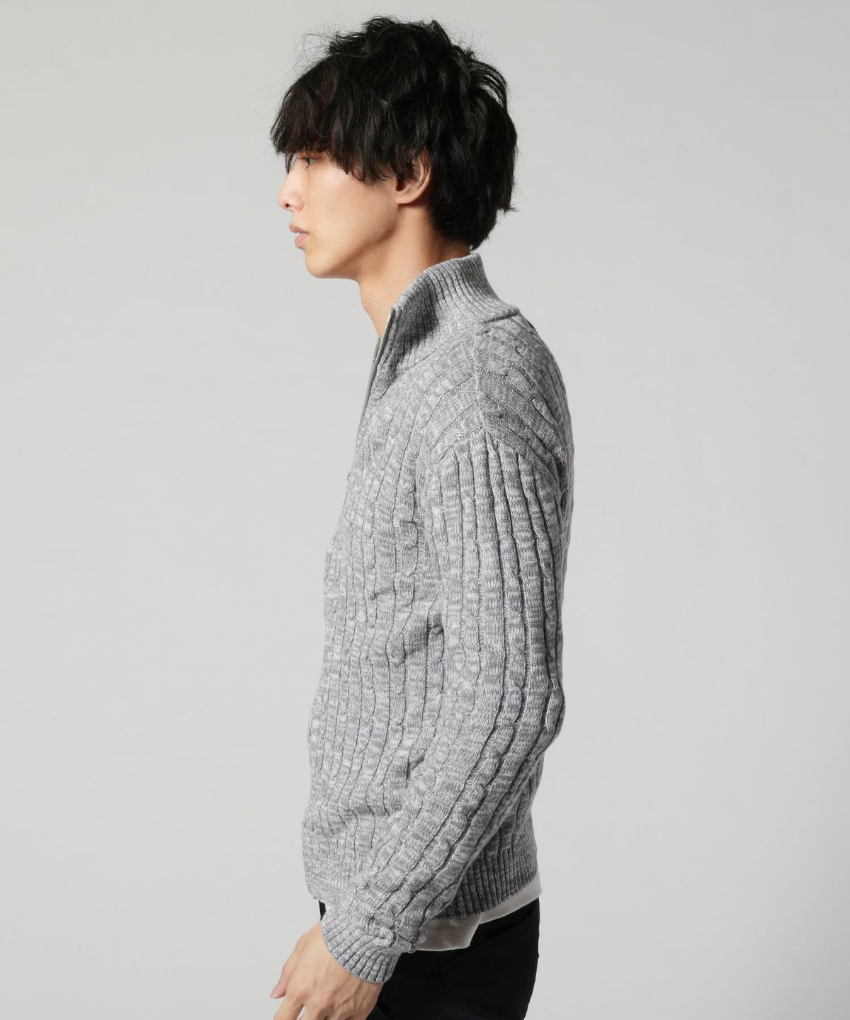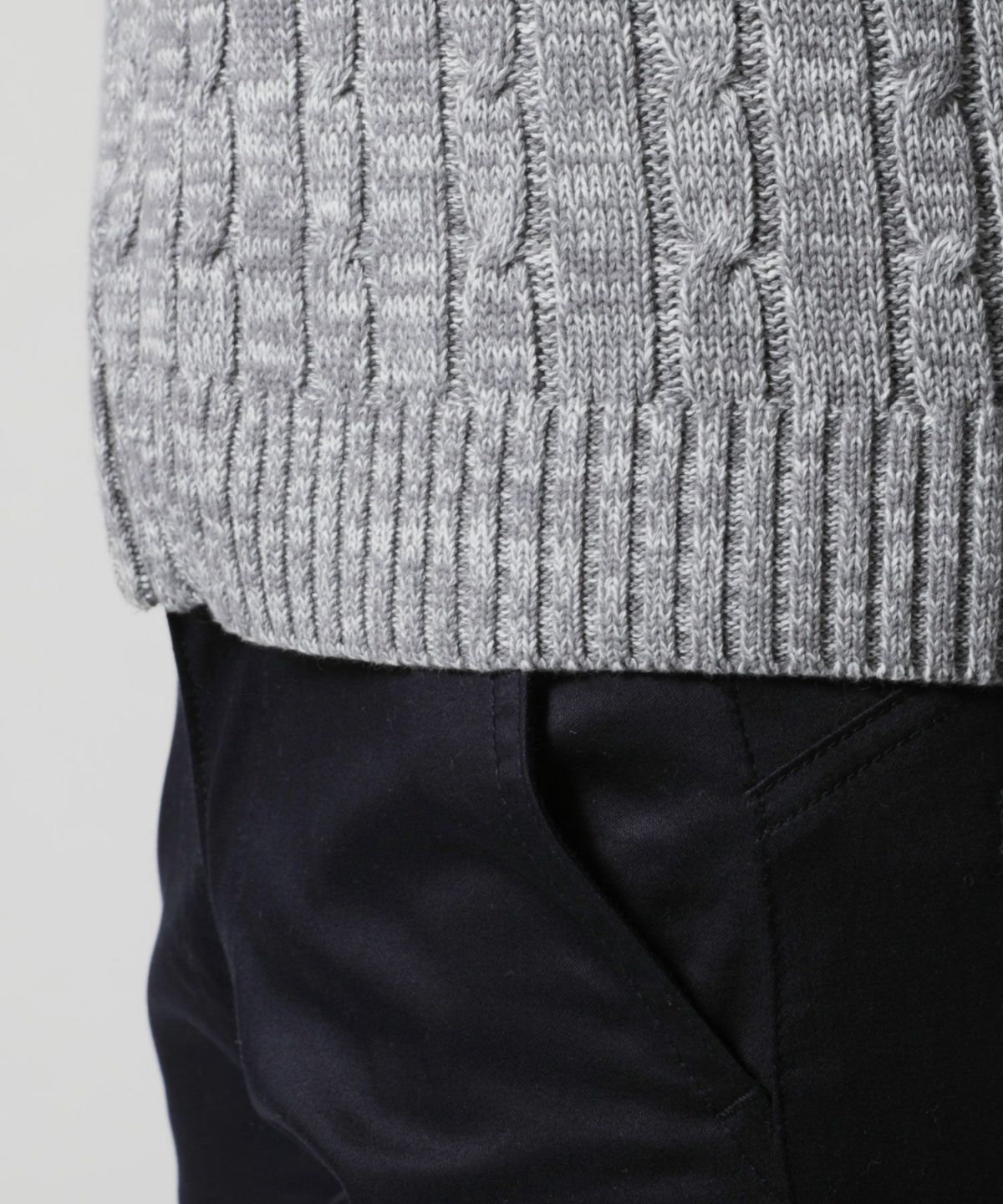 5GGアクリルフィッシャーマンケーブル編みクルー/V/タートルネックニット