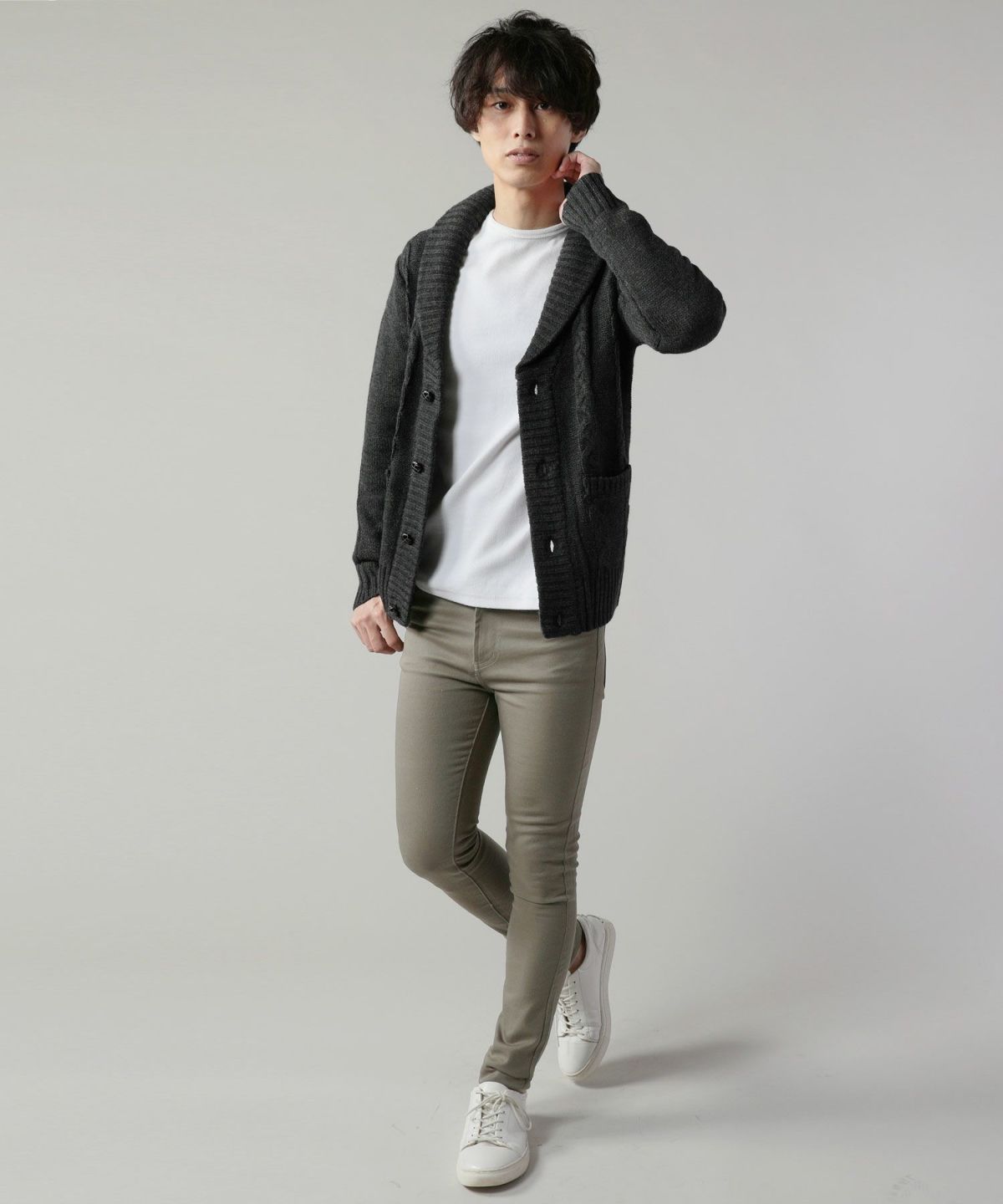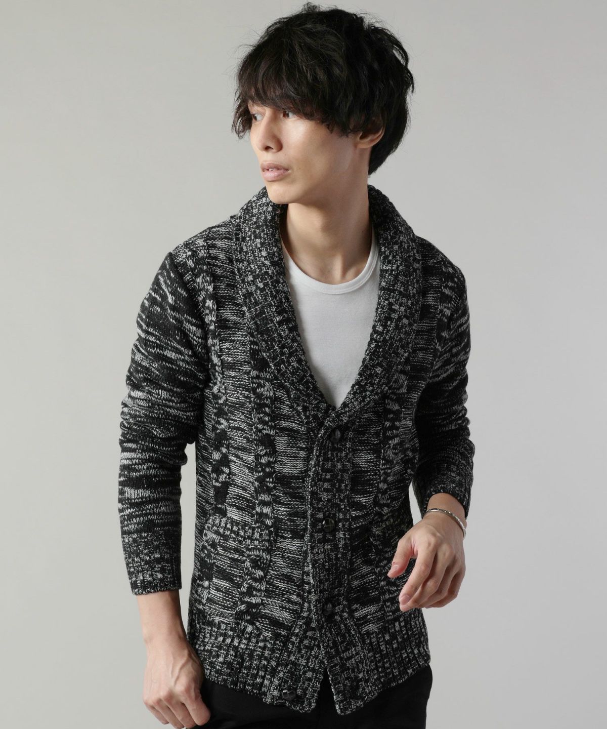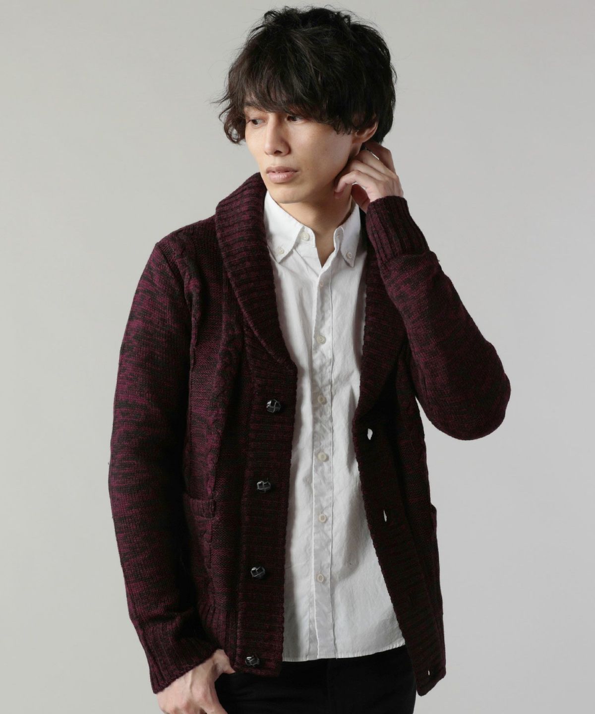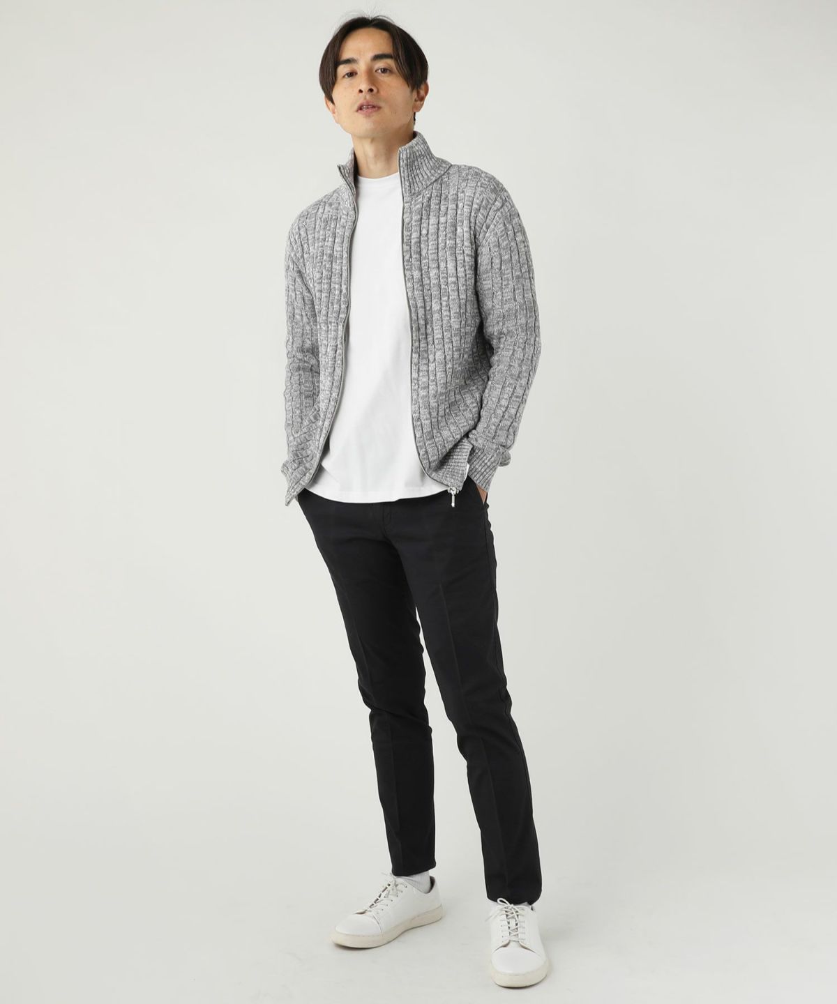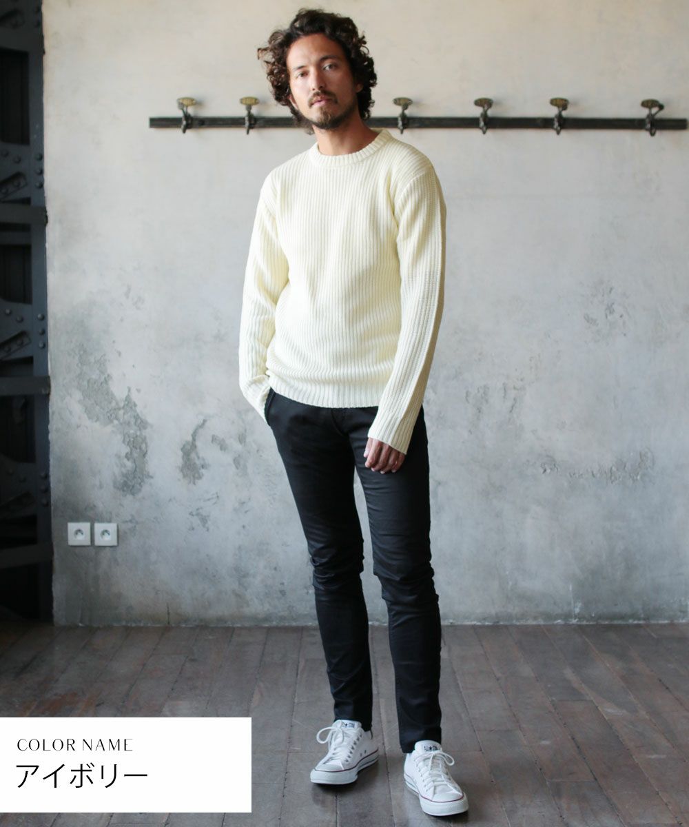 5GGアクリルフィッシャーマンケーブル編みクルー/V/タートルネックニット