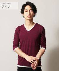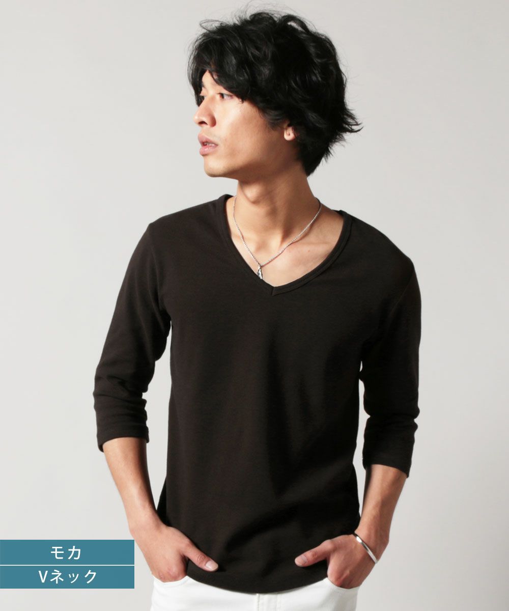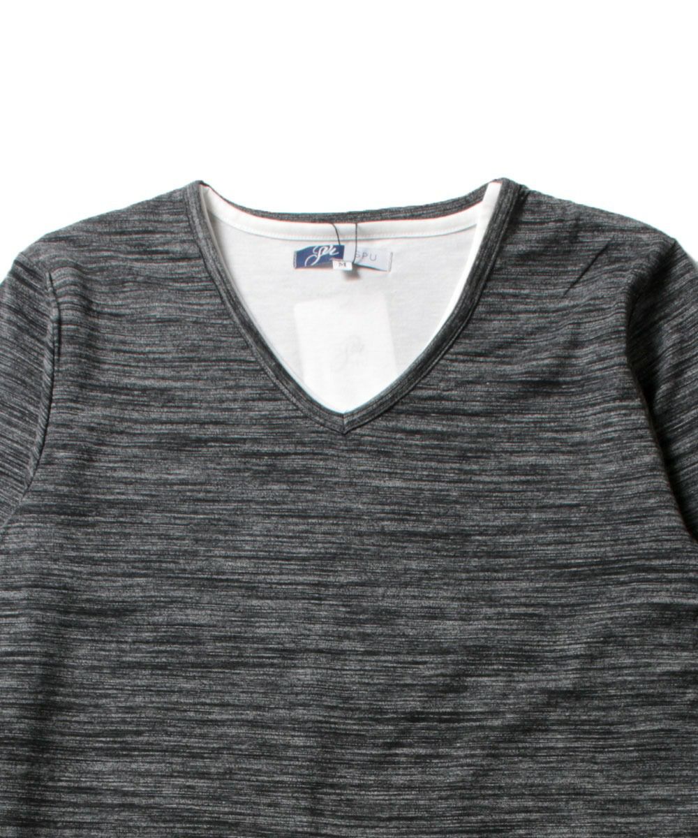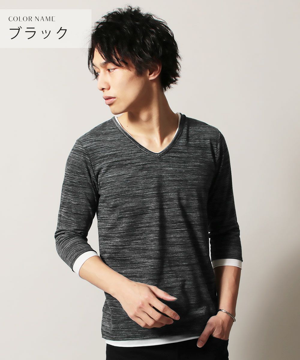トリッキー杢アンサンブルVネック7分袖カットソー