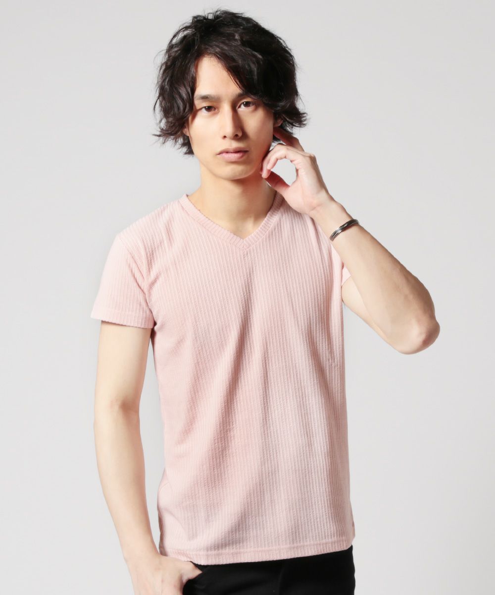 パイルネックサマーフリースVネック/クルーネック半袖カットソー