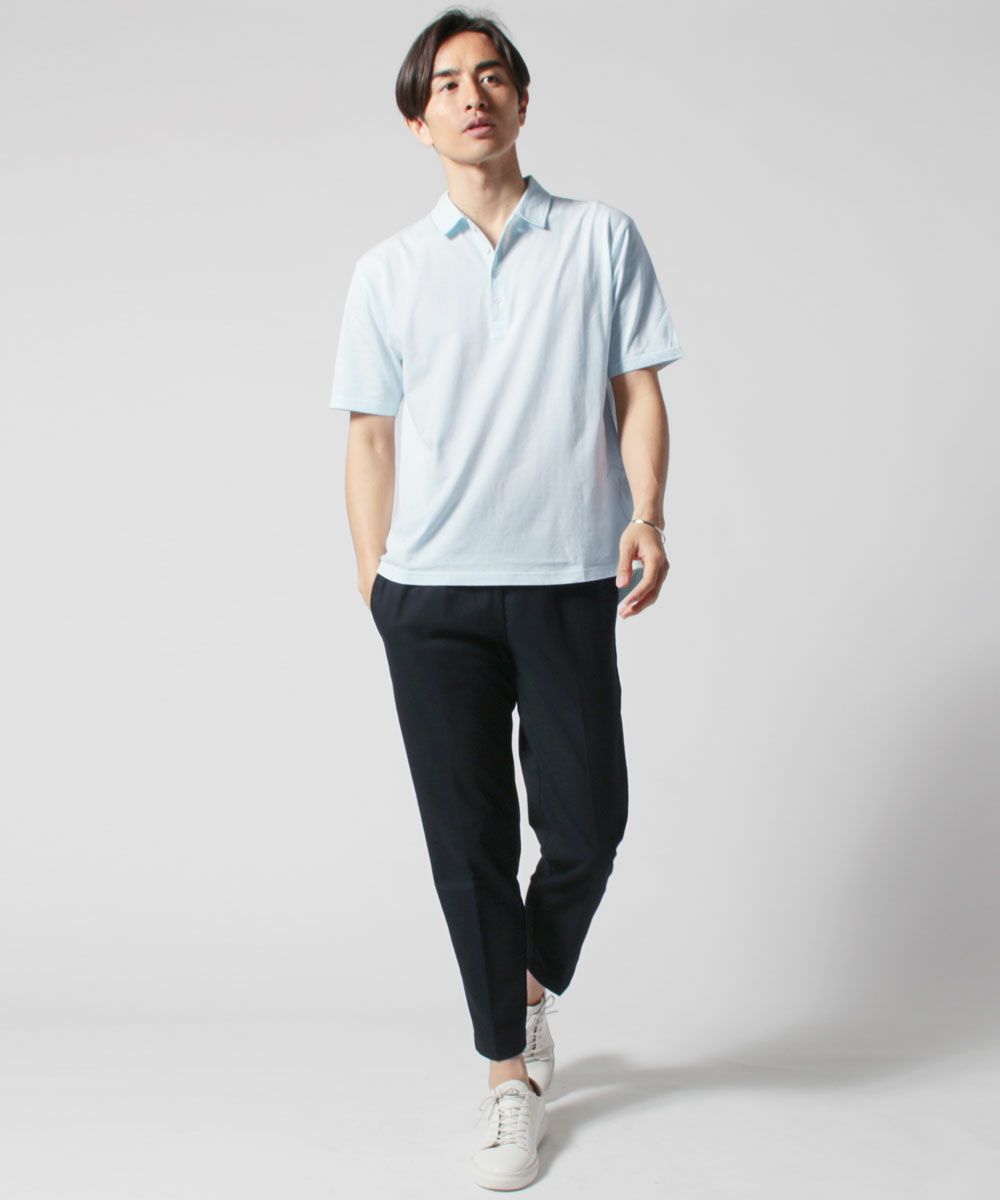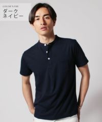 日本製30コーマ天竺バンドカラー半袖ポロシャツ