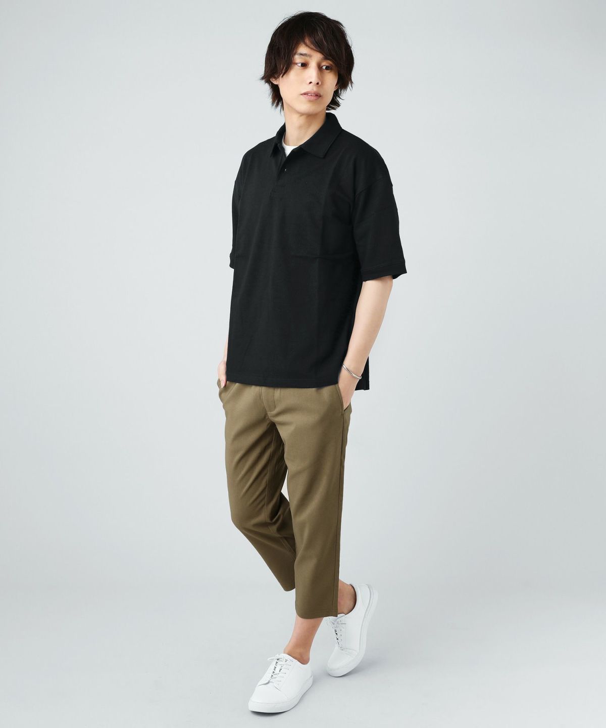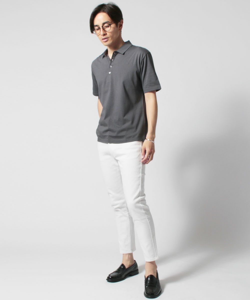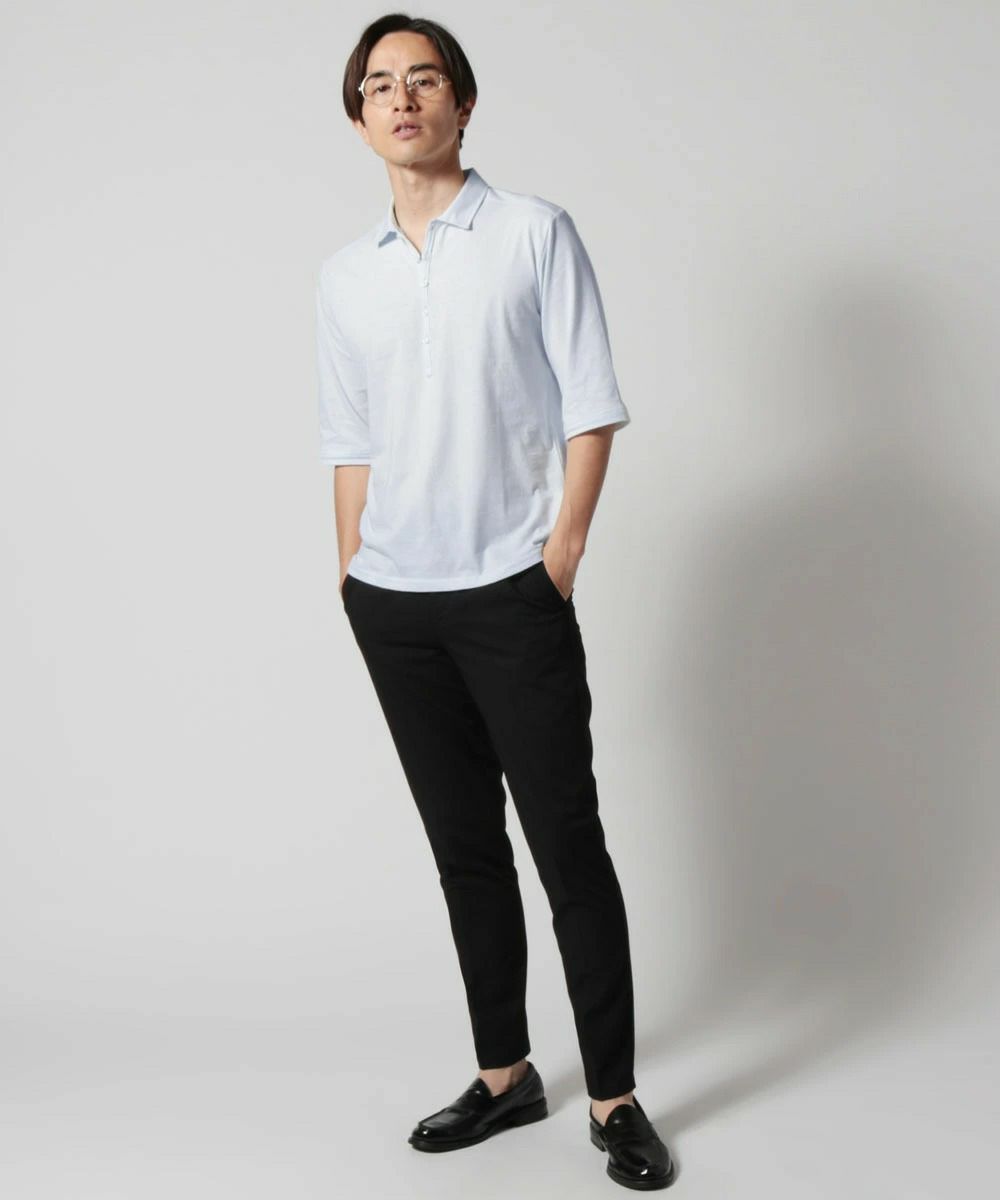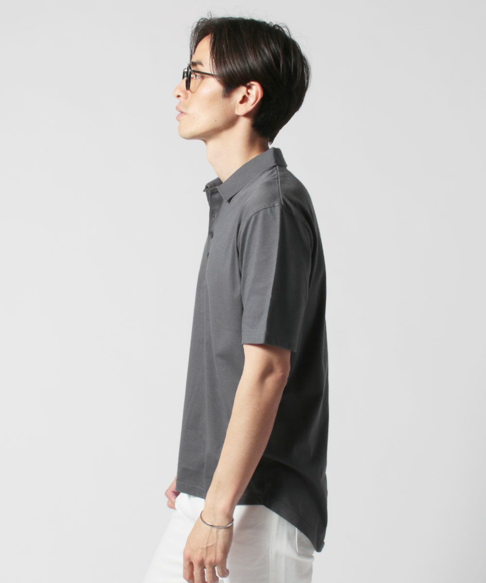 日本製30コーマ天竺ヘムラウンド半袖ポロシャツ
