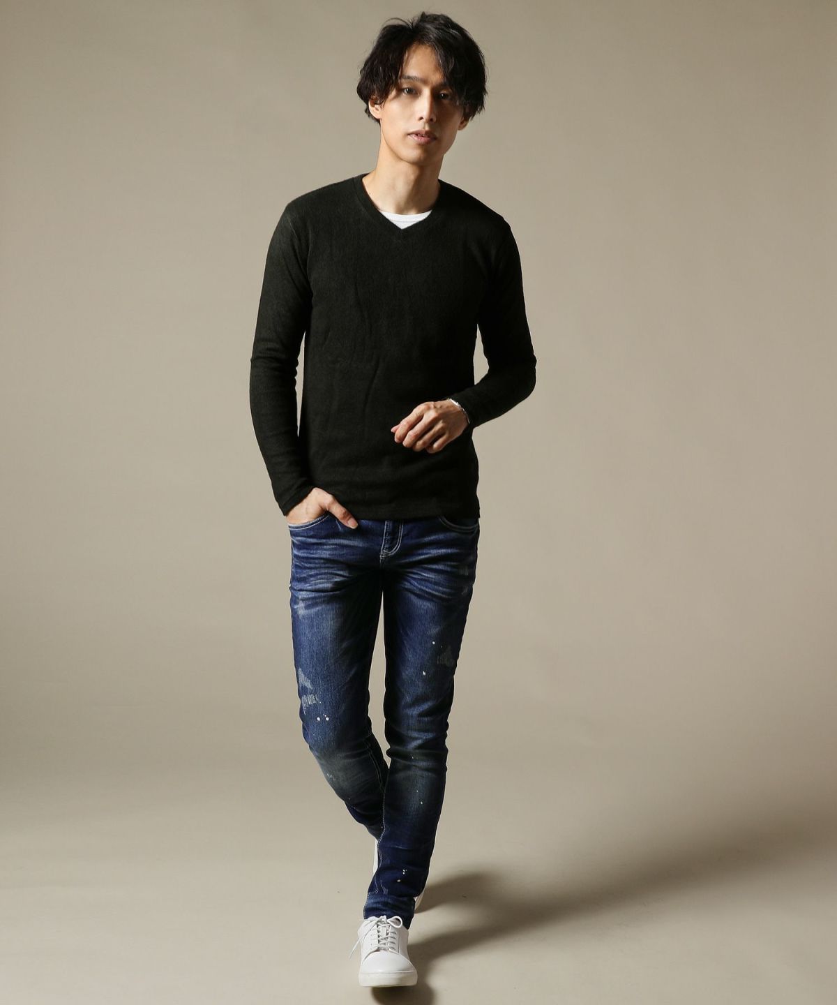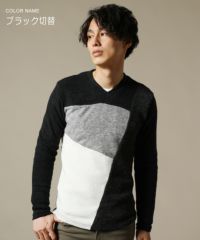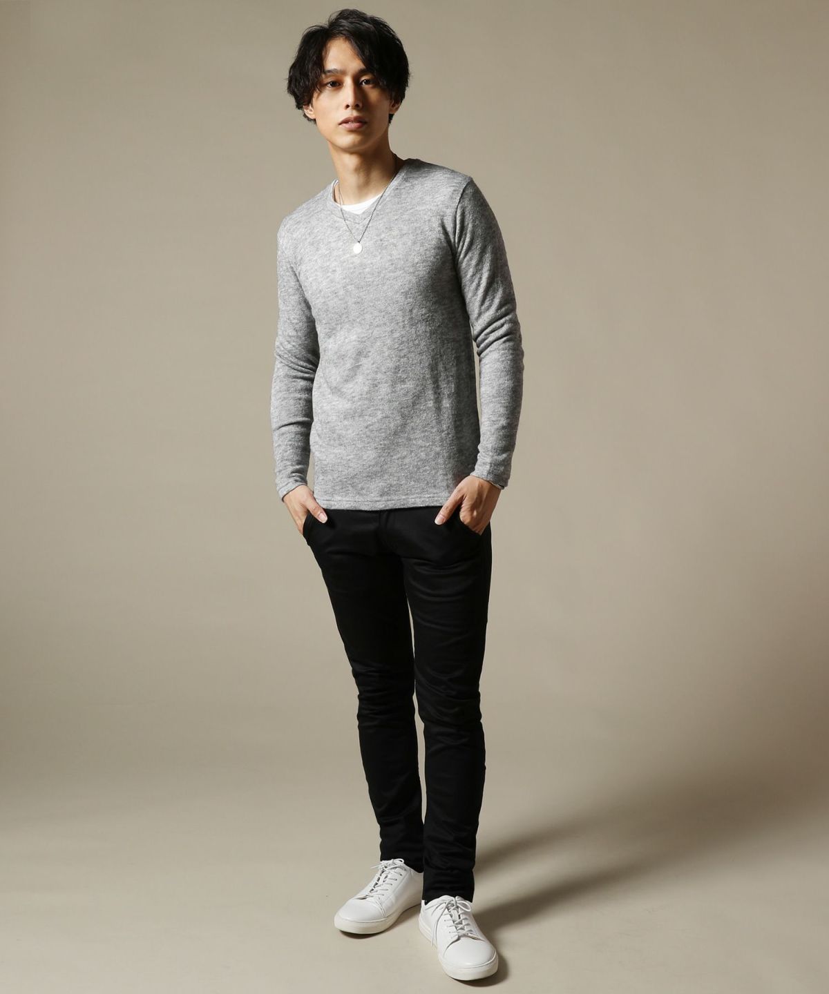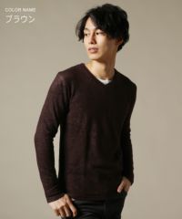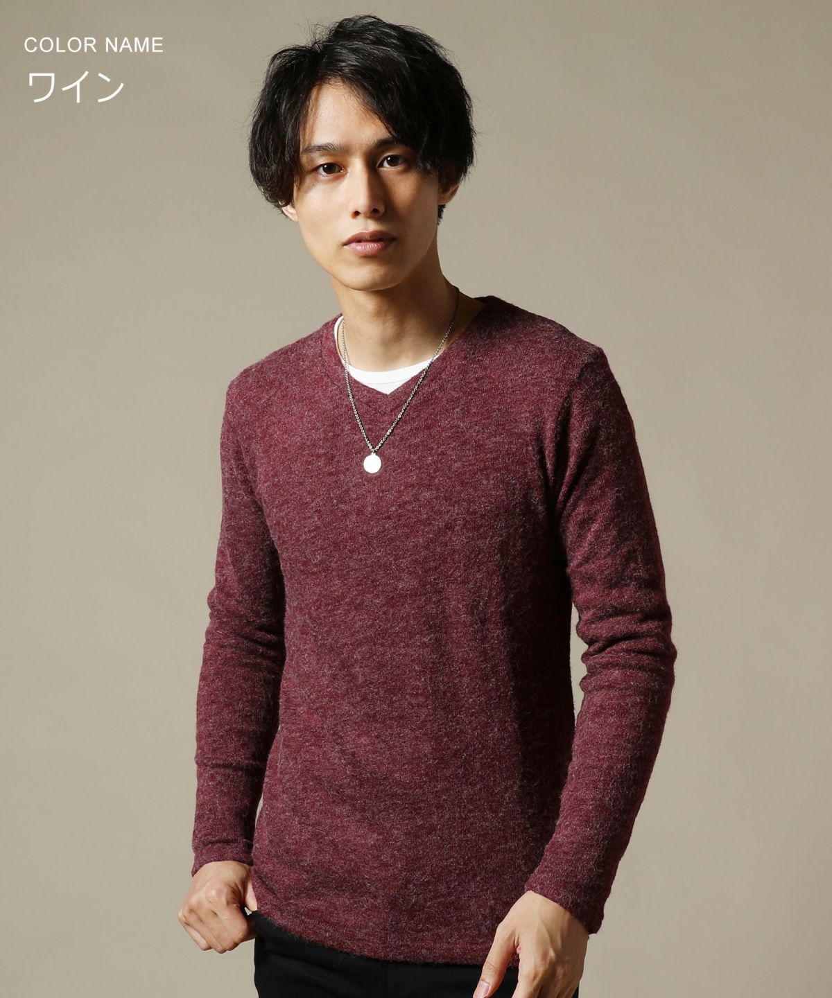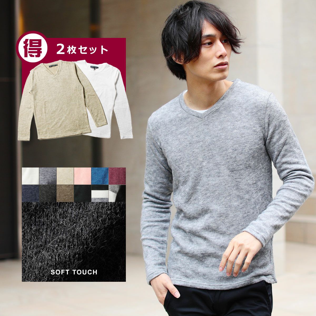 【2点セット】バルキーソフトタッチ長袖Vネックニットソー×カットソーアンサンブル