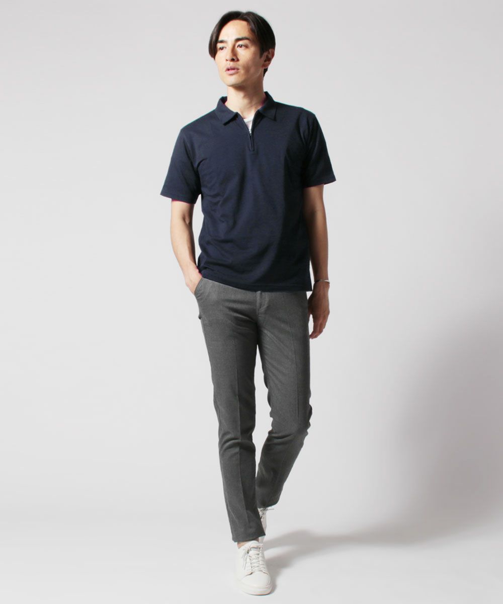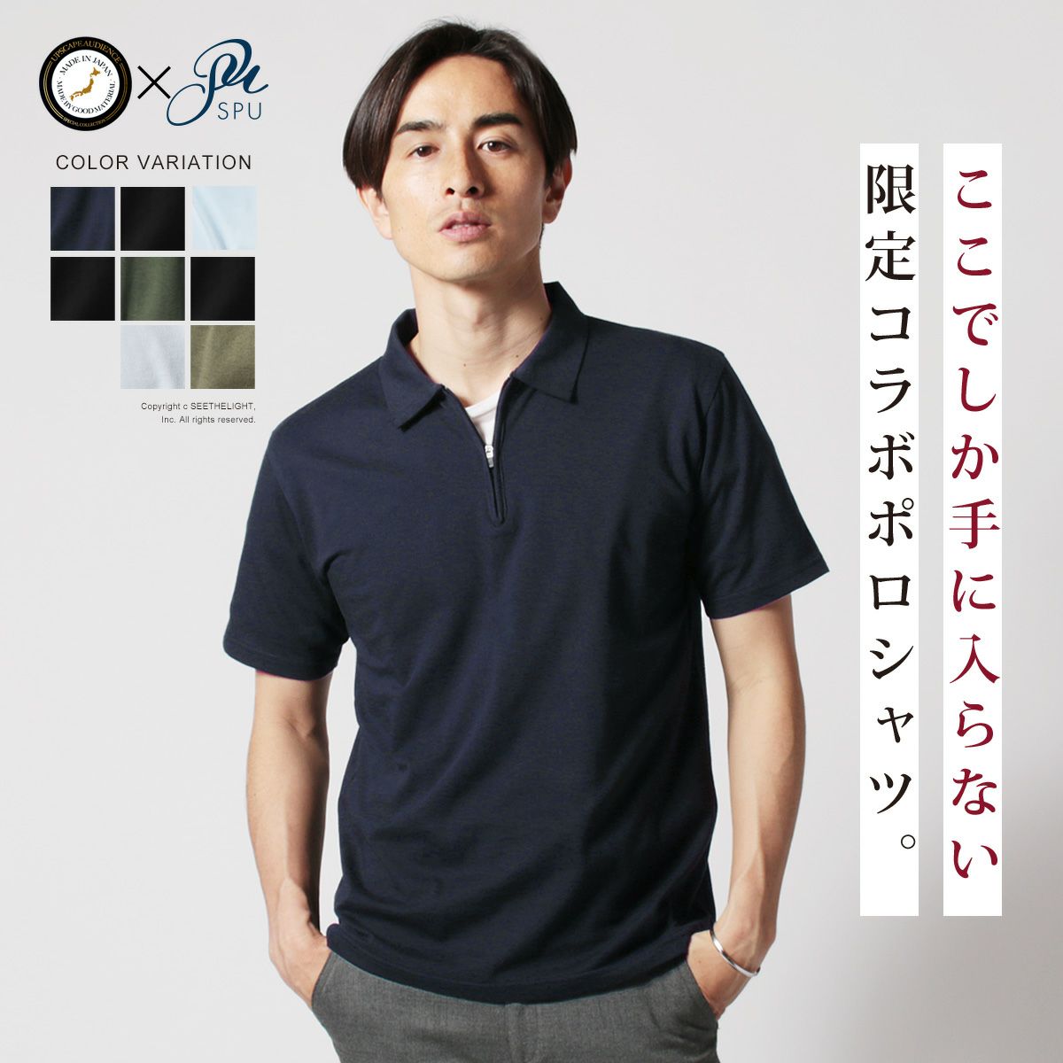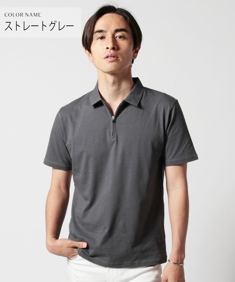 日本製30コーマ天竺ハーフZIP半袖ポロシャツ