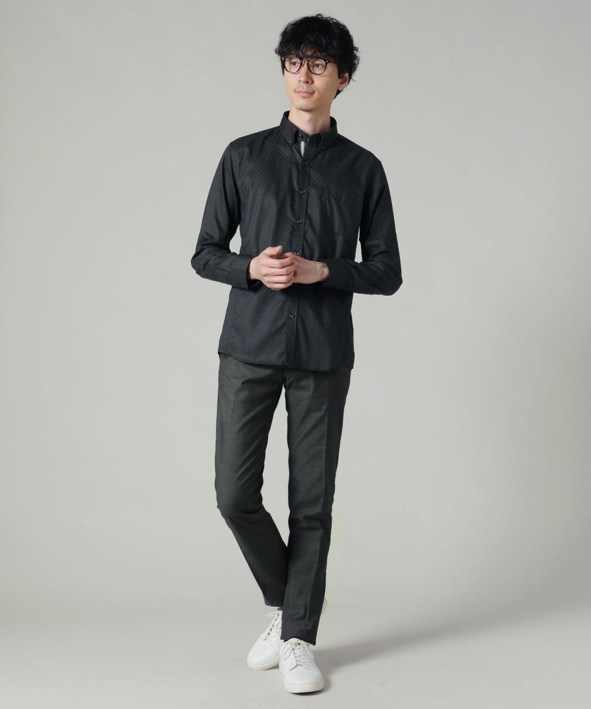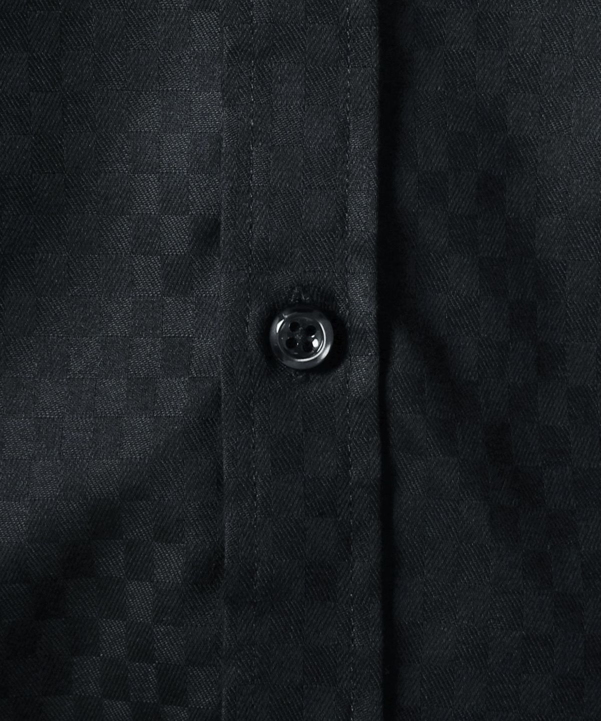 艶感のある生地にシャドーチェックデザインを施した、一枚でオシャレにきまるボタンダウンシャツ。