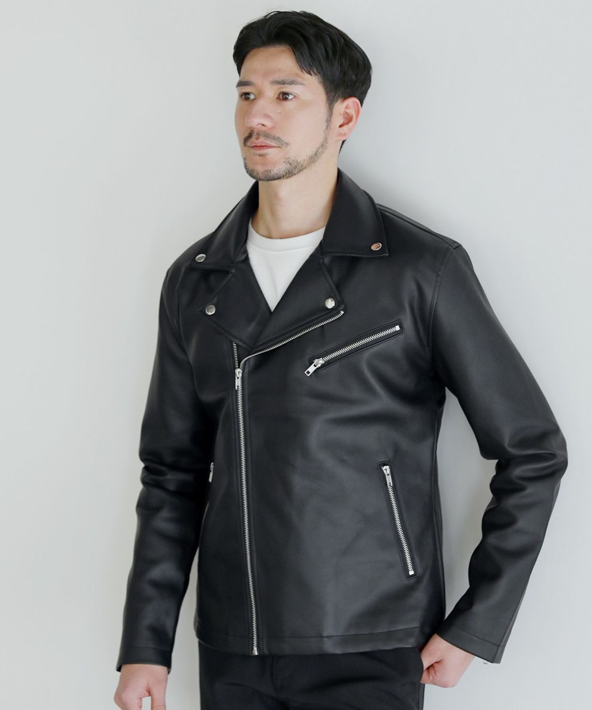 PUレザーダブルライダースジャケット