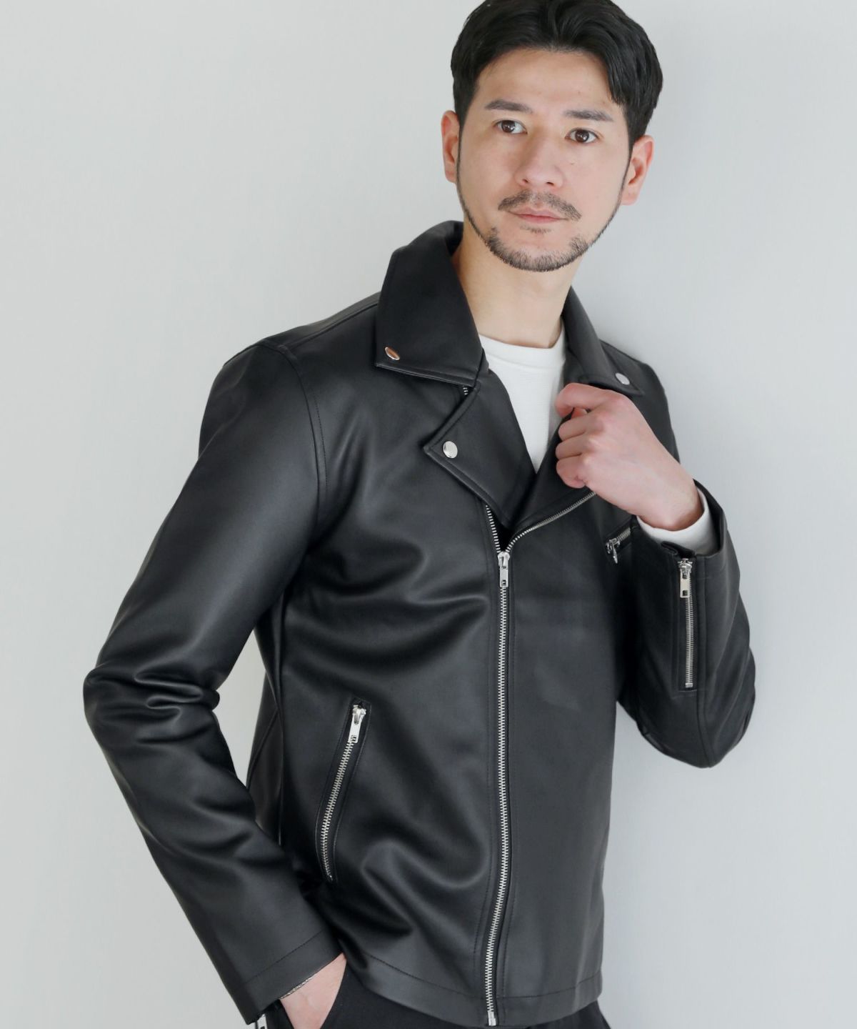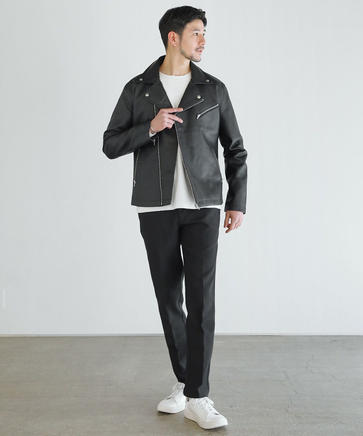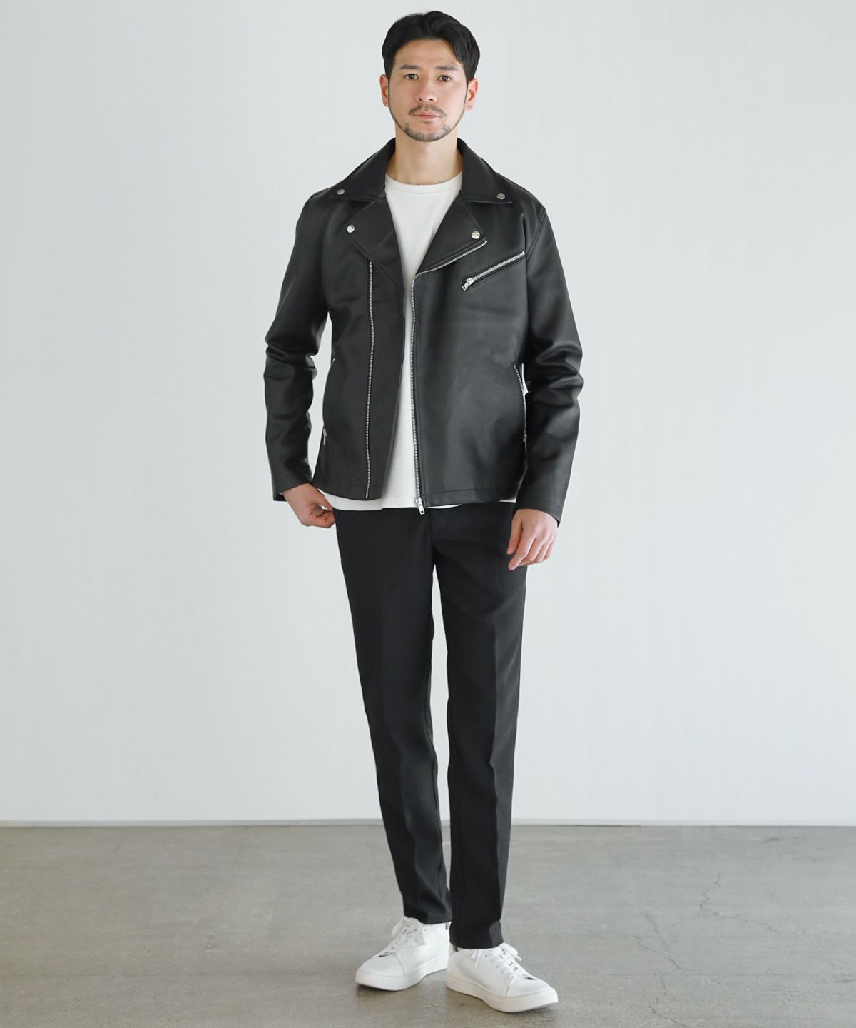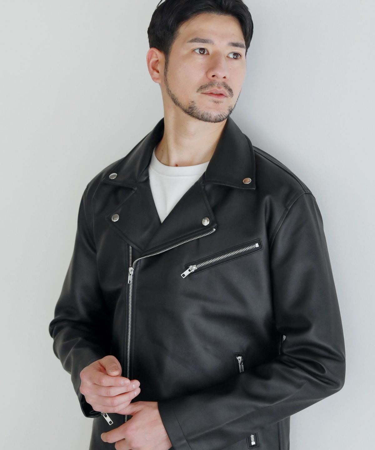 コーディネートの主役になるダブルライダースジャケット。