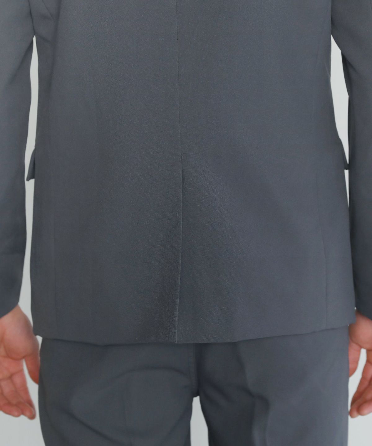 生地は品の良い印象の微光沢ポリエステルスーツ生地。きめ細かく滑らかな生地が、きちんと感を演出します。裏地も付いているので袖通しはスムーズ。便利な内ポケットも1つ付けております。