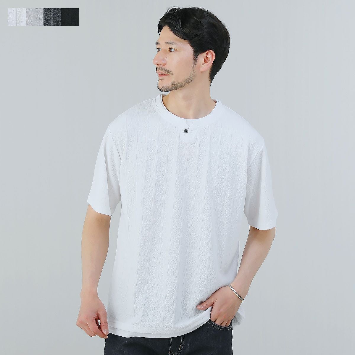 他の画像を見る Buyer's Select ジャガードストライプヘンリーネックフェイクレイヤード半袖カットソー 通常販売価格 ¥ 3,300 のところ ¥ 1,980 税込 在庫切れ カートに入れる お気に入りに登録する
