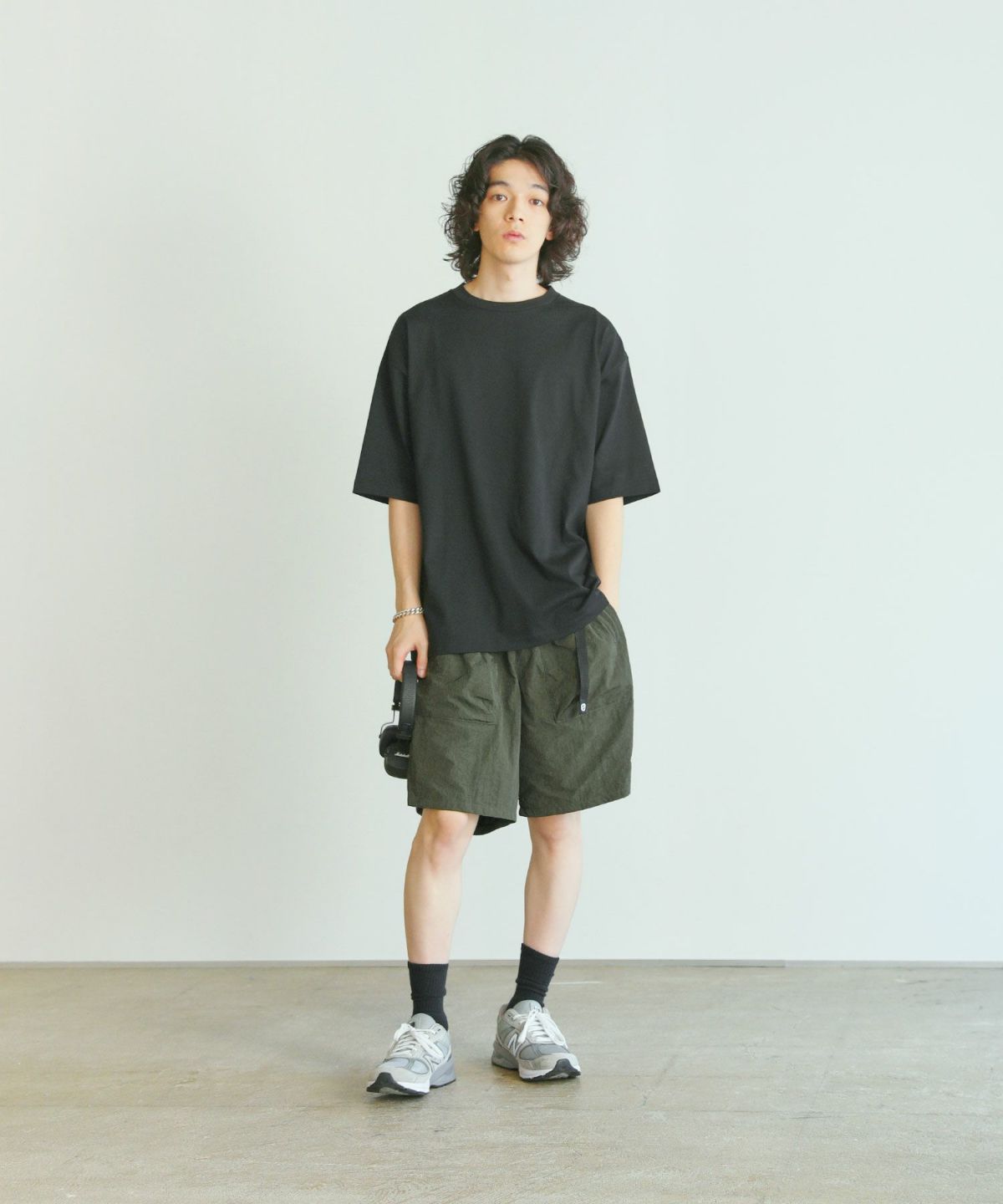 【3点セットアップ】刺繍オーバーサイズ鹿の子ポンチポロシャツ&ナイロンショーツ&ソックス