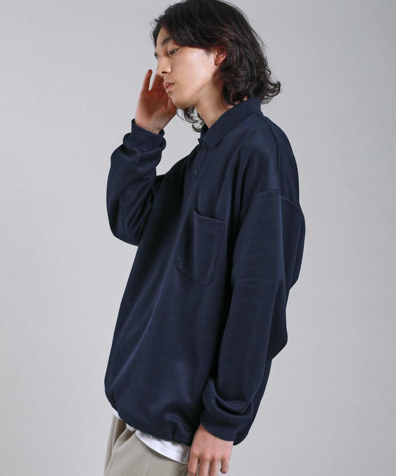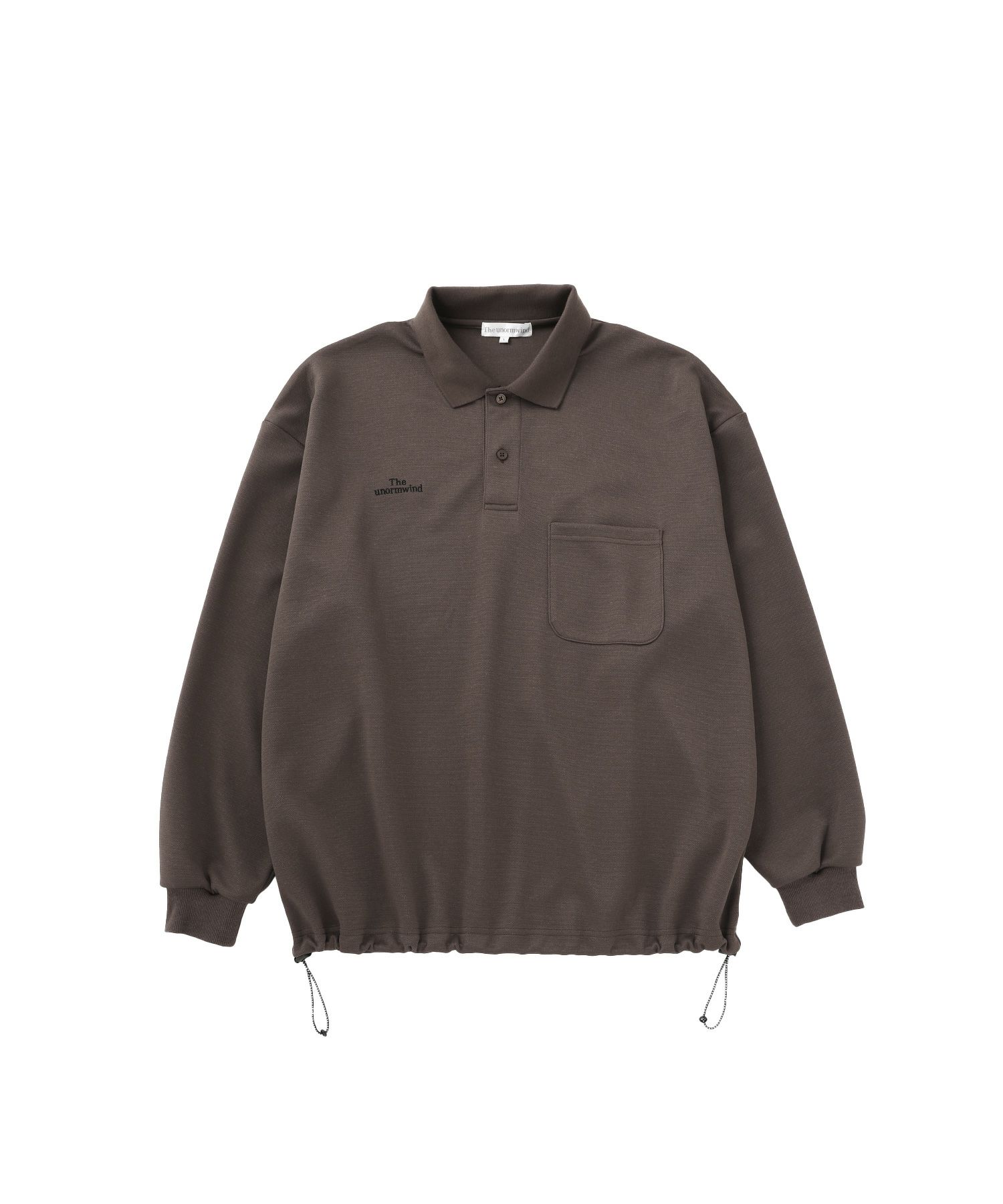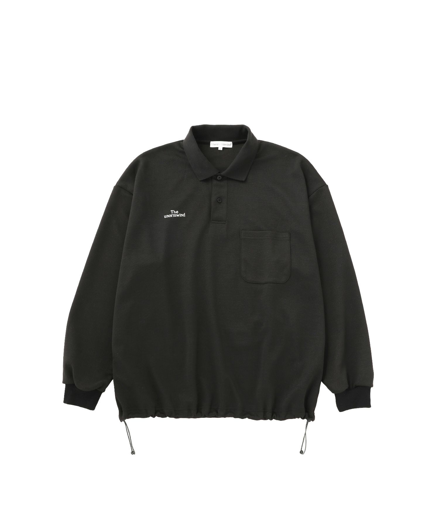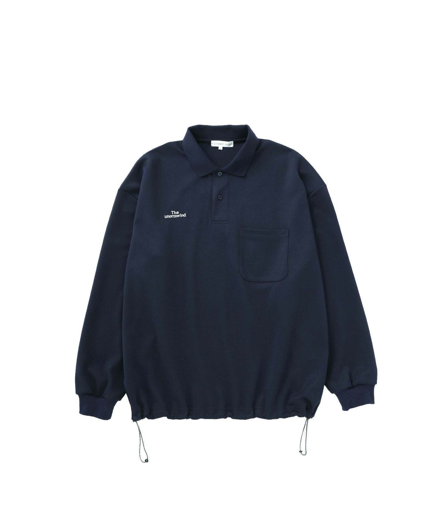 胸ロゴ刺繍裾ドローコード鹿の子ポンチハーフボタン長袖ポロシャツ