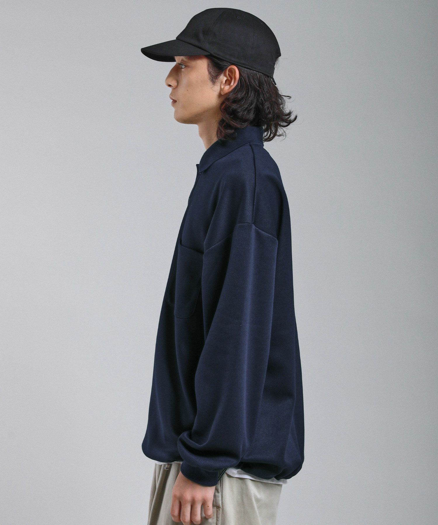 肩のラインがゆったりとして見えるドロップショルダーで程よく抜け感がプラスされ、こなれた印象を作ってくれます。袖口にはリブを付けているのでもたつきません。裾にはドローコードを配し、シルエットを変えてお楽しみいただけるほか、インナーを合わせたときのレイヤード感なども調整でき、簡単にバランスの良いレイヤードスタイルが完成します。ポロシャツの胸元にはブランドロゴ刺繍が施されており、着こなしにさりげないアクセントをプラスしてくれます。