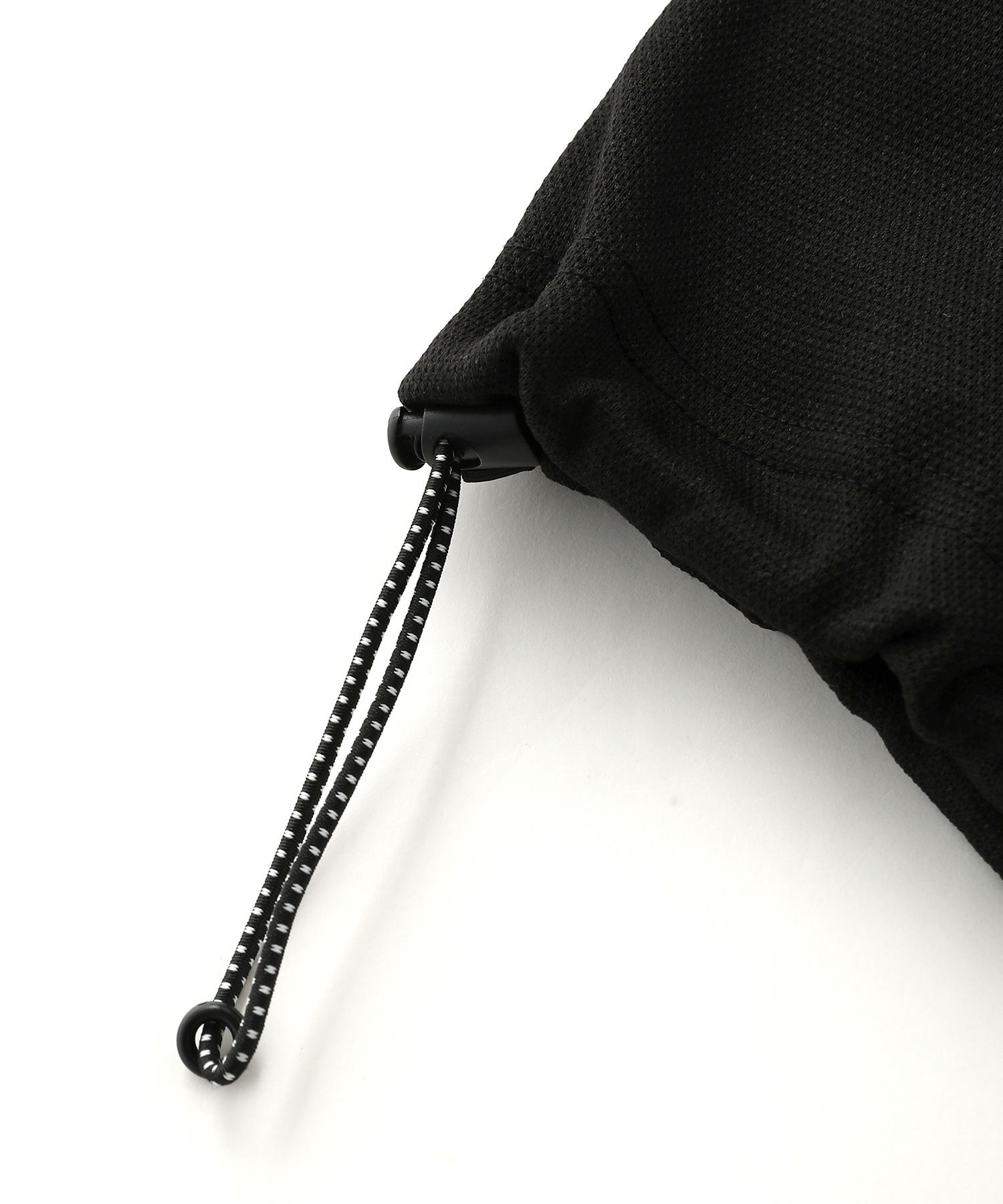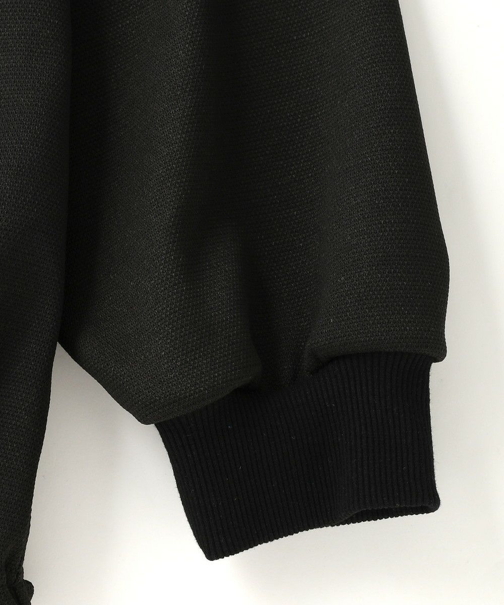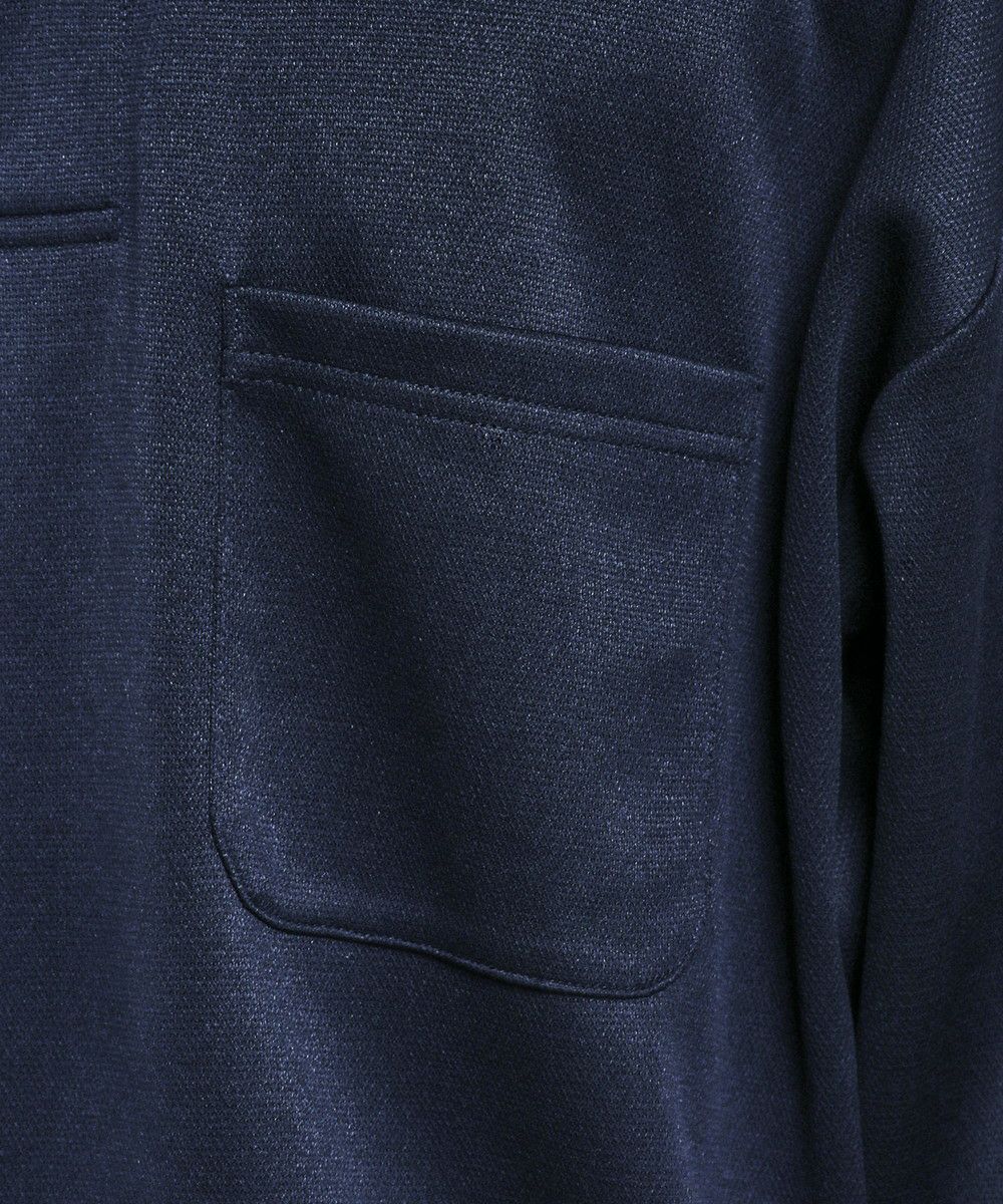 生地は、サラリとした肌触りのポリエステル素材を使用。鹿の子ポンチは生地表面に繊細な凹凸感があり、シンプルなコーディネートに表情を与えてくれます。ポリウレタン混紡素材で伸縮性があり、重ね着をしても肘の曲げ伸ばしにストレスがありません。ポンチ生地なのでハリ感があり、シルエットが保たれやすいのも特長です。