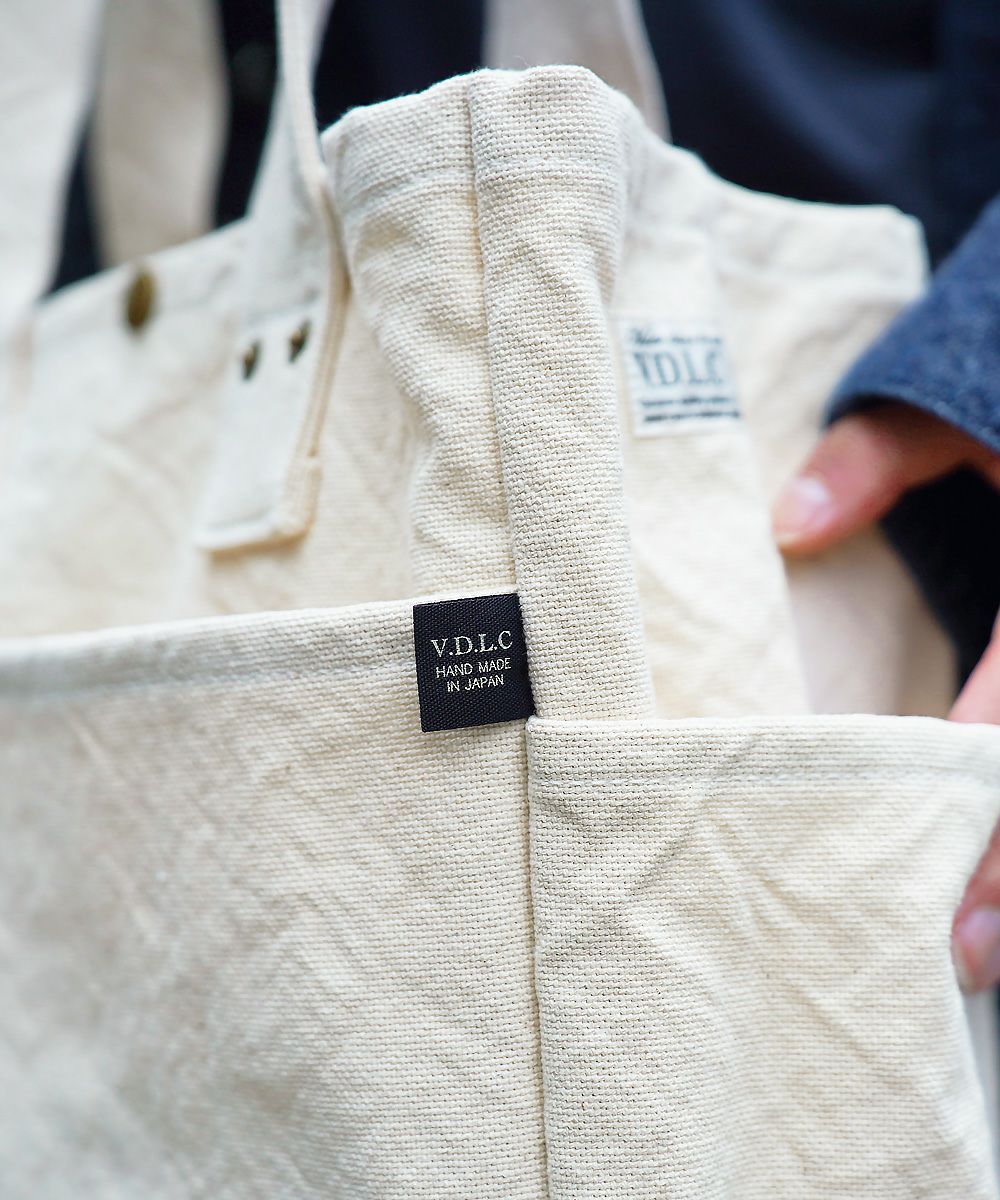 デニムの産地として知られる岡山県の倉敷帆布を製造する工場で、百年以上も前から続く昔ながらのシャトル機で織られた帆布。熟練した職人の手で丁寧に織られた生地は耐久性に優れており、重量感のある6号糸を粗く織り込むことで『軽さ』と『柔らかさ』を持ち合わせています。実際に手に取ってみると感じる優しい雰囲気が何ともチャーミングで一層の愛着を感じさせます。