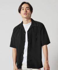 日本製レーヨンライクピーチファイユ ルーズFITオープンカラーハーフスリーブシャツ