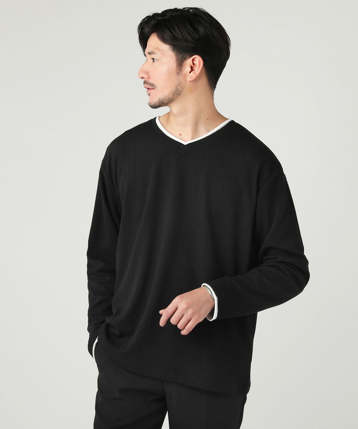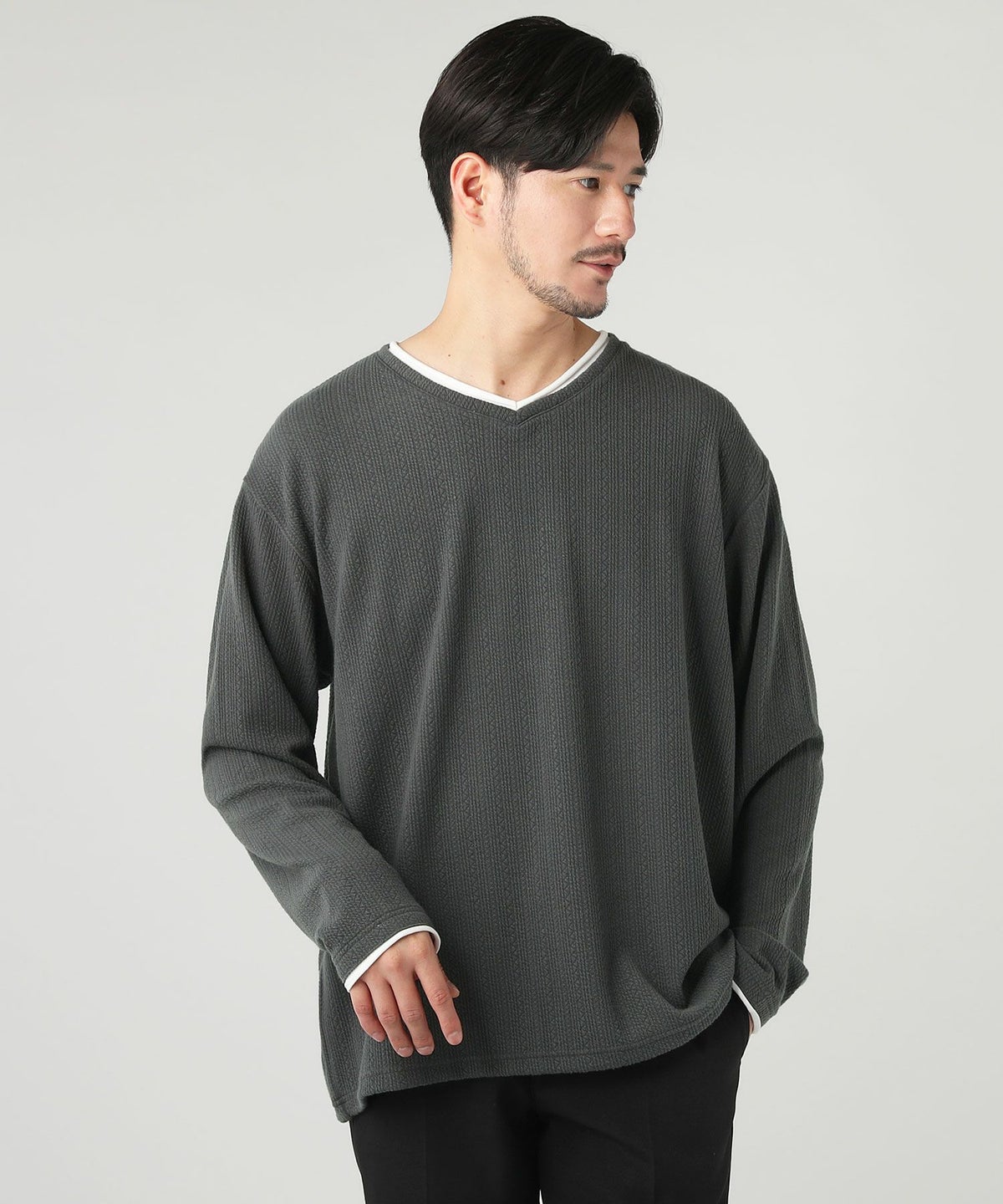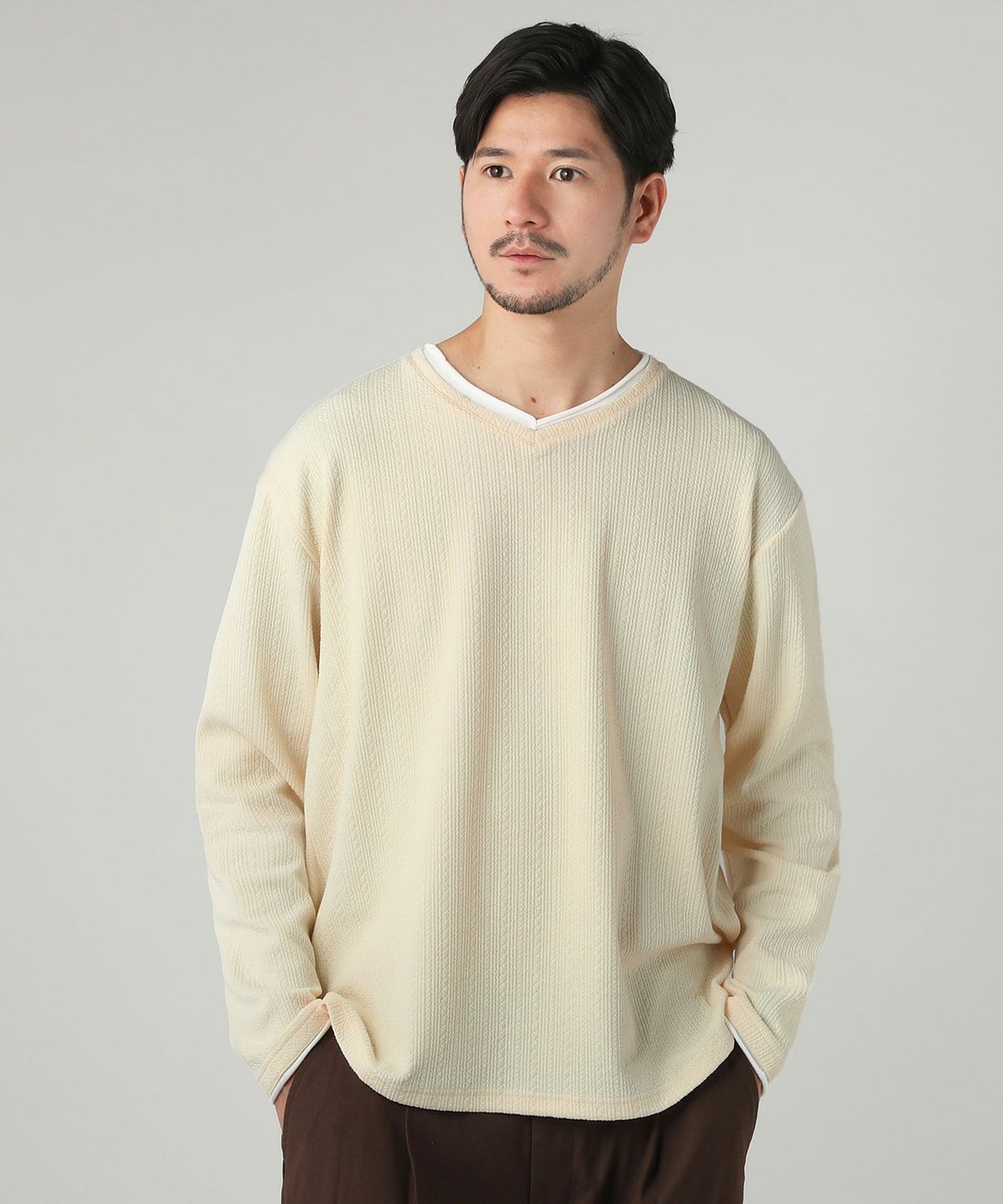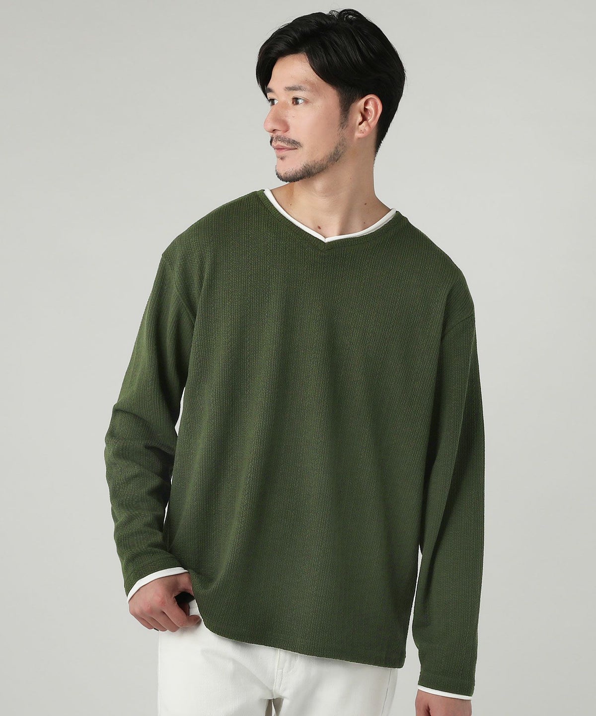 ジャガードダブルフェイスロールVネックカットソー