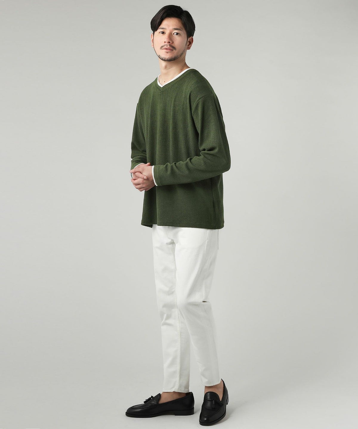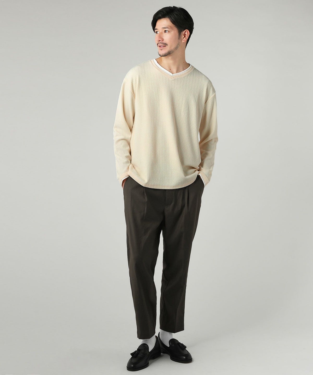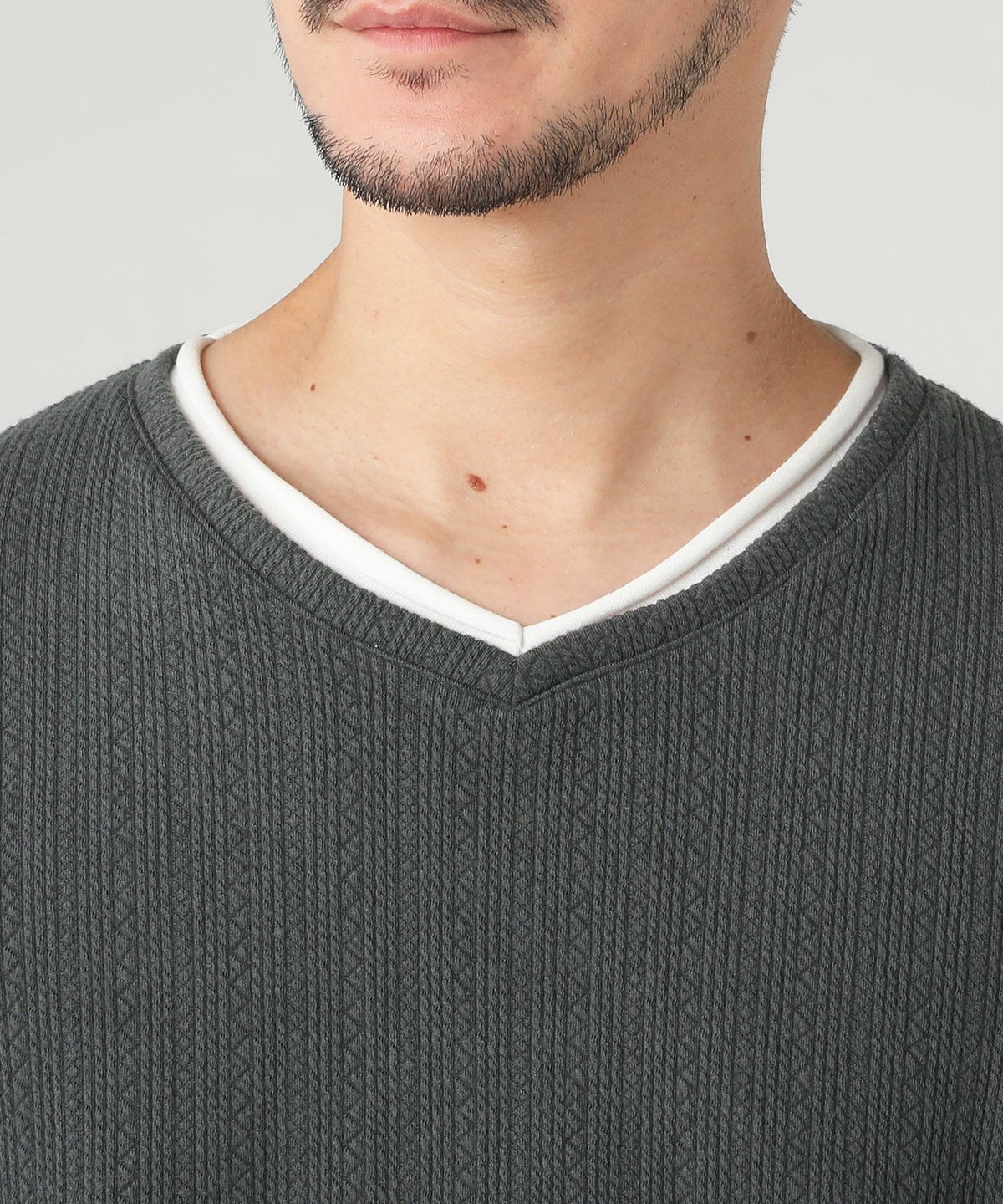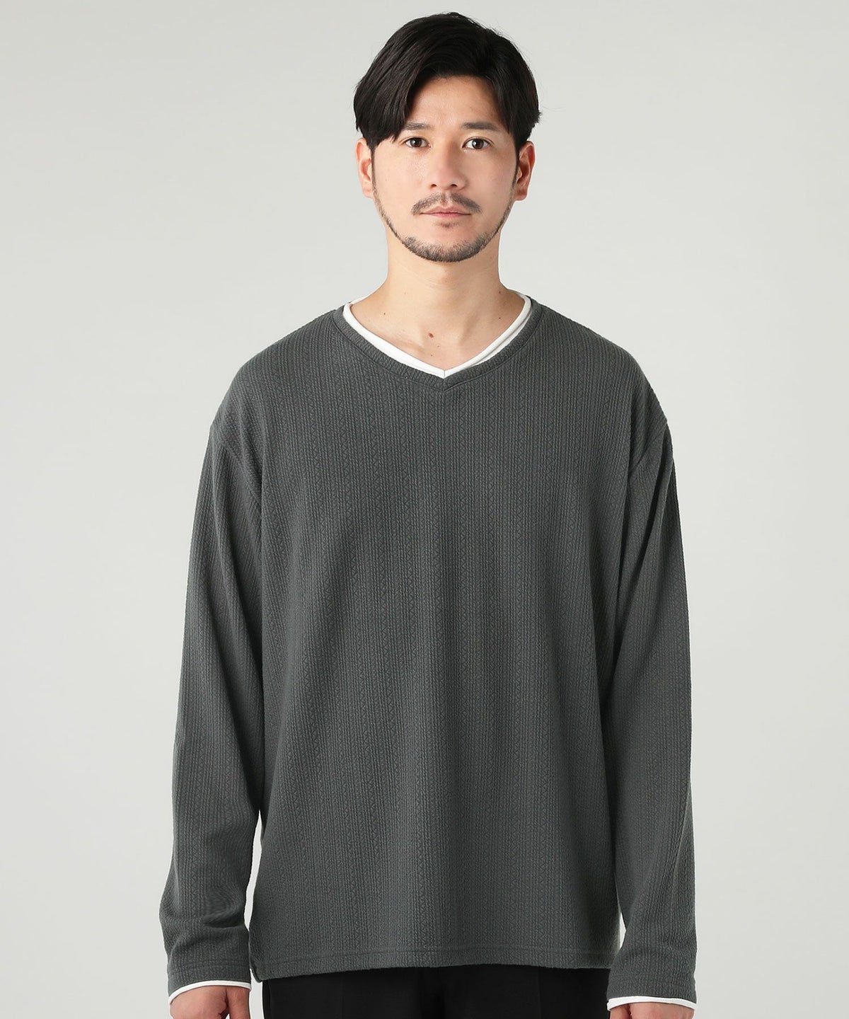 ジャガードダブルフェイスロールVネックカットソー