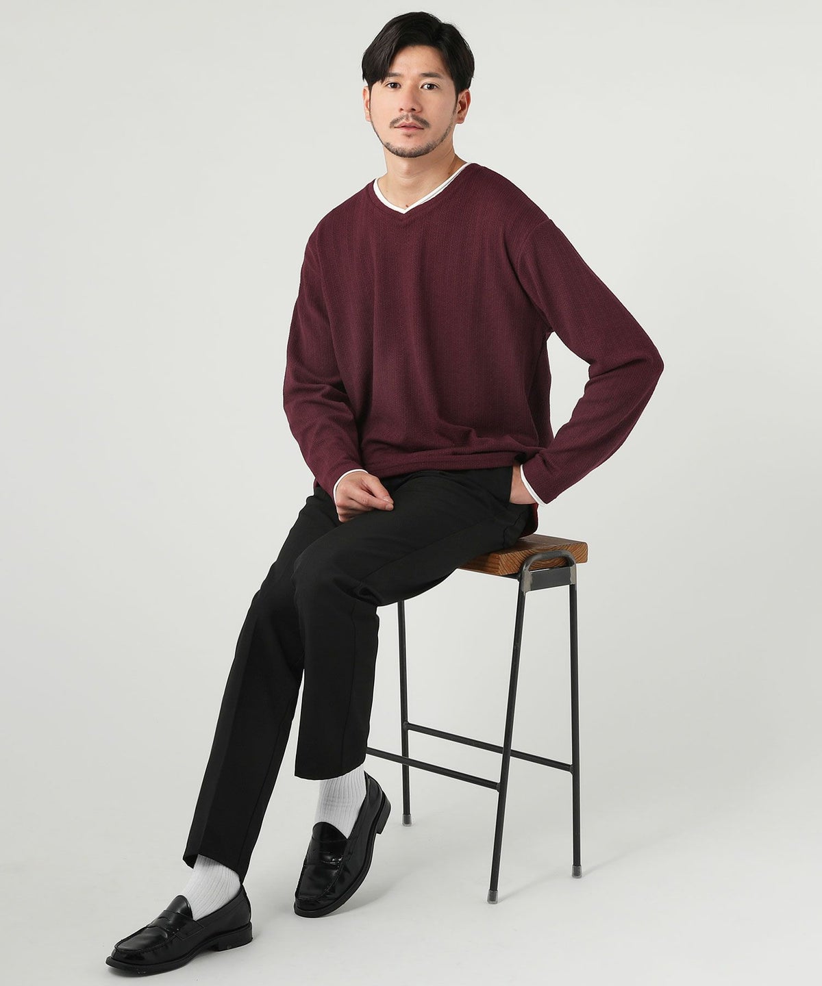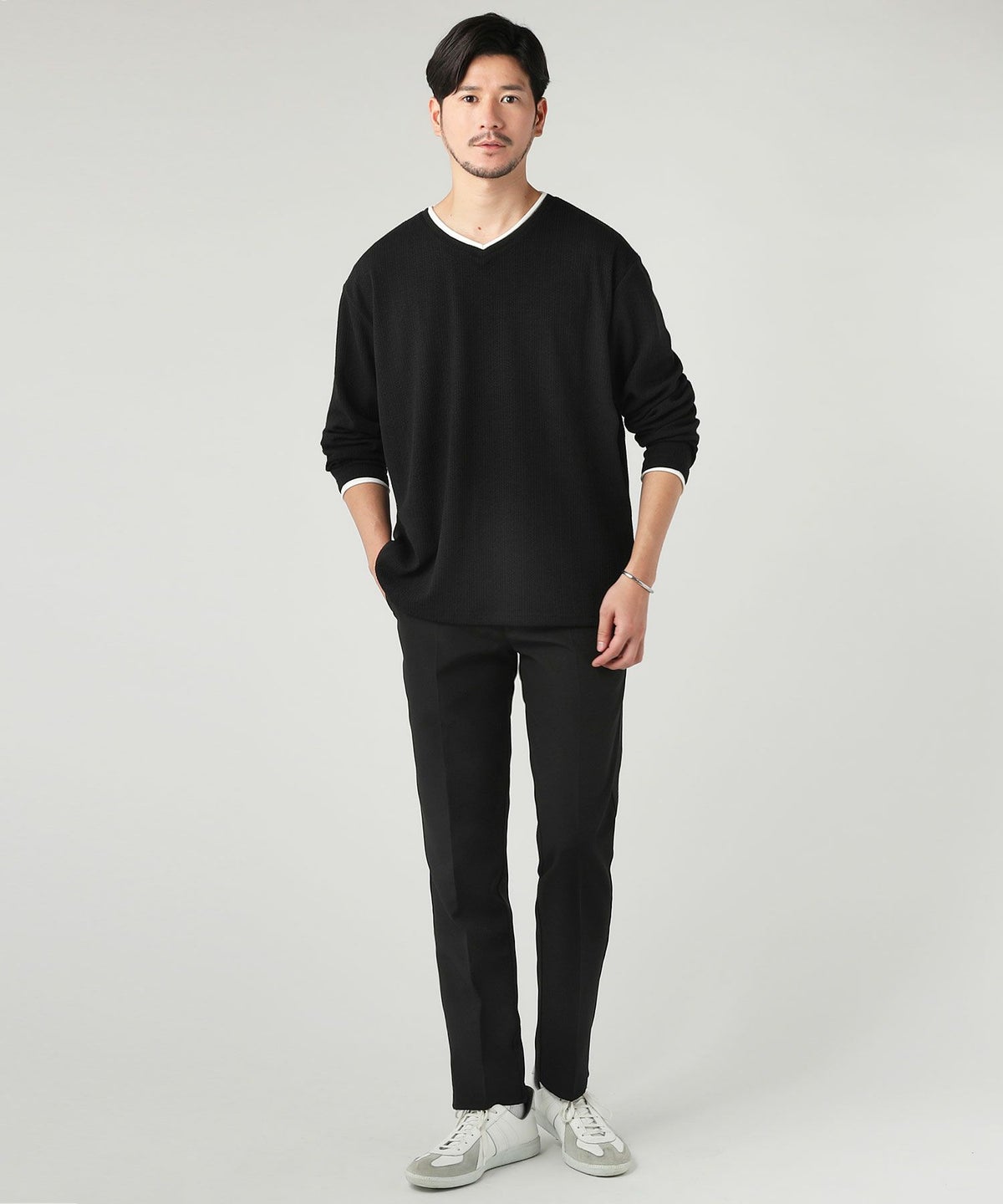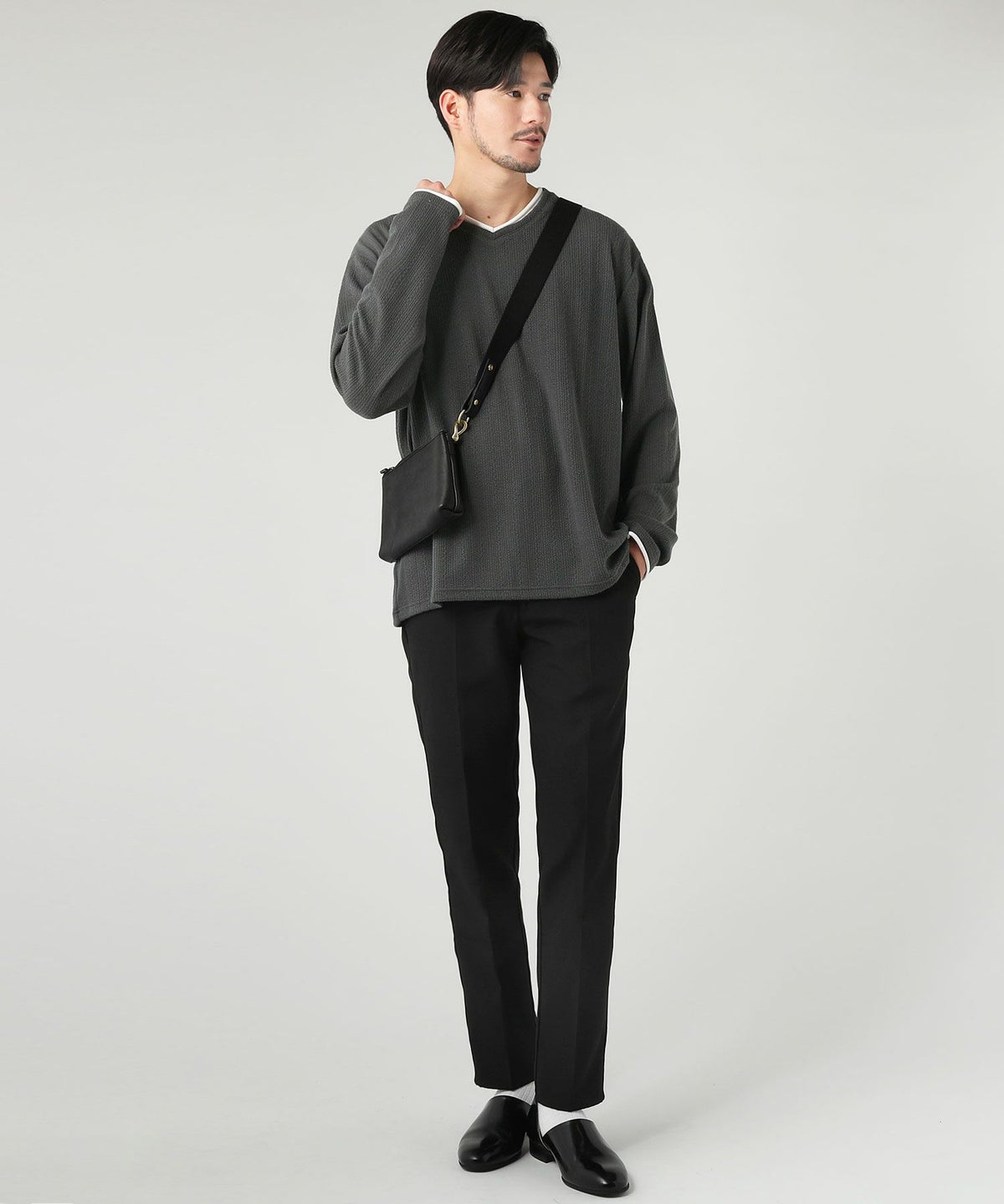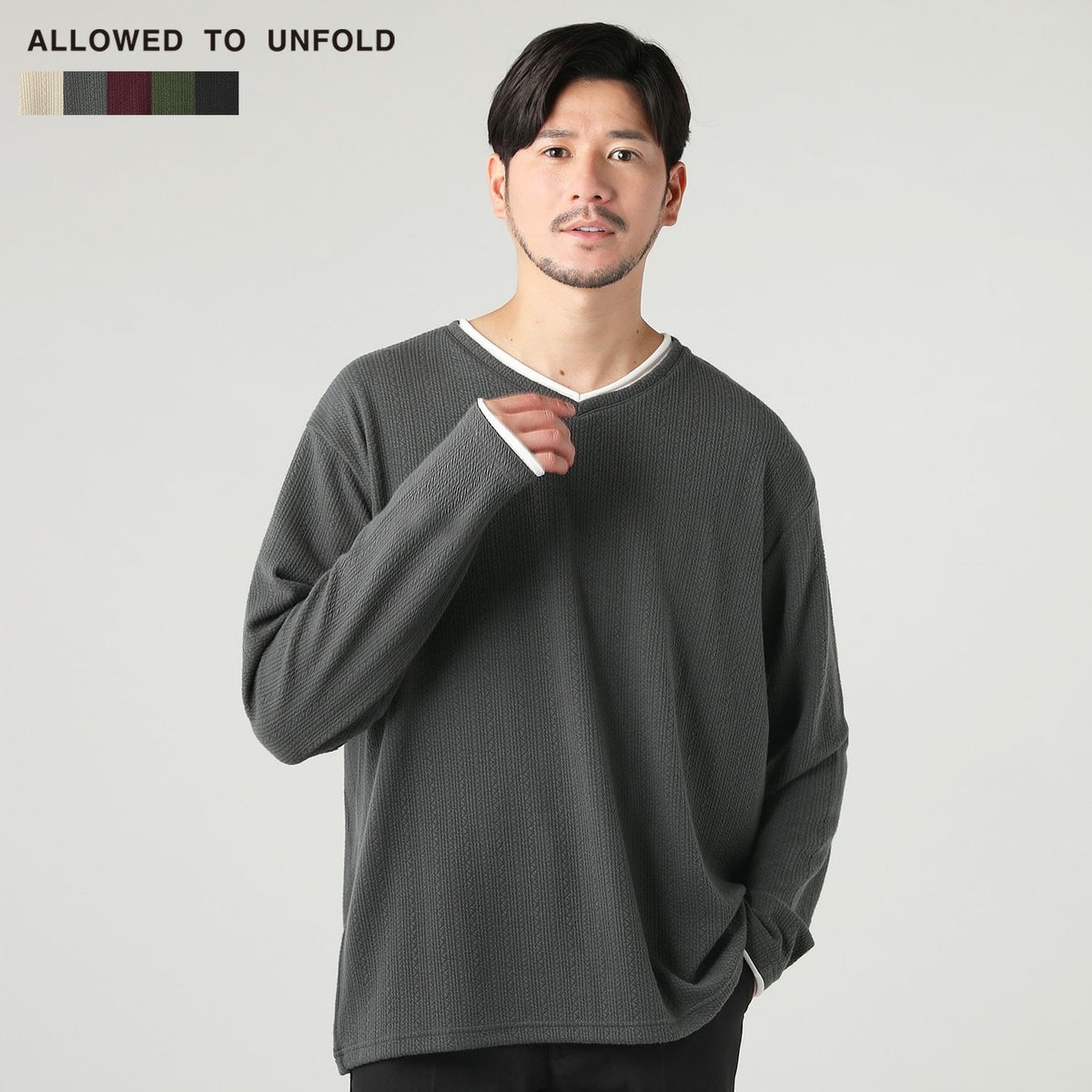 ジャガードダブルフェイスロールVネックカットソー