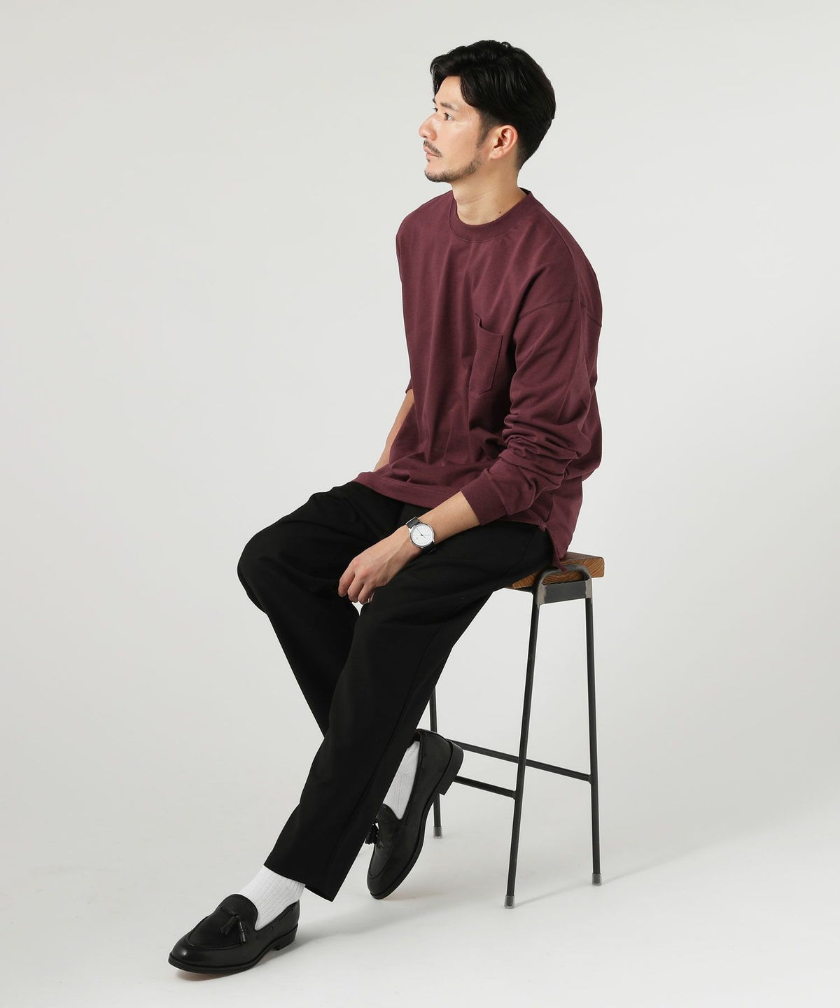 日本製VORTEX 8オンス(MVS天竺) グラスポケ付 C/Nテーパード 長袖 Tシャツ