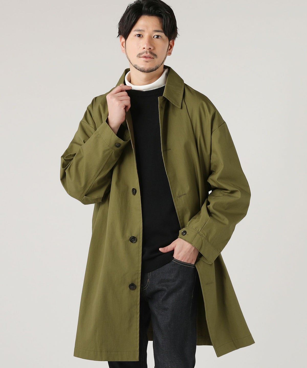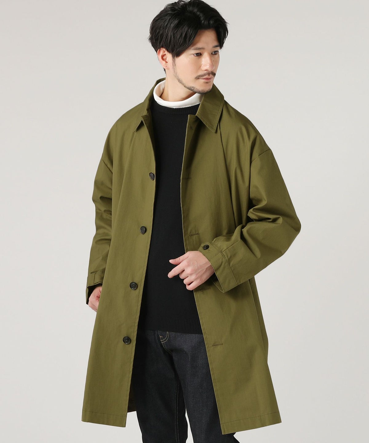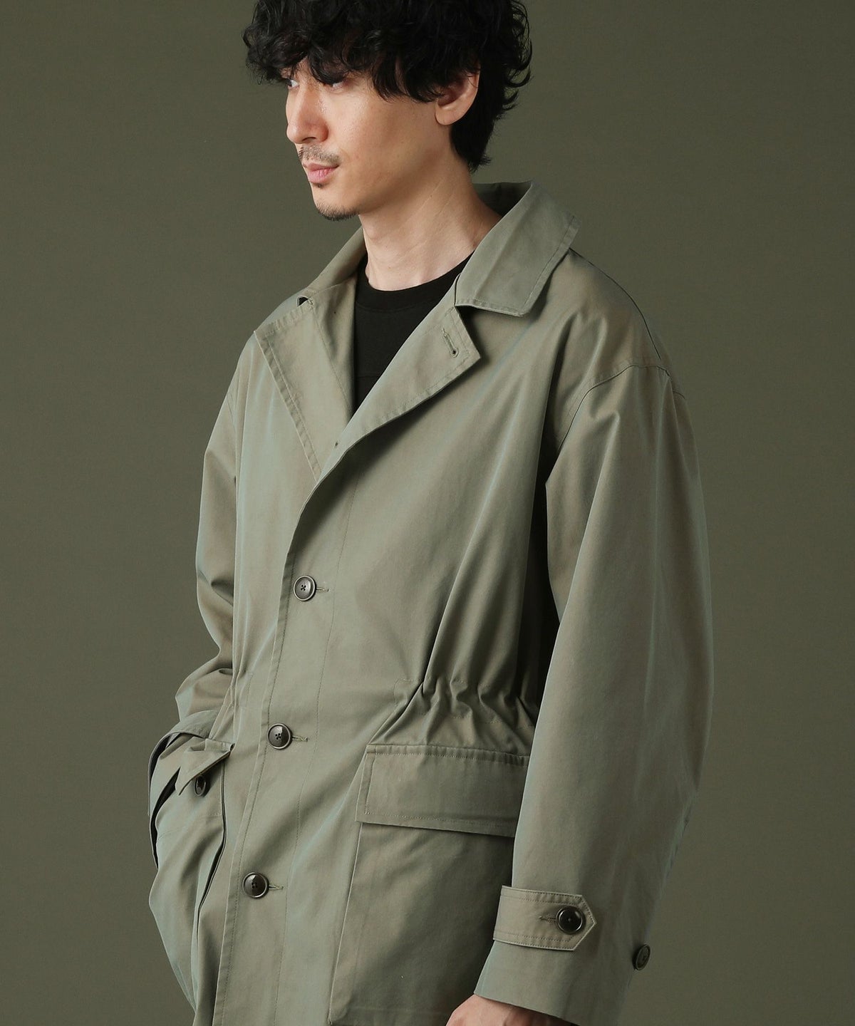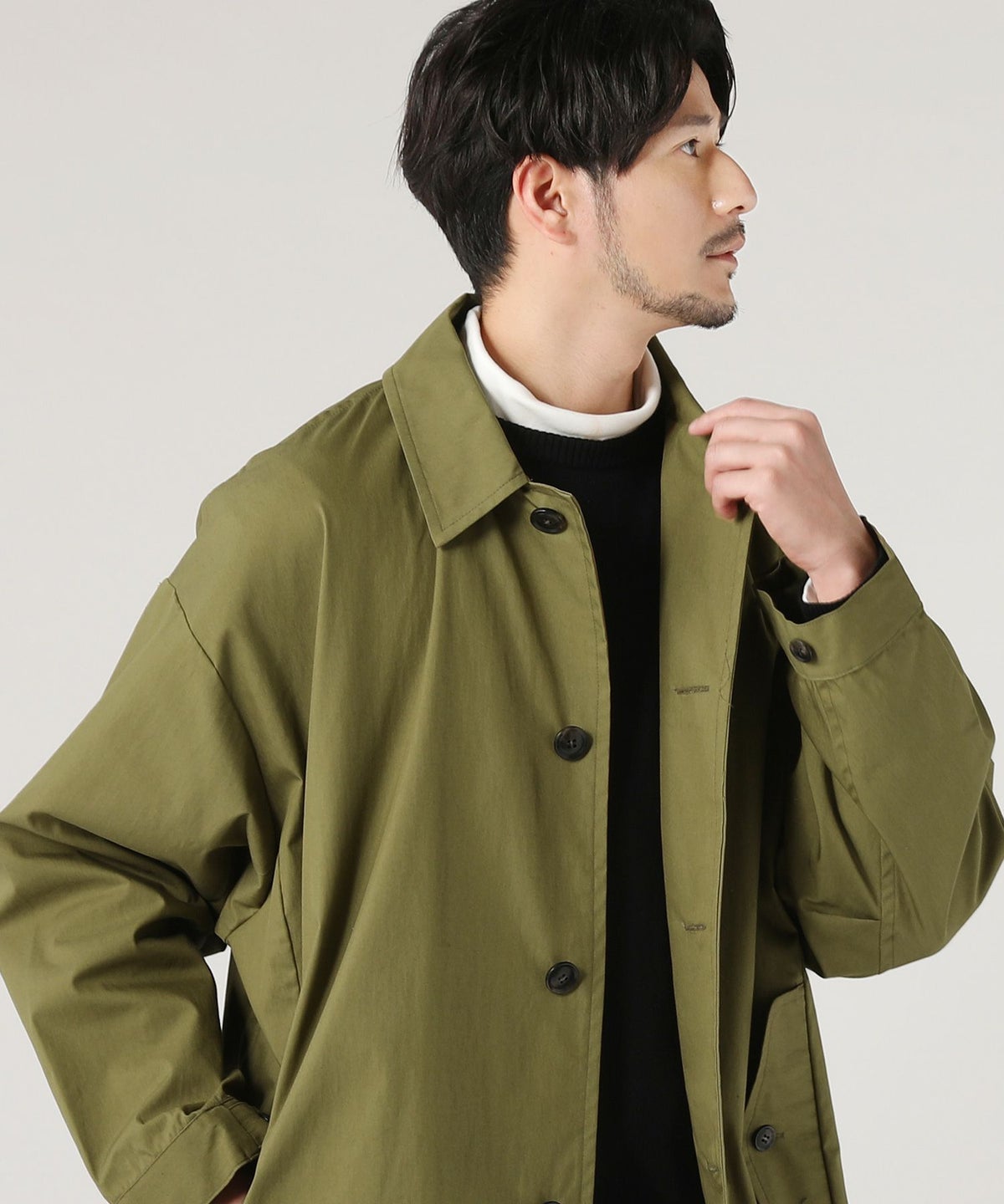 日本製綿ナイロン高密度ギャバM-51 ラップアップ ステンカラーコート
