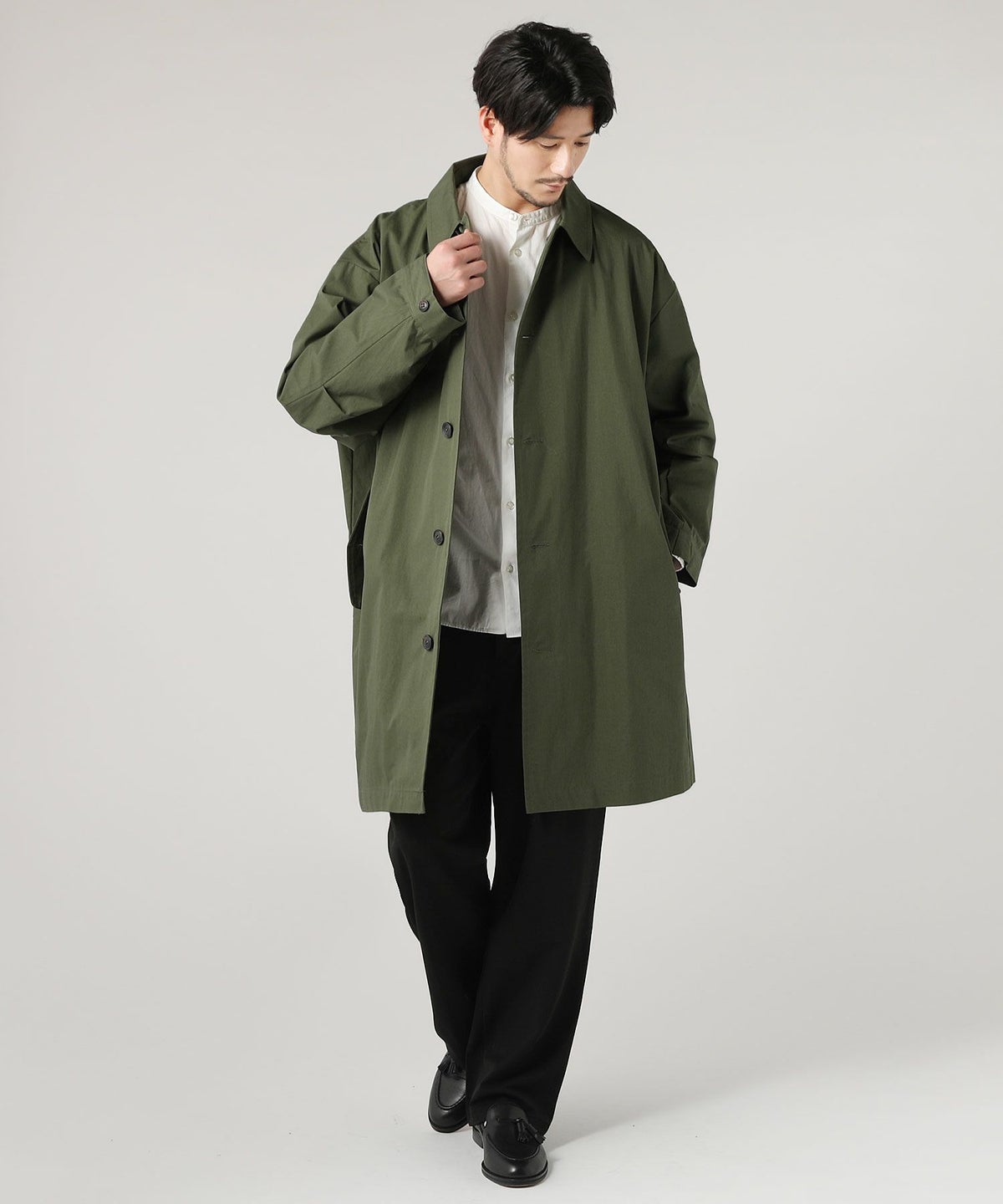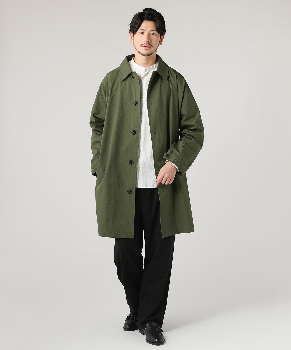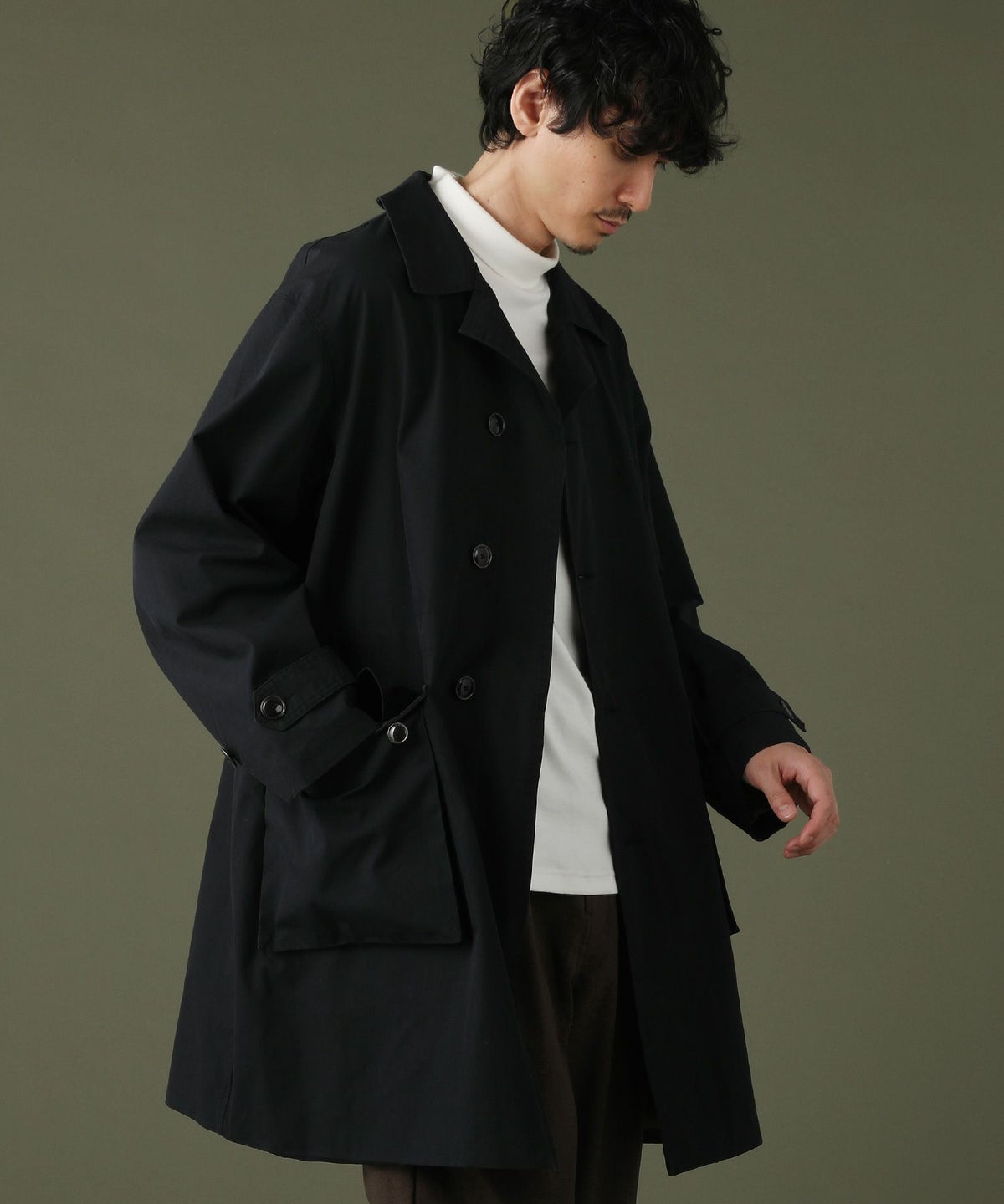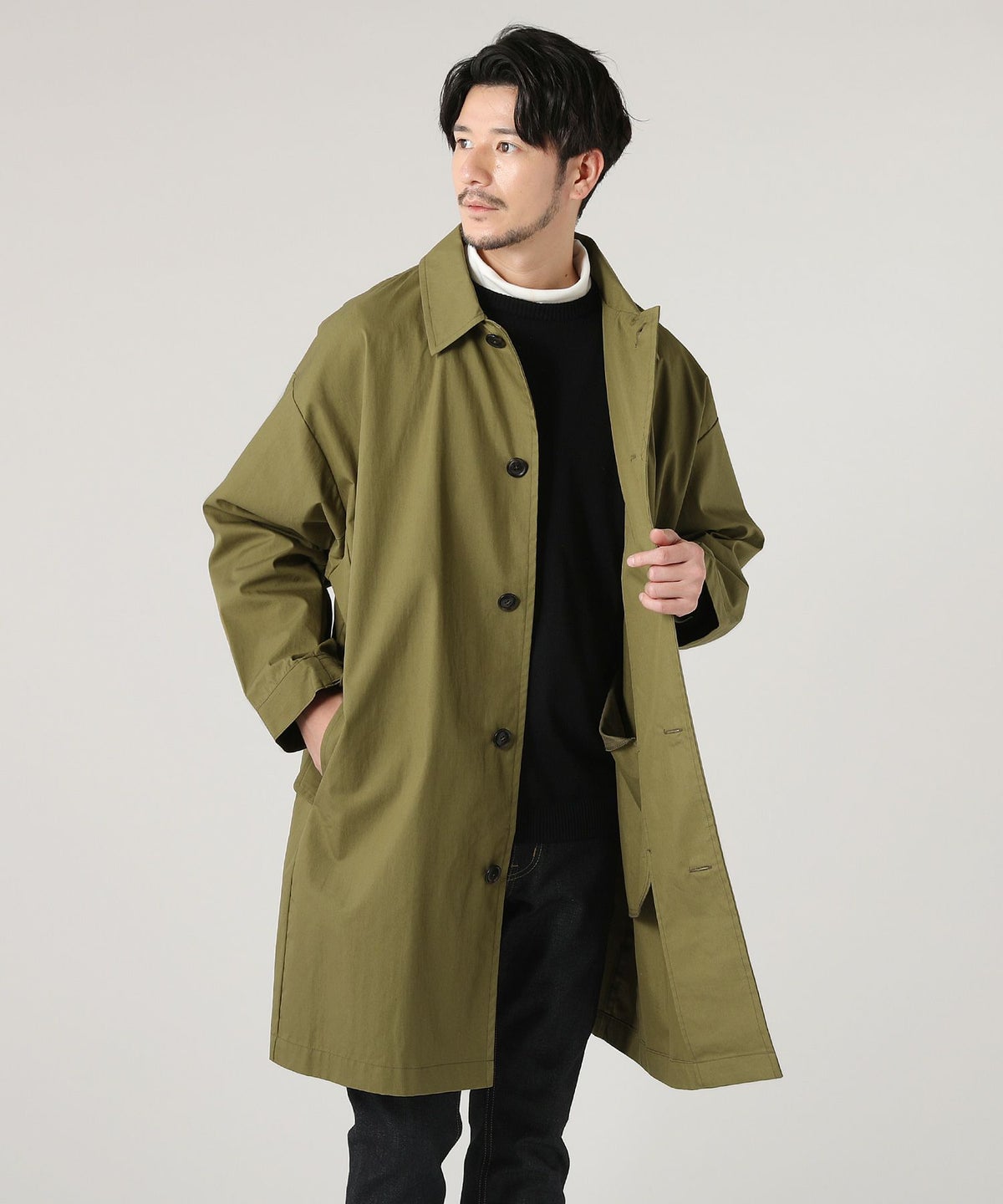 日本製綿ナイロン高密度ギャバM-51 ラップアップ ステンカラーコート
