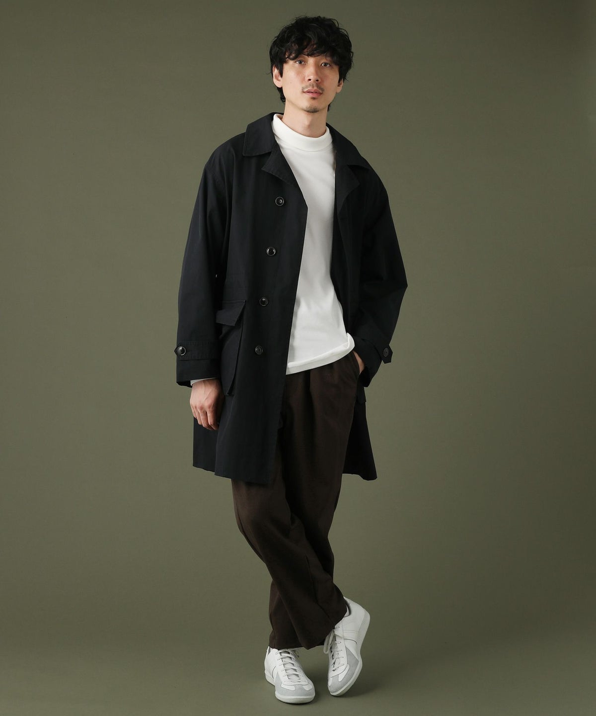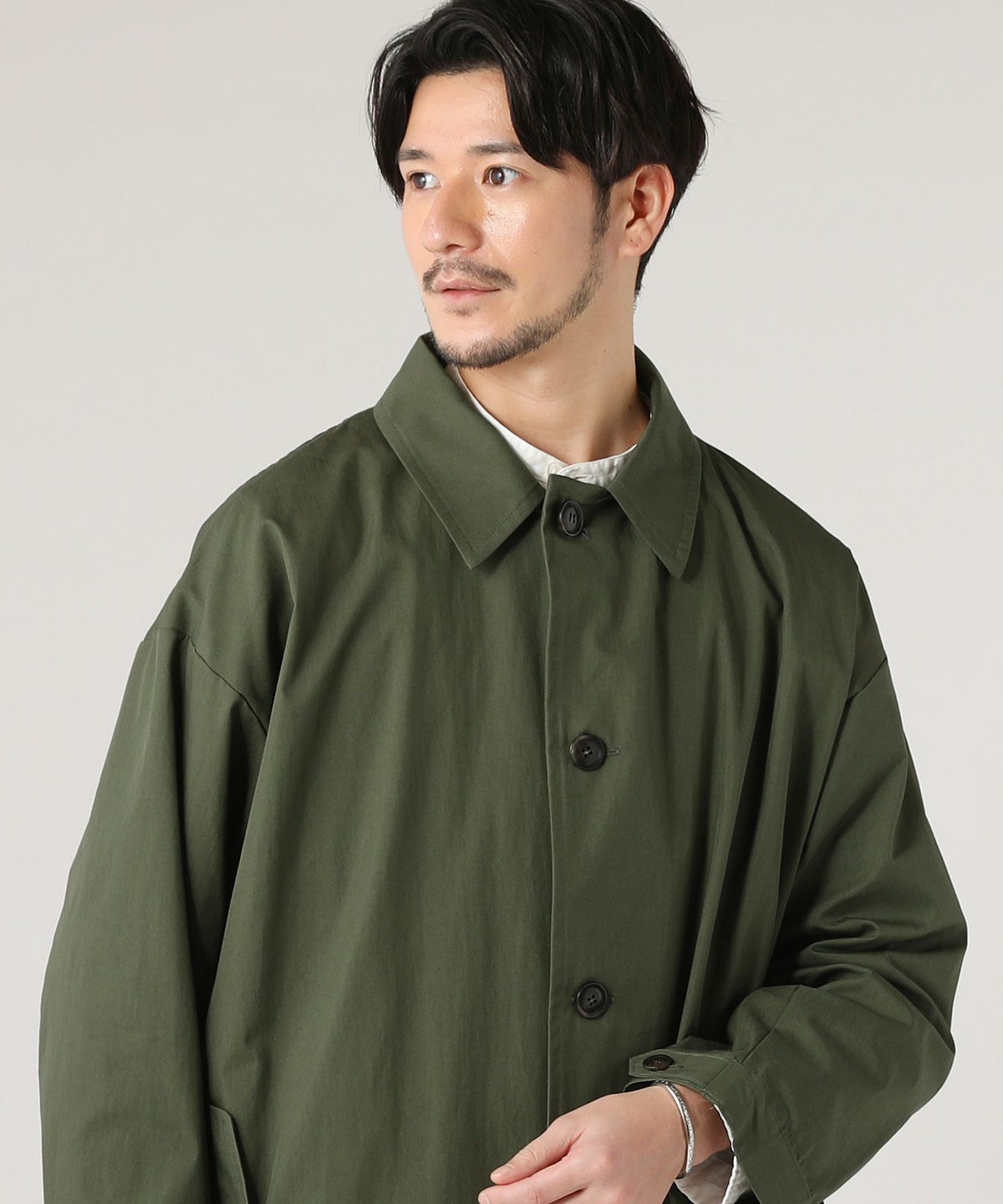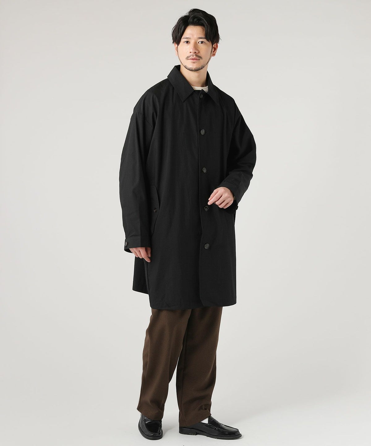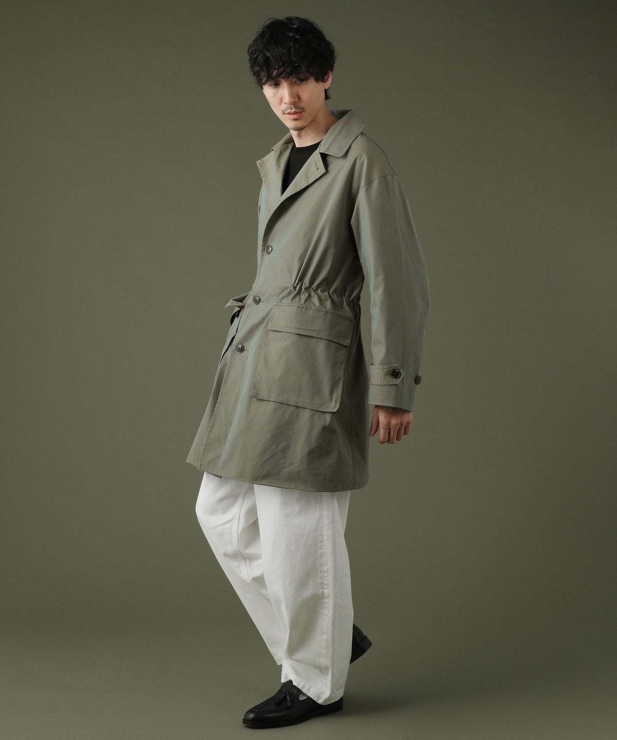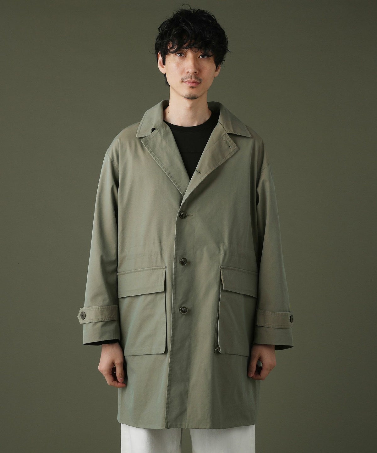 日本製綿ナイロン高密度ギャバM-51 ラップアップ ステンカラーコート