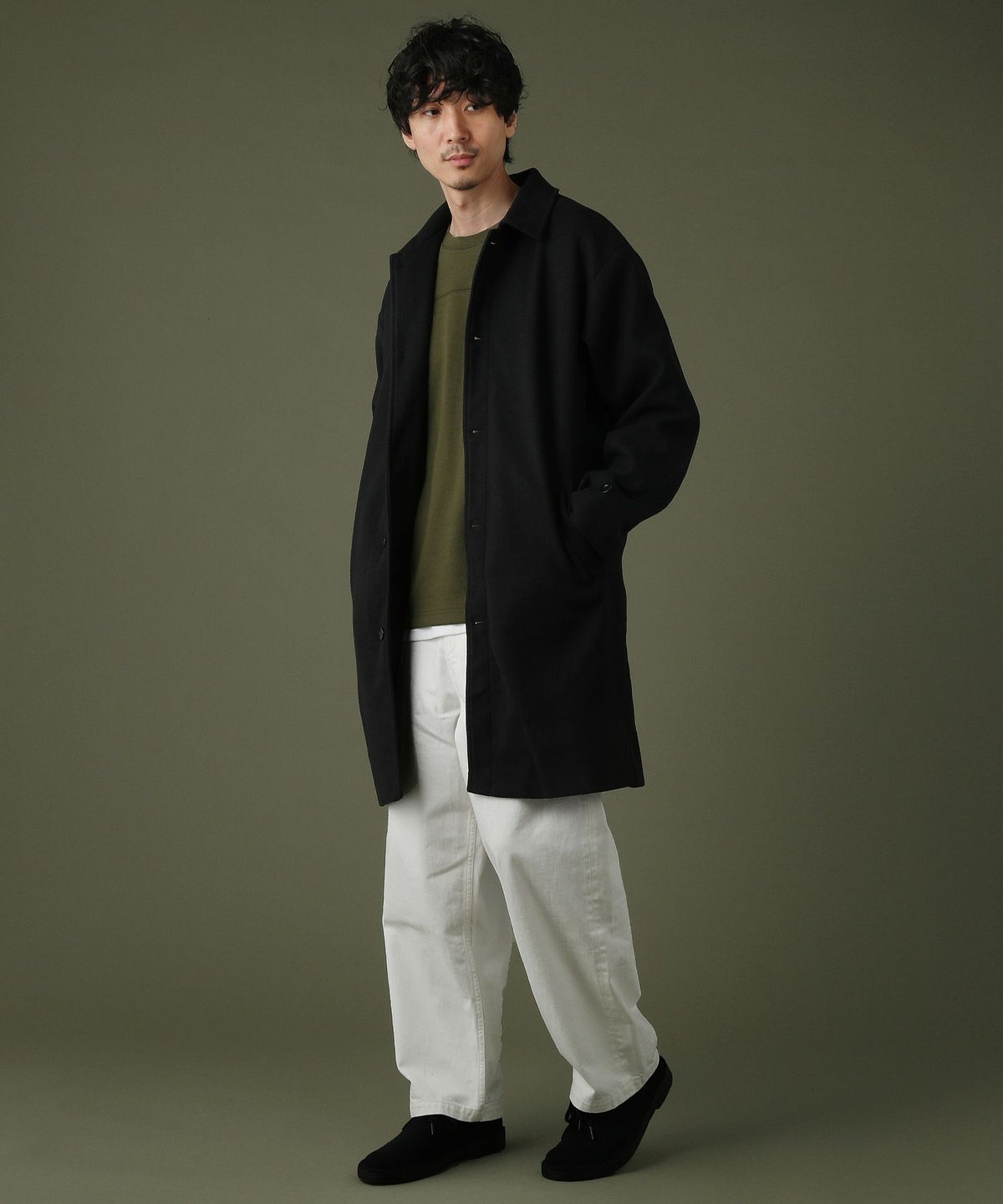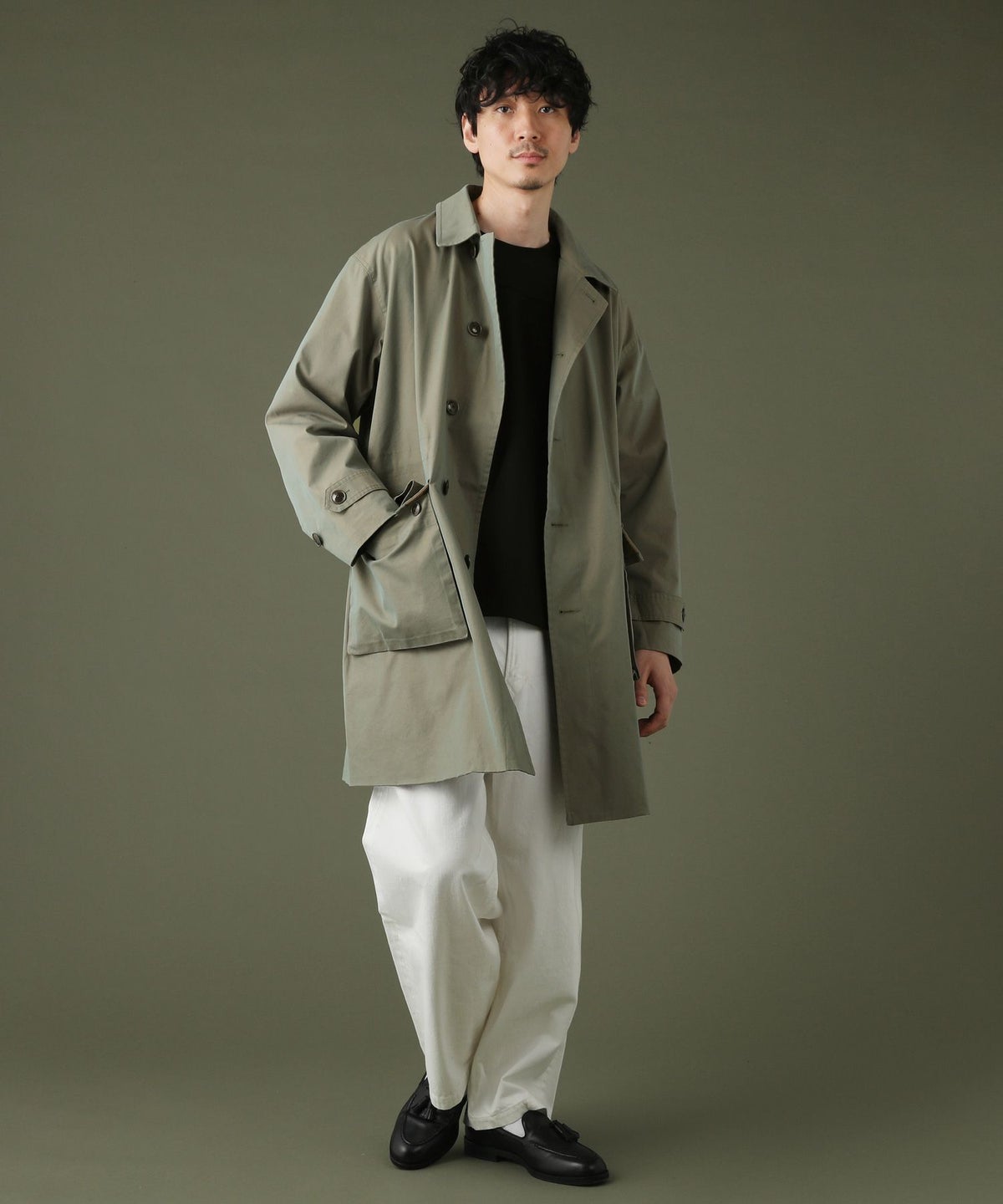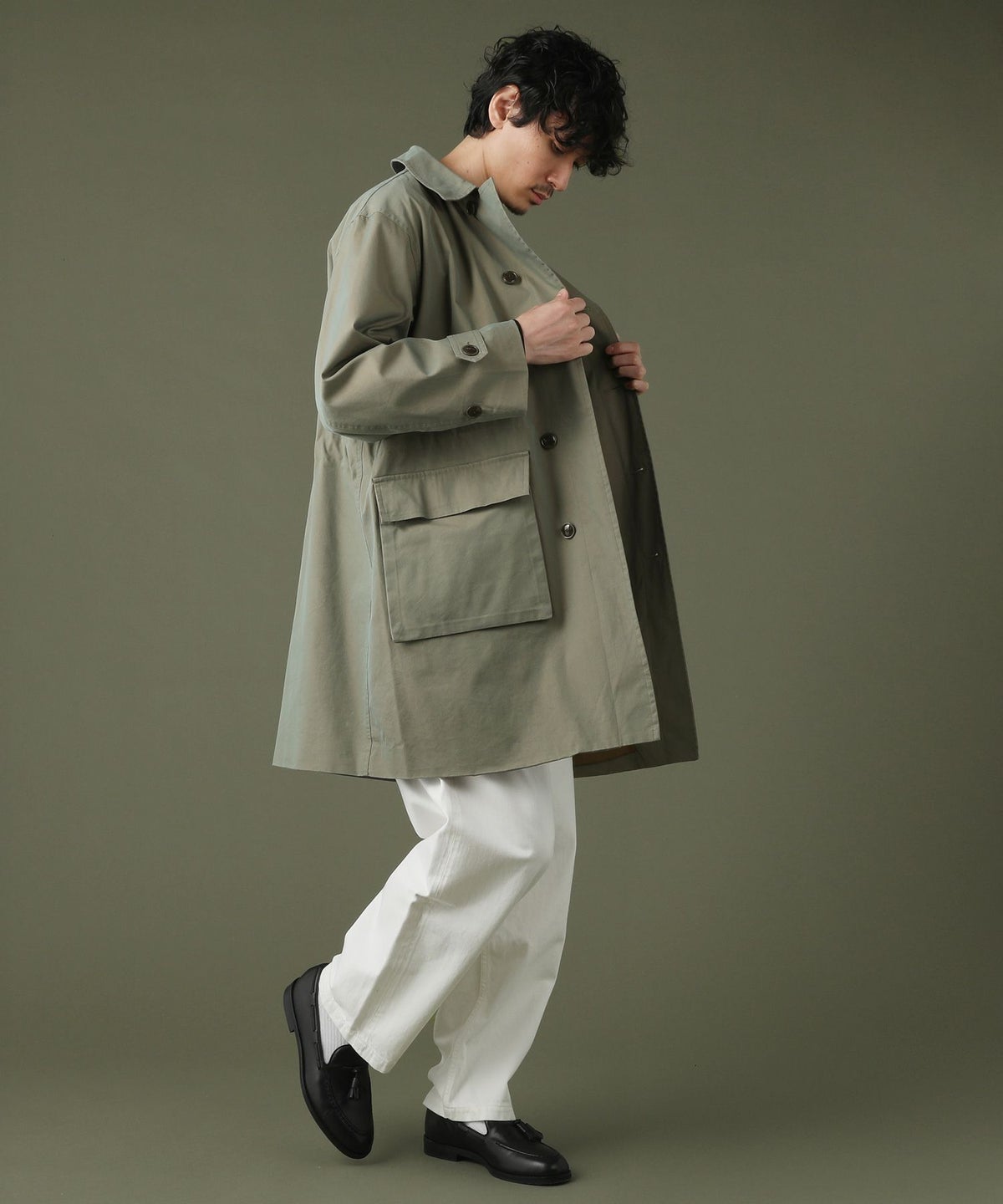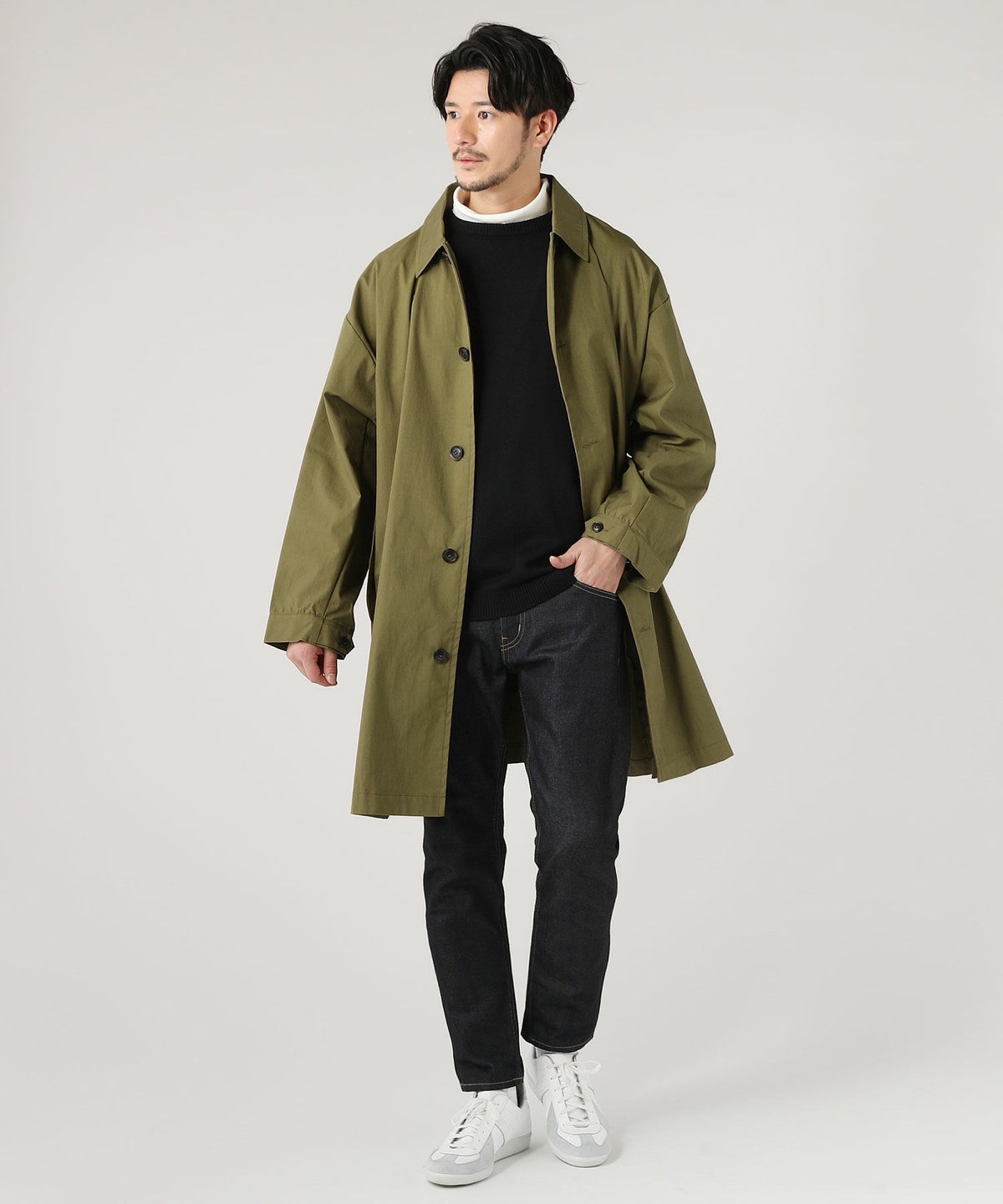 日本製綿ナイロン高密度ギャバM-51 ラップアップ ステンカラーコート