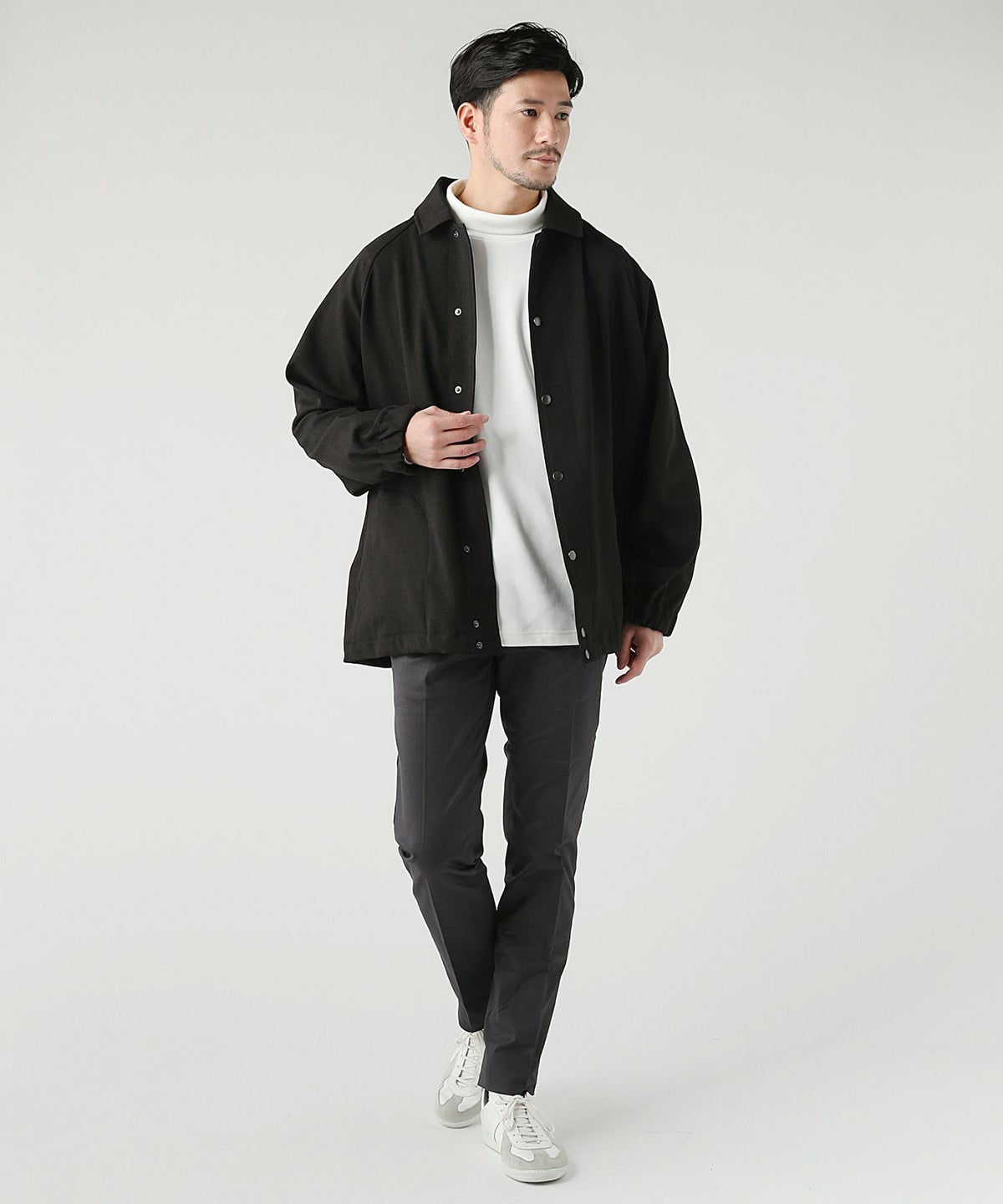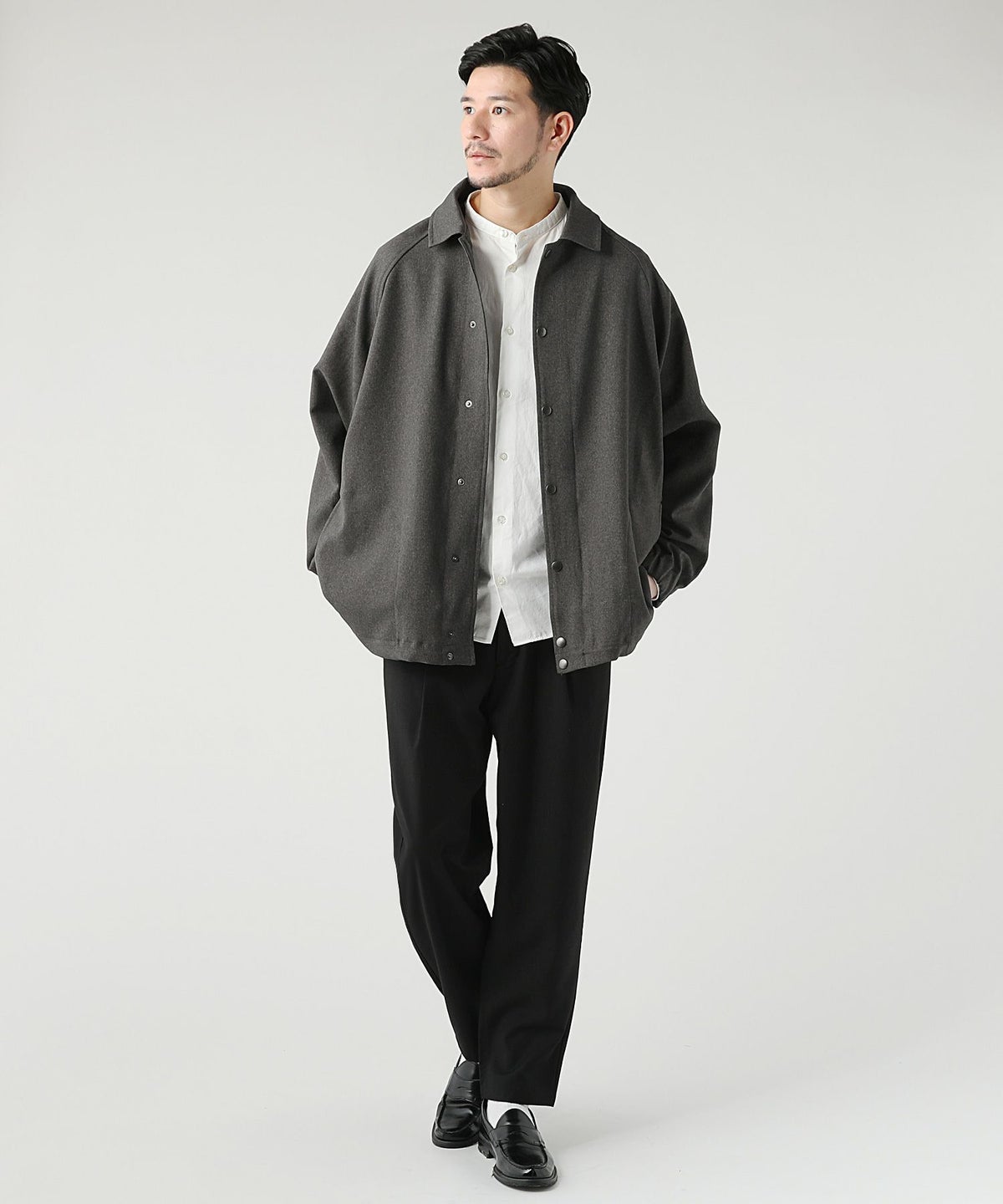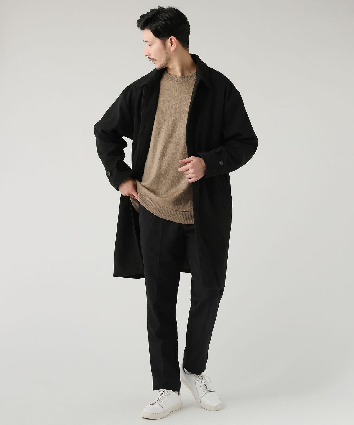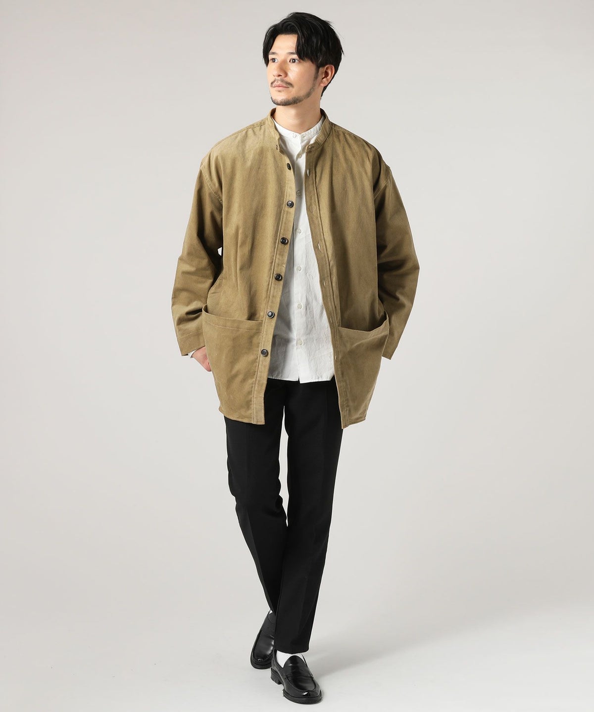 日本製綿ナイロン高密度ギャバM-51 ラップアップ ステンカラーコート