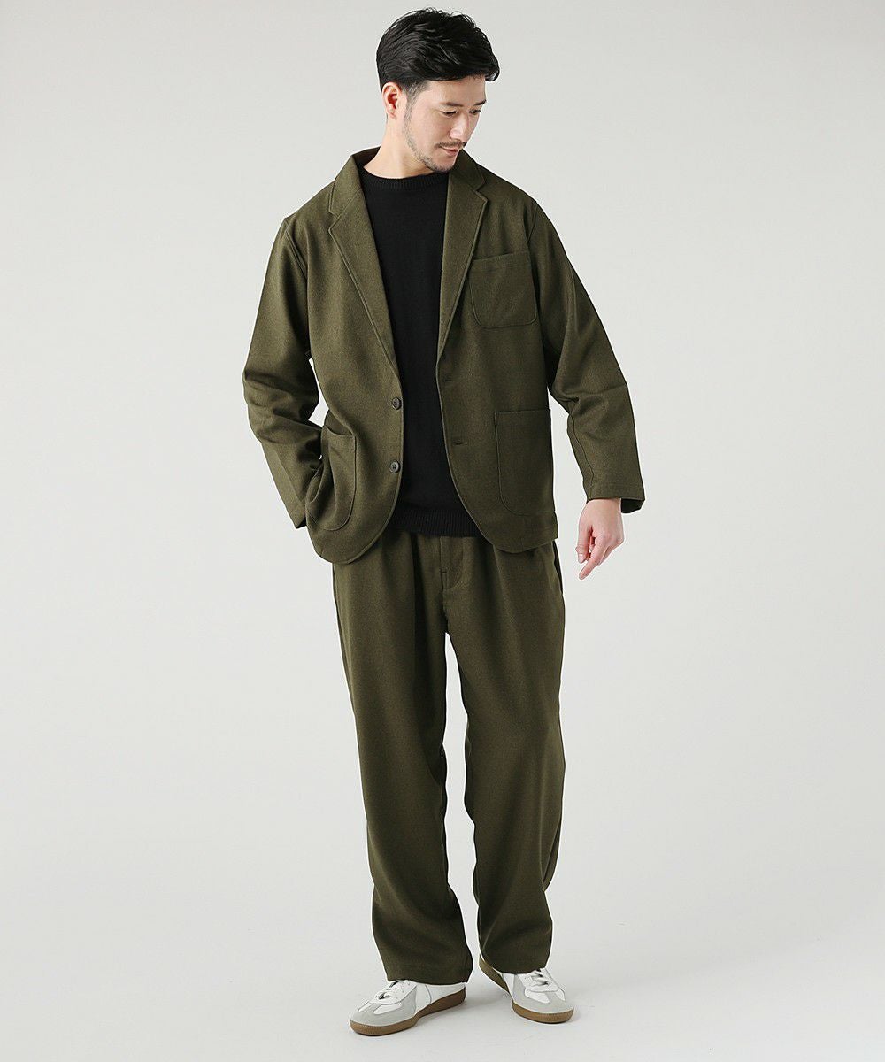 日本製LANATEC(ラナテック)LEI(レイ)ポリエステル ウールライク サージ 2タックイージーワイドパンツ