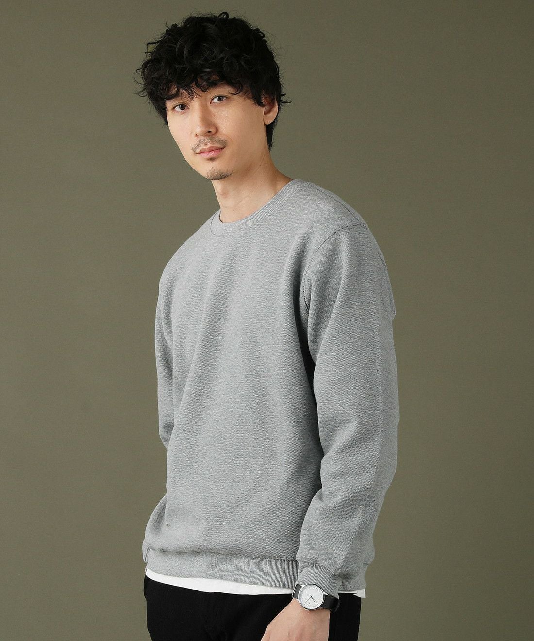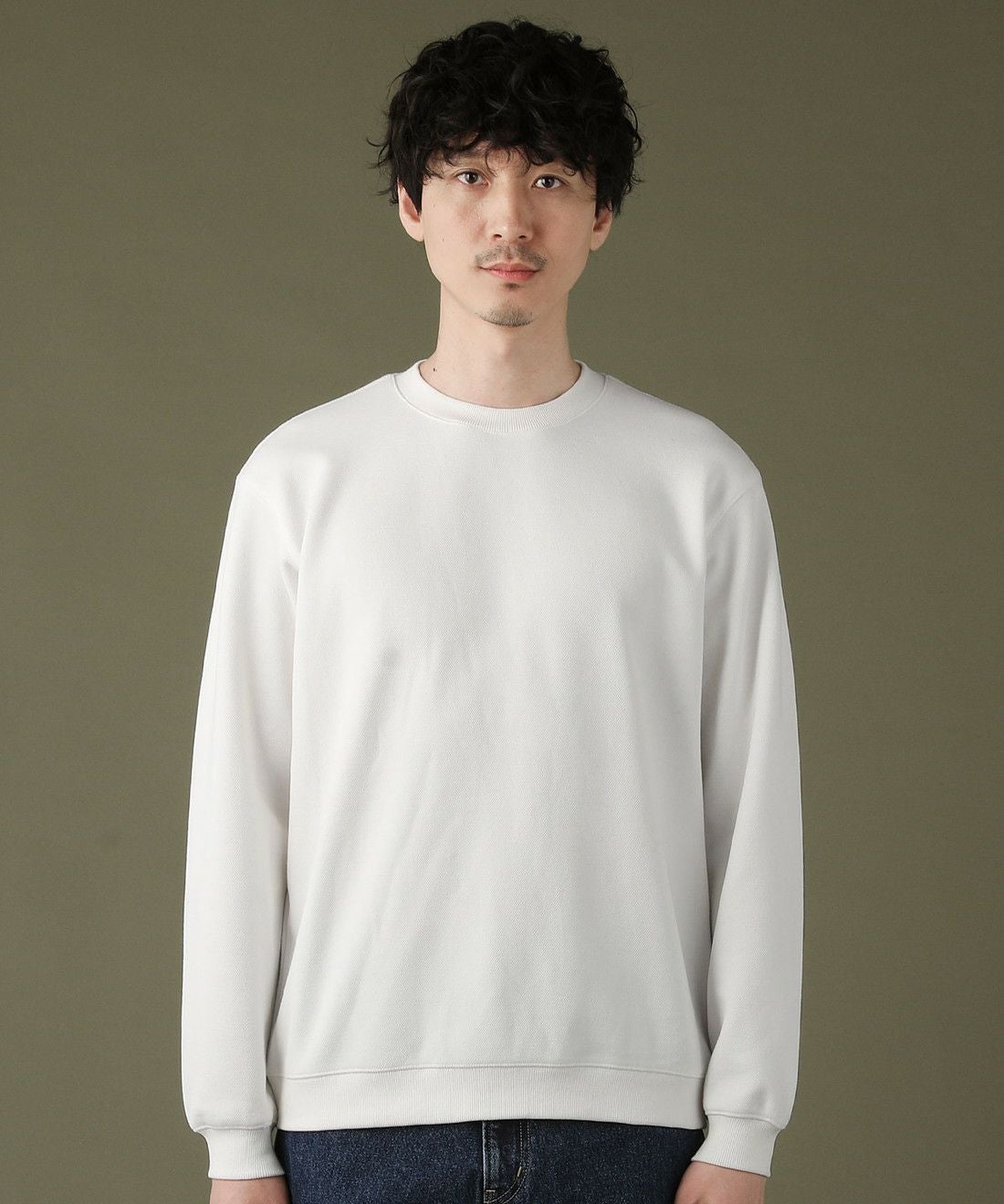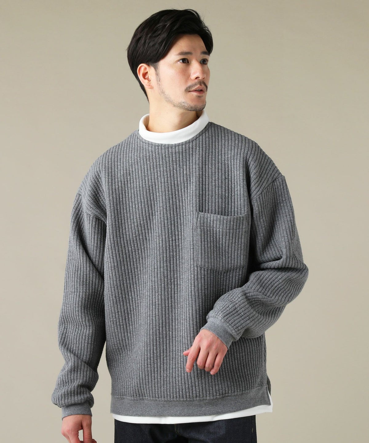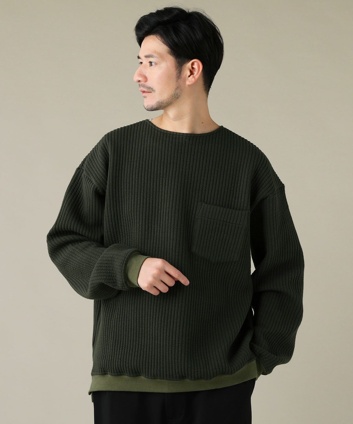 日本製「尾州」コットンキルトクルーネック プルオーバー