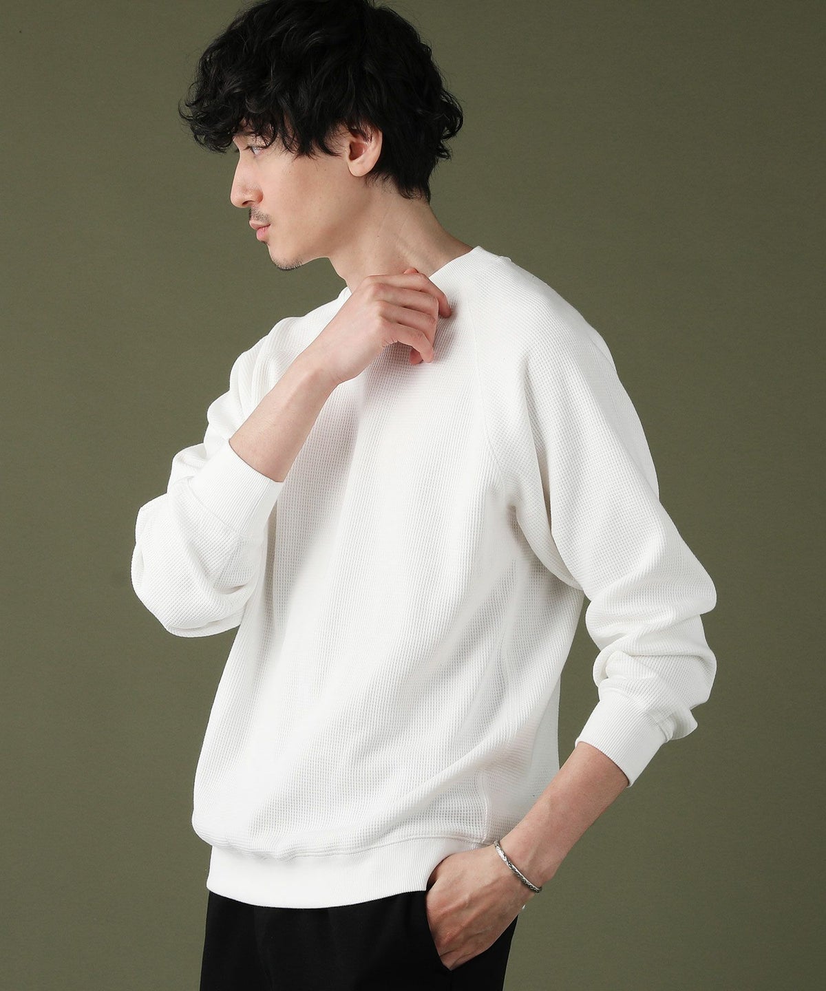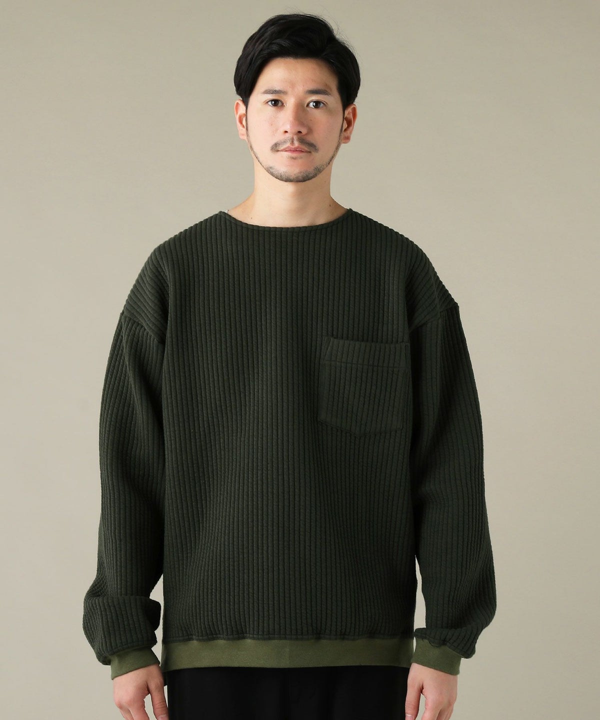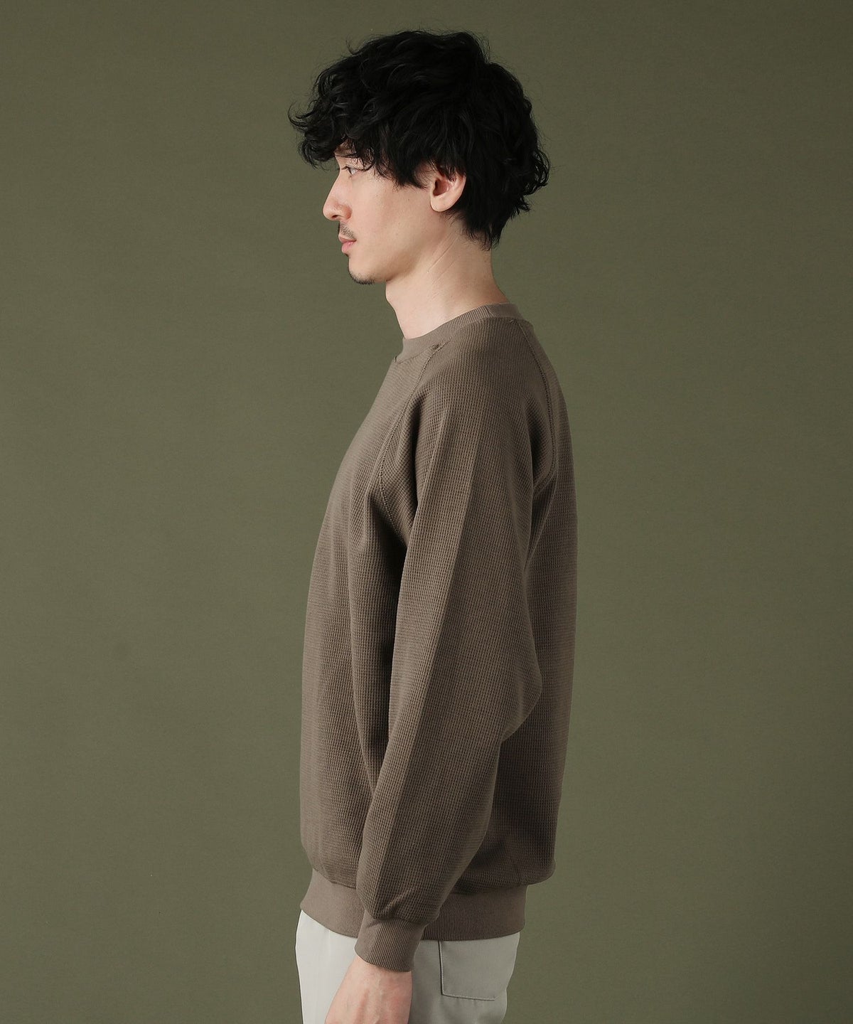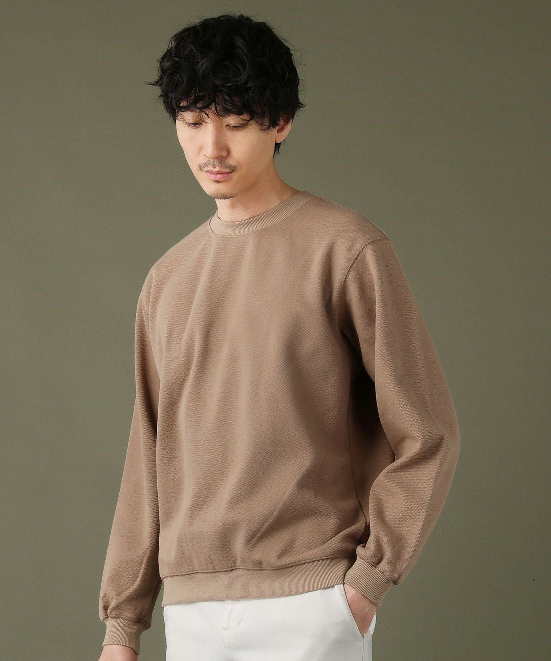 日本製「尾州」コットンキルトクルーネック プルオーバー