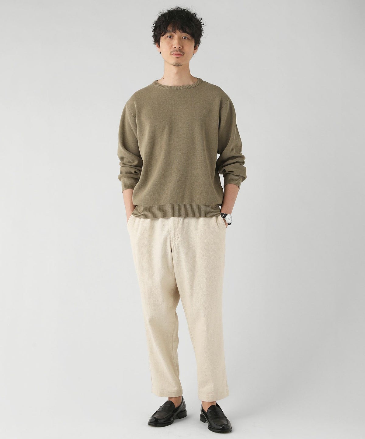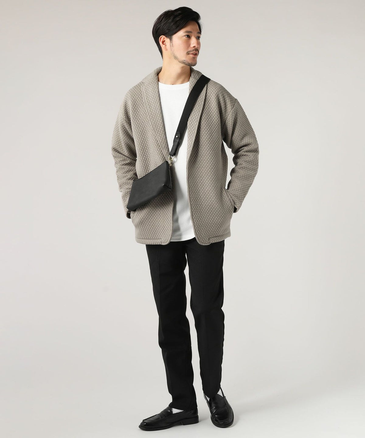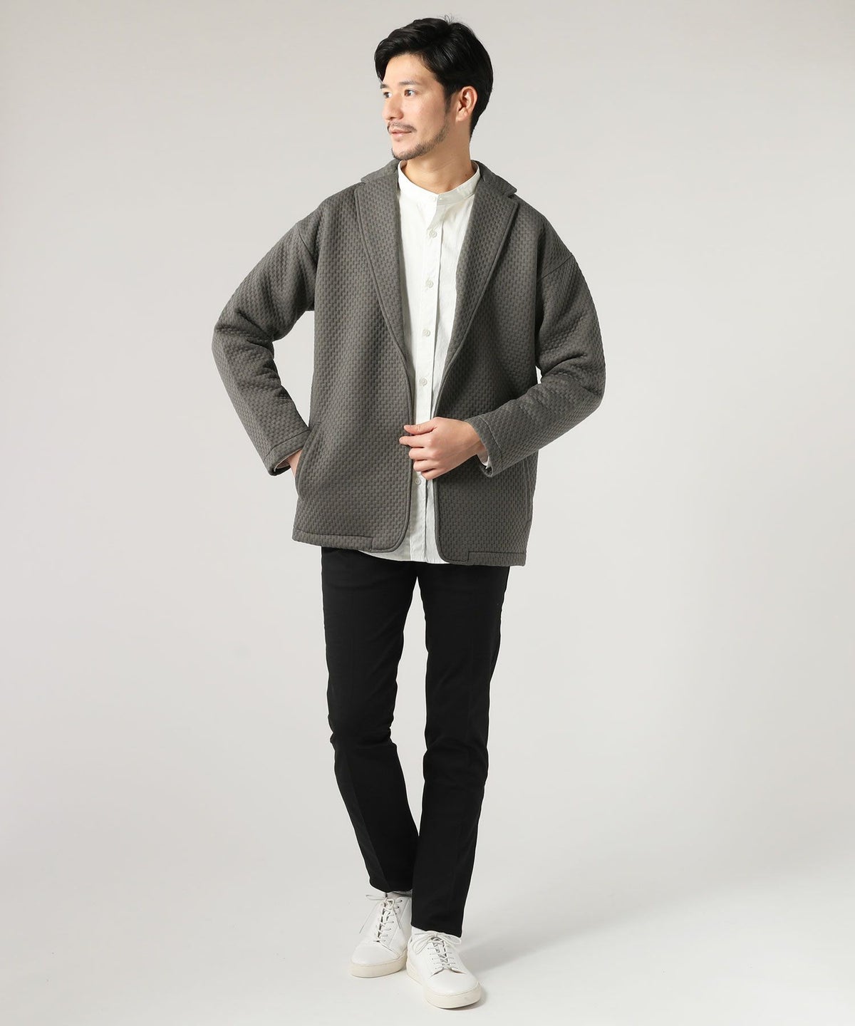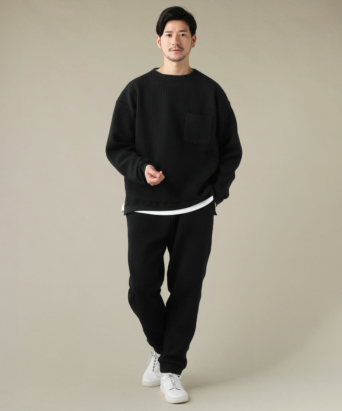 日本製「尾州」コットンキルトクルーネック プルオーバー
